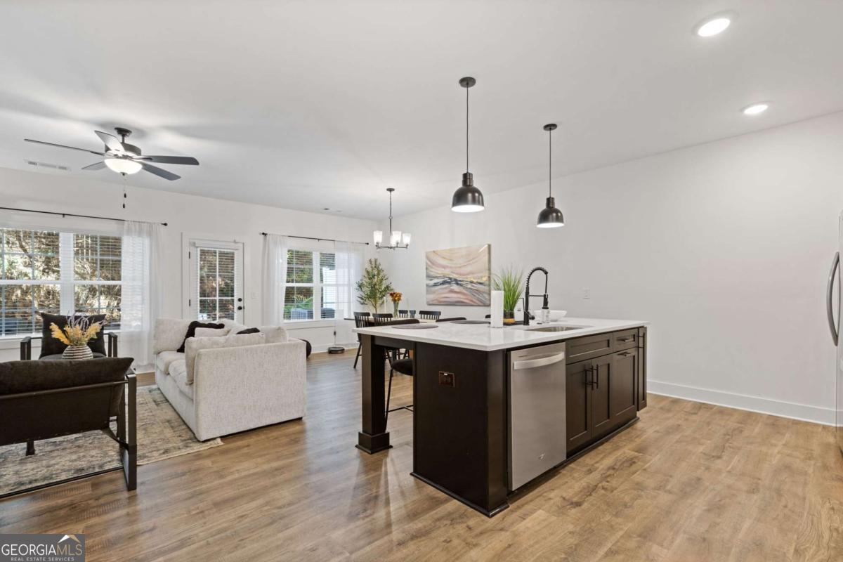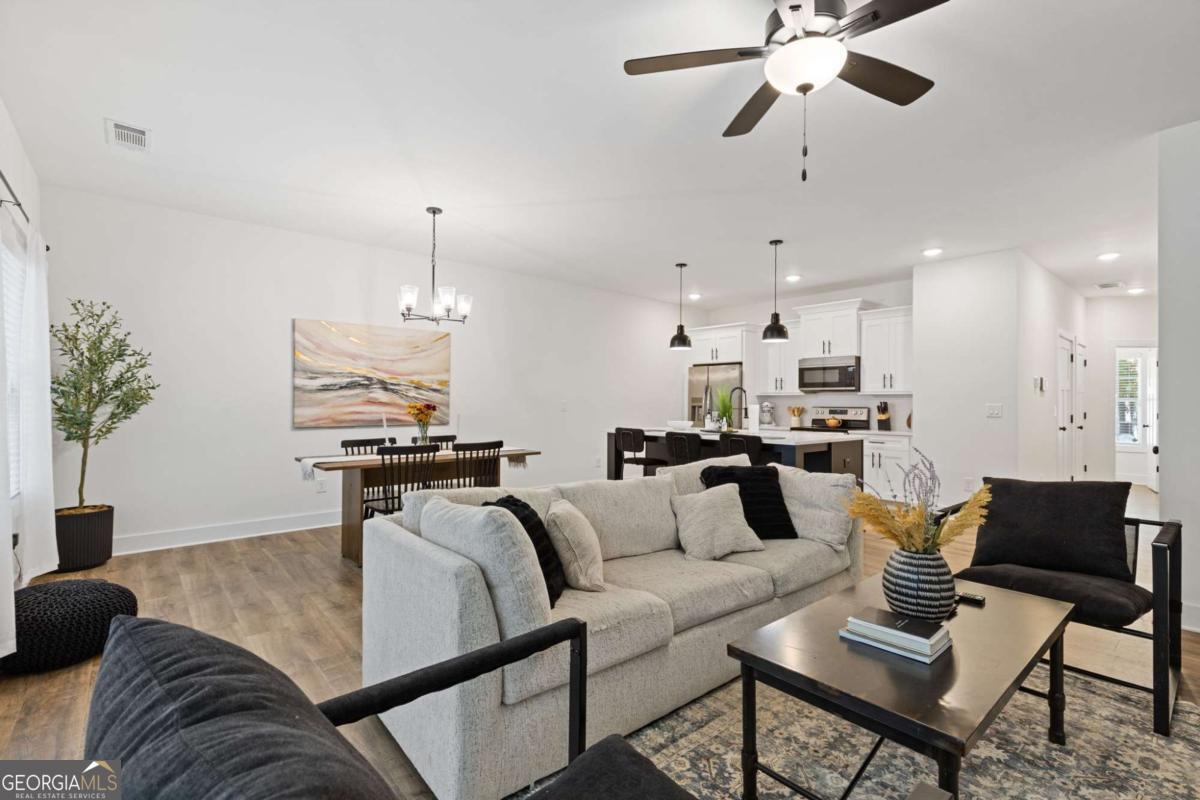 Situated in a gated community in Heritage Park and conveniently located near Barrett Pkwy, Town Center Mall, and near immediate access to I-75 and I-575, this stunning brick-front home offers unmatched access to all Kennesaw has to offer. Walking in, you're greeted by a foyer that leads you into the open-concept space that features a chic, updated kitchen with a large island that overlooks the dining room and living area accompanied by a fireplace with modern touches. Upstairs, enjoy the oversized primary suite boasting natural light, walk-in closets, updated tile shower and double vanity as well as two additional bedrooms, laundry and full bath. Built in 2023, enjoy all the convenient upgrades that newer construction offers and have peace of mind with the HOA covering the landscaping, pest control, and trash. Tucked away in a private location within the neighborhood, enjoy peaceful evenings in the backyard and easy access to guest parking. The community offers amazing amenities such as a pool and playground. As if the location couldn't be better, call this home yours just in time to experience the near-completion of South Barrett Project that will seamlessly connect you to Costco as well as bike lanes and crosswalks.