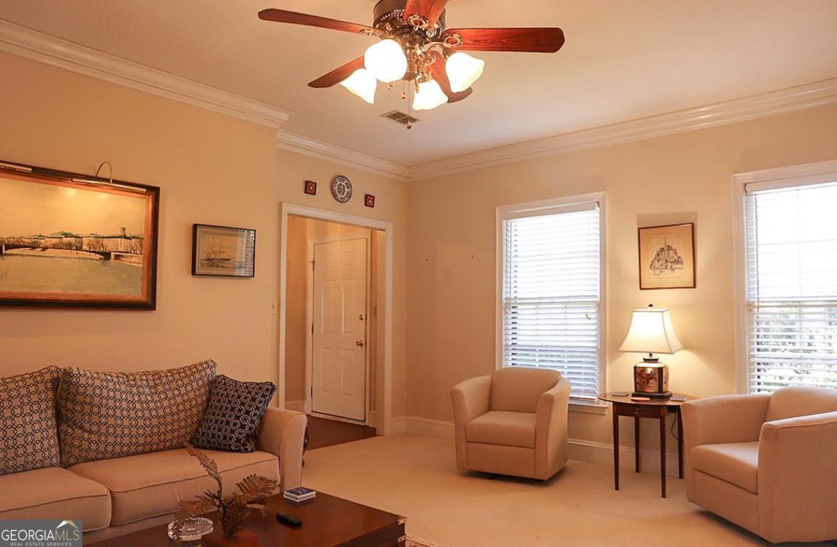 Welcome to effortless living in the heart of East Athens' sought-after Drayton Square-where picturesque, tree-lined streets and an outstanding amenities package create the perfect backdrop for low-maintenance comfort. Residents enjoy a sparkling community pool, tennis/pickleball courts, onsite trash service, and a friendly neighborhood atmosphere just minutes from everything. This thoughtfully designed, single-level patio home offers a refined yet inviting floor plan with beautifully proportioned rooms that transition seamlessly from one space to the next. "Step-free" entry welcomes you inside, where warm hardwood floors and plush carpet flow through the foyer, formal living and dining rooms. The living room is anchored by custom built-ins and a cozy gas-log fireplace flanked by accent lighting-ideal for showcasing treasured artwork. The formal dining room easily accommodates gatherings of six or more and offers exceptional versatility-perfect as a secondary living space or home office. Double French doors extend the living area outdoors, creating a natural connection to the private courtyard. The bright eat-in kitchen is positioned for easy access to the dining room, allowing the home chef to serve with ease. Crisp white custom cabinets pair beautifully with an upgraded appliance package featuring a like-new stove/oven, newer Samsung dishwasher, vent-hood microwave and refrigerator. The bedroom wing is privately tucked along the left hallway and features a generously sized primary suite with room for oversized furnishings. Multiple closets provide ample storage, and the well-appointed updated bath connects through a dual-entry layout. Both bedrooms enjoy private ensuite vanity areas, while a shared updated tile shower is conveniently accessible from either side. Outdoor living is equally impressive with the brick-enclosed courtyard offering true privacy, additional storage room, and wrought iron gate leading to the two-car carport. Whether hosting friends or savoring a quiet morning coffee, this serene patio space was designed to be enjoyed. Recent improvements enhance both comfort and efficiency, including relocating the heating unit to the attic for improved airflow, a new large-capacity water heater, and multiple appliance upgrades. Centrally located, this convenient East Athens locale is within a mile to the UGA Veterinary Teaching Hospital and less than six minutes to Downtown Athens/UGA. This coveted end-unit home combines convenience, charm, and easy living in one exceptional package.