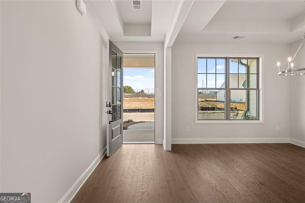 Welcome to Soleil Summit Chase! A Gated Luxury Resort Style 55 and Better Active Adult community by award Winning Builder Patrick Malloy Communities. Nestled in a quiet setting of established communities and pastoral estates, Soleil Summit Chase will offer the resort style of living unlike anything in the Gwinnett area! The community offers an approximate 4,500 sq ft Clubhouse with a Great Room and Bar for relaxation and socializing, a Catering Kitchen for events or even start your very own Cooking Class! There is a Fitness Room and a Yoga Patio as well as two Flex Rooms for a fun game night, card room, book club or other activities. In addition to fitness and yoga patio, you could always enjoy the swimming pool with sun shelf! For those who love the outdoors, a Grilling and Fire Pit area, the Community Garden, Event Lawn, a Dog Park, and Pickleball Courts. And enjoy the many future events planned by the community's very own Resort Director! Our Pearson B plan is a definite favorite for Soleil homeowners, this 2385 sq.ft. home has abundant living space! A large covered front porch to your entry foyer open to a Formal Dining room. Moving into your open concept living area with 11' ceilings you will discover the fireside Family room, Kitchen with huge island with breakfast bar and separate eating area and a walk-in pantry. Walk out from family room to welcoming covered rear patio! The primary bedroom offers wonderful living space and ensuite with separate vanities and zero entry shower with bench, linen closet and huge walk-in closet! A secondary bedroom with large walk-in closet and private bath! The 3rd bedroom for guests and adjacent to full bath. HOA includes yard maintenance, Internet, and securing monitoring system. Soleil Summit Chase isn't just a community of Ranch style homes; it is truly a New Lifestyle where it's all about You!!