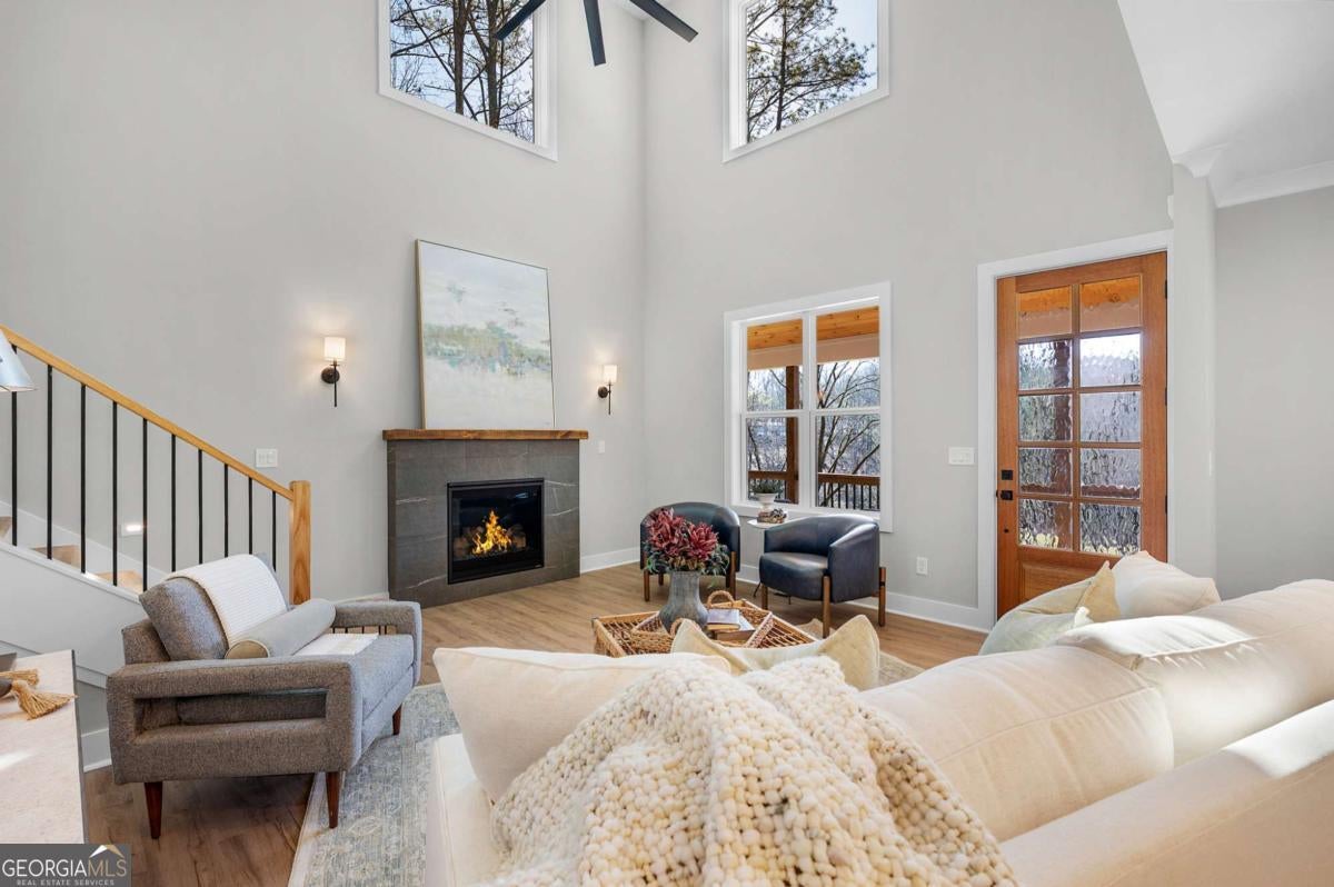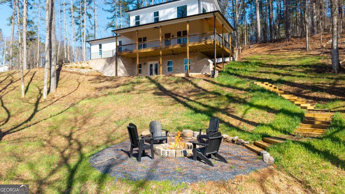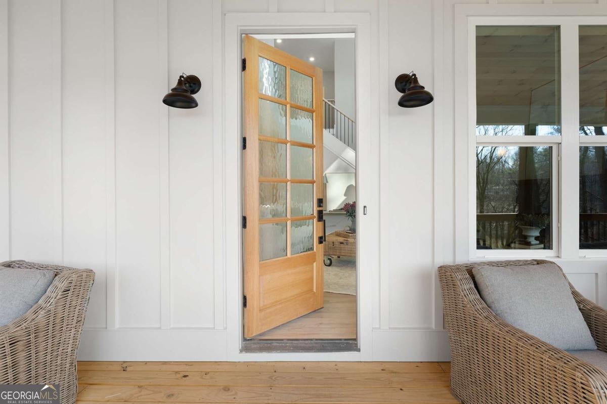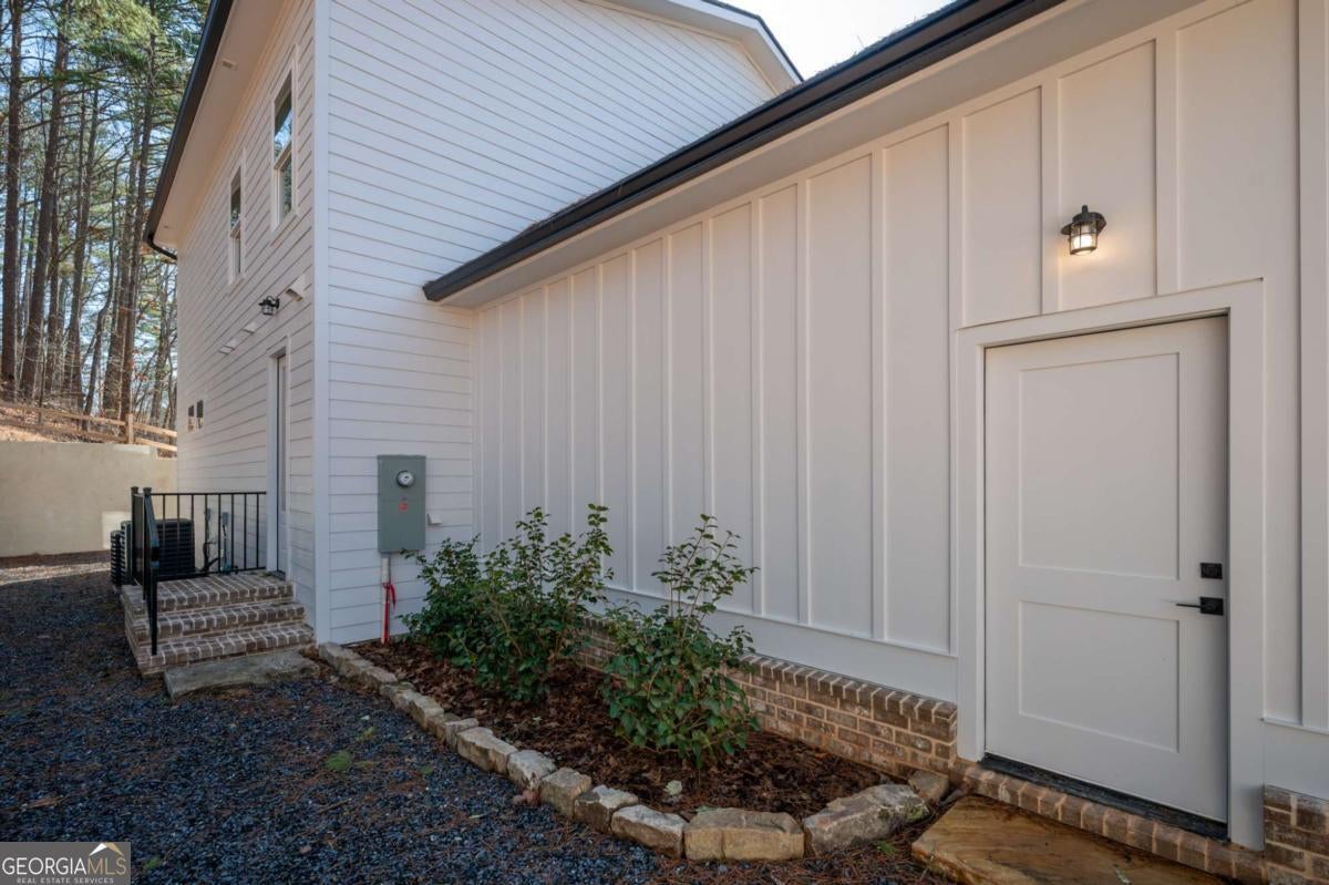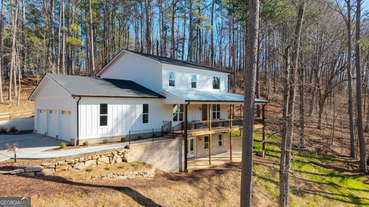 Welcome to your dream farmhouse retreat in Ball Ground! Nestled on 5.67 picturesque acres, this stunning 4-bedroom, 4.5-bath farmhouse-style home blends timeless character with modern luxury. Offering both space and privacy-with no HOA-this property is perfect for those seeking a lifestyle that feels like a true getaway. From the moment you arrive, the concrete driveway is denoted by a board fence, the crisp white board-and-batten exterior with black trim, warm brick accents, and an oversized three-car garage set the stage for what's inside. Step through the front door, and you'll be greeted by an open-concept design filled with thoughtful details. The foyer leads to a spacious laundry room with backyard access and a double-door pantry. At the heart of the home, the kitchen dazzles with white cabinetry, a deep blue island, quartz countertops, upgraded appliances, and a custom vent hood-all bathed in natural and recessed lighting. The two-story great room features a cozy brick fireplace with a wood mantle, creating the perfect gathering spot. The main-level owner's suite offers a private retreat with a walk-in closet and spa-inspired bath, complete with an oversized shower, dual vanities, and a water closet. Upstairs, you'll find three additional bedrooms-one with its own ensuite and two with walk-in closets that share a spacious hall bath. The terrace level expands your living space with a large family room, full bath, wet bar, and walk-out access to a covered patio overlooking rolling pastures. There's also unfinished space waiting for your personal touch. Quality upgrades throughout include: 8-foot doors Luxury vinyl flooring (with tile in the owner's bath) Engineered flooring system Foam insulation Masonry brick construction for lasting durability Step outside and enjoy the beauty of the land: wide open grassland, a charming creek with a bridge, and even a larger creek beyond-an idyllic setting for a swing, barn, or horses. Located in sought-after Ball Ground, this property offers natural beauty, peaceful privacy, and easy access to local amenities. Don't just buy a home-create your homestead.