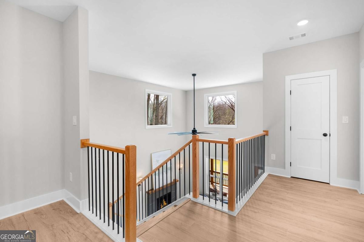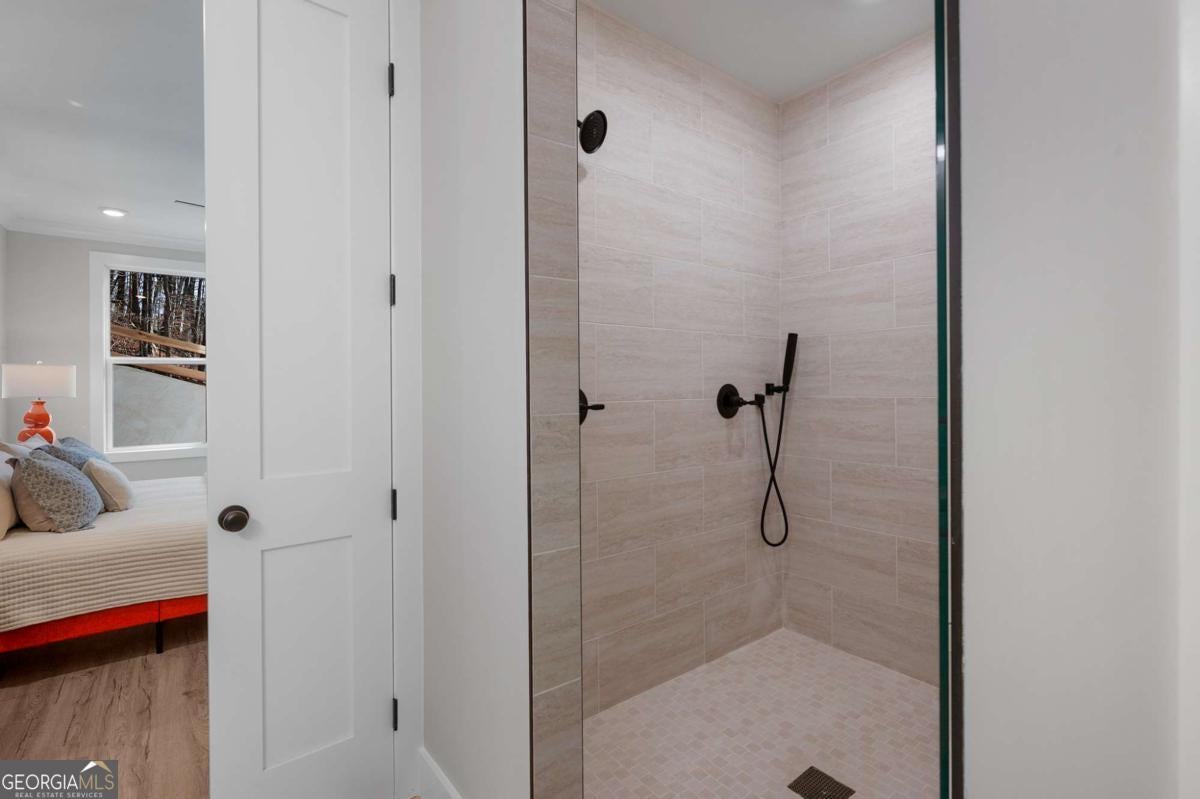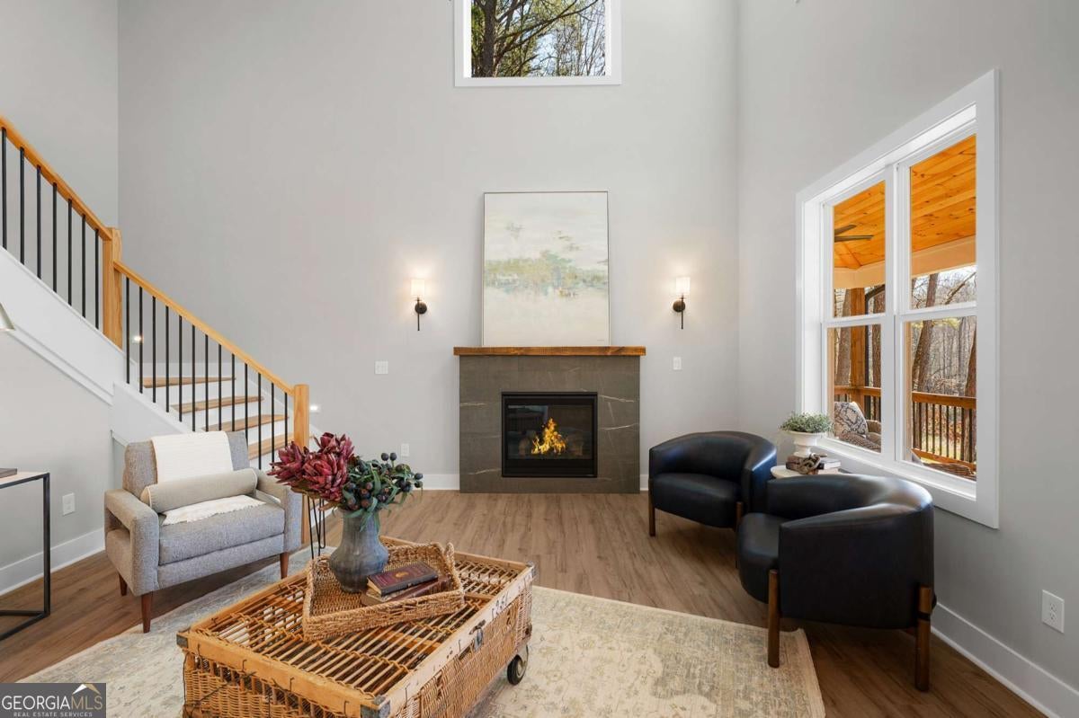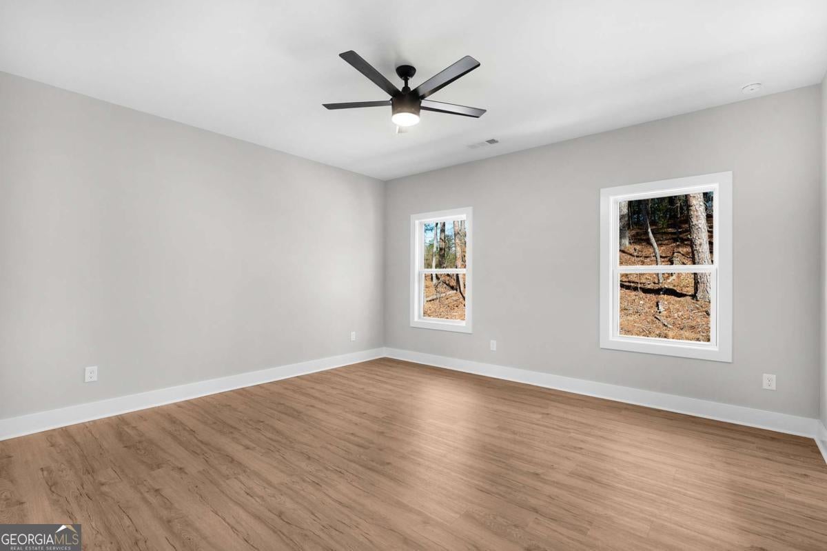 Welcome to your dream farmhouse retreat in Ball Ground! Nestled on 5.67 picturesque acres, this stunning 4-bedroom, 4.5-bath farmhouse-style home blends timeless character with modern luxury. Offering both space and privacy-with no HOA-this property is perfect for those seeking a lifestyle that feels like a true getaway. From the moment you arrive, the concrete driveway is denoted by a board fence, the crisp white board-and-batten exterior with black trim, warm brick accents, and an oversized three-car garage set the stage for what's inside. Step through the front door, and you'll be greeted by an open-concept design filled with thoughtful details. The foyer leads to a spacious laundry room with backyard access and a double-door pantry. At the heart of the home, the kitchen dazzles with white cabinetry, a deep blue island, quartz countertops, upgraded appliances, and a custom vent hood-all bathed in natural and recessed lighting. The two-story great room features a cozy brick fireplace with a wood mantle, creating the perfect gathering spot. The main-level owner's suite offers a private retreat with a walk-in closet and spa-inspired bath, complete with an oversized shower, dual vanities, and a water closet. Upstairs, you'll find three additional bedrooms-one with its own ensuite and two with walk-in closets that share a spacious hall bath. The terrace level expands your living space with a large family room, full bath, wet bar, and walk-out access to a covered patio overlooking rolling pastures. There's also unfinished space waiting for your personal touch. Quality upgrades throughout include: 8-foot doors Luxury vinyl flooring (with tile in the owner's bath) Engineered flooring system Foam insulation Masonry brick construction for lasting durability Step outside and enjoy the beauty of the land: wide open grassland, a charming creek with a bridge, and even a larger creek beyond-an idyllic setting for a swing, barn, or horses. Located in sought-after Ball Ground, this property offers natural beauty, peaceful privacy, and easy access to local amenities. Don't just buy a home-create your homestead.