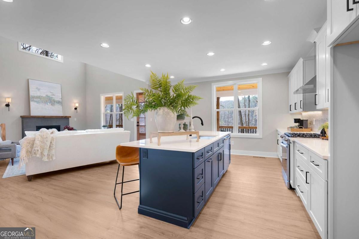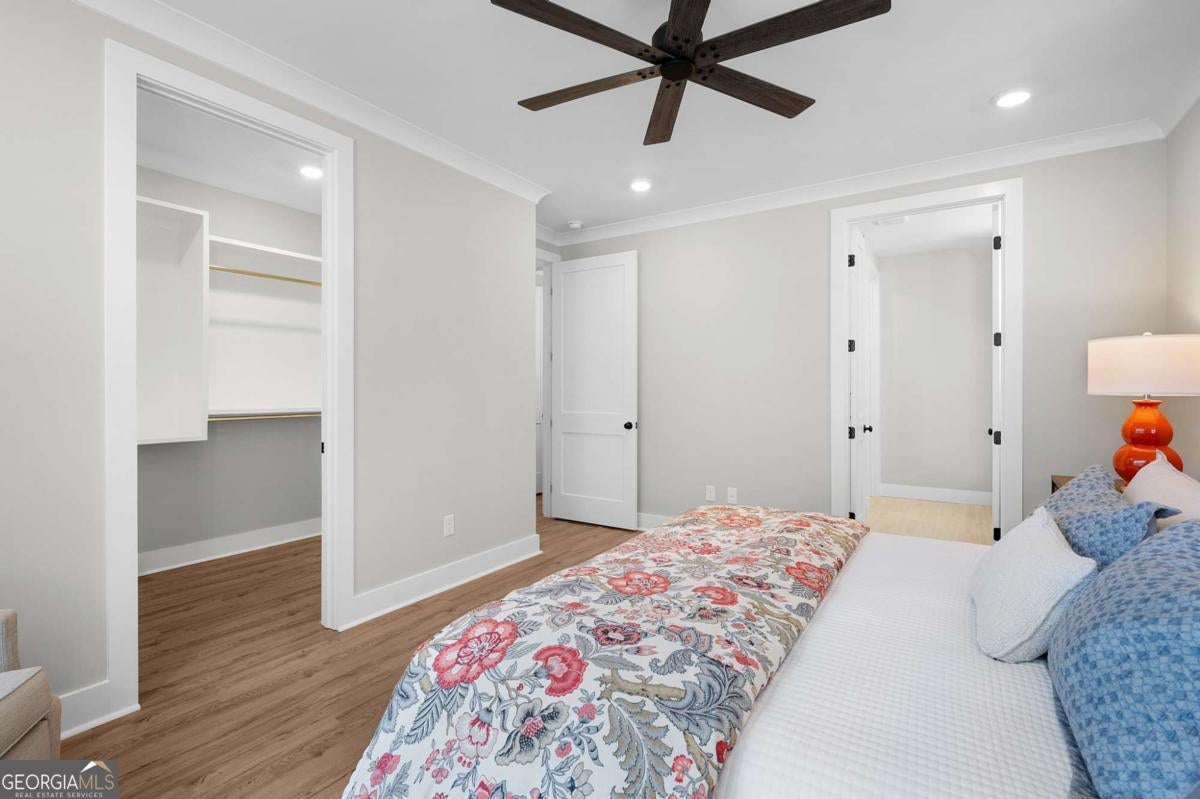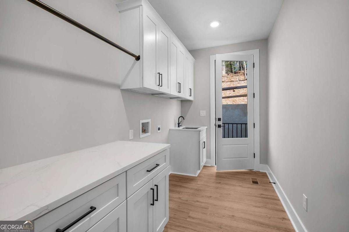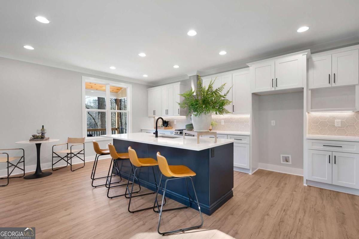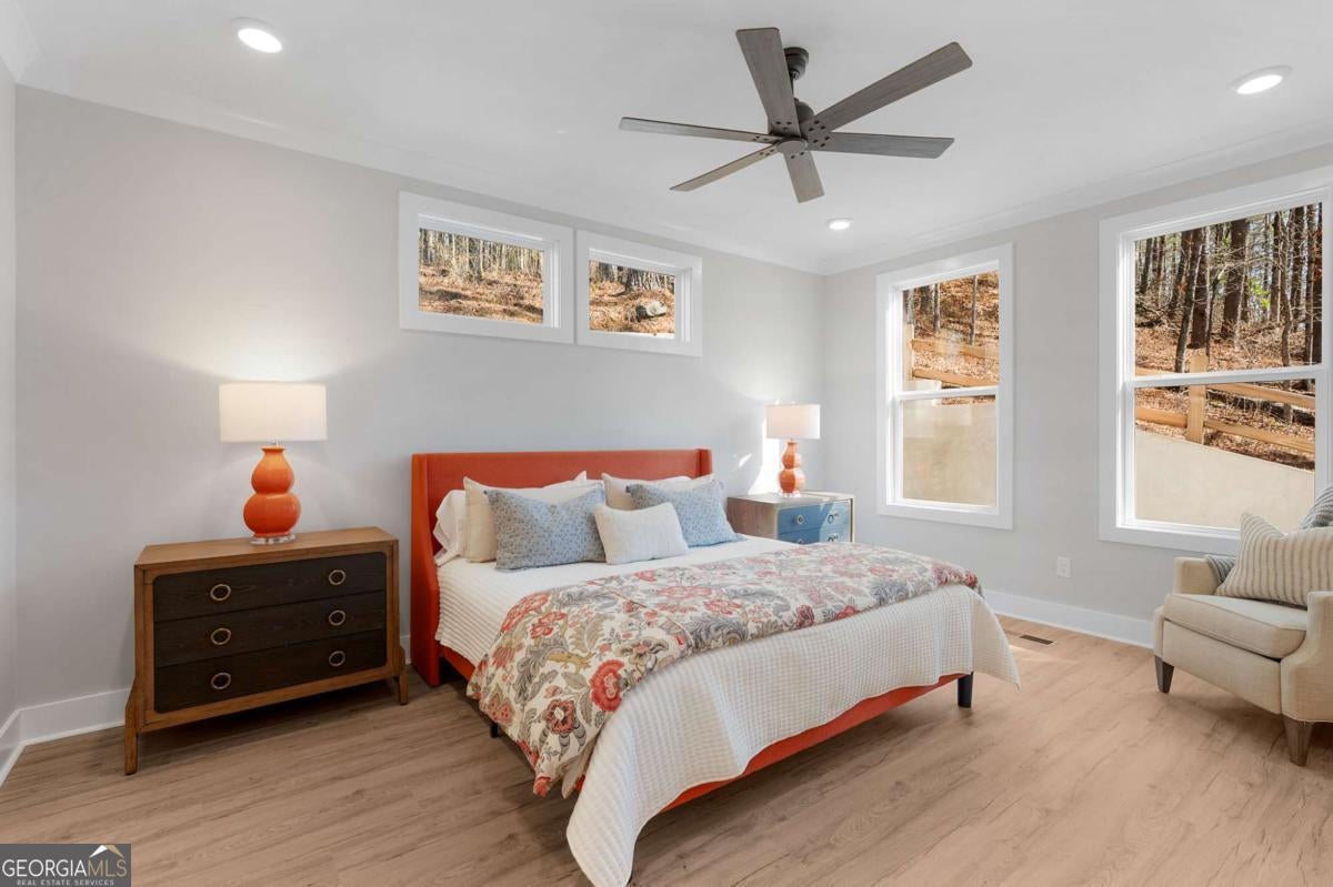 Welcome to your dream farmhouse retreat in Ball Ground! Nestled on 5.67 picturesque acres, this stunning 4-bedroom, 4.5-bath farmhouse-style home blends timeless character with modern luxury. Offering both space and privacy-with no HOA-this property is perfect for those seeking a lifestyle that feels like a true getaway. From the moment you arrive, the concrete driveway is denoted by a board fence, the crisp white board-and-batten exterior with black trim, warm brick accents, and an oversized three-car garage set the stage for what's inside. Step through the front door, and you'll be greeted by an open-concept design filled with thoughtful details. The foyer leads to a spacious laundry room with backyard access and a double-door pantry. At the heart of the home, the kitchen dazzles with white cabinetry, a deep blue island, quartz countertops, upgraded appliances, and a custom vent hood-all bathed in natural and recessed lighting. The two-story great room features a cozy brick fireplace with a wood mantle, creating the perfect gathering spot. The main-level owner's suite offers a private retreat with a walk-in closet and spa-inspired bath, complete with an oversized shower, dual vanities, and a water closet. Upstairs, you'll find three additional bedrooms-one with its own ensuite and two with walk-in closets that share a spacious hall bath. The terrace level expands your living space with a large family room, full bath, wet bar, and walk-out access to a covered patio overlooking rolling pastures. There's also unfinished space waiting for your personal touch. Quality upgrades throughout include: 8-foot doors Luxury vinyl flooring (with tile in the owner's bath) Engineered flooring system Foam insulation Masonry brick construction for lasting durability Step outside and enjoy the beauty of the land: wide open grassland, a charming creek with a bridge, and even a larger creek beyond-an idyllic setting for a swing, barn, or horses. Located in sought-after Ball Ground, this property offers natural beauty, peaceful privacy, and easy access to local amenities. Don't just buy a home-create your homestead.