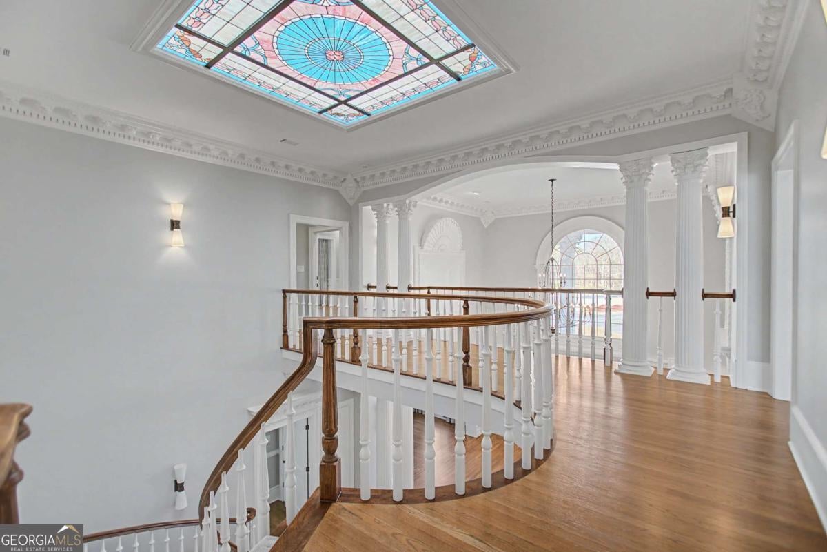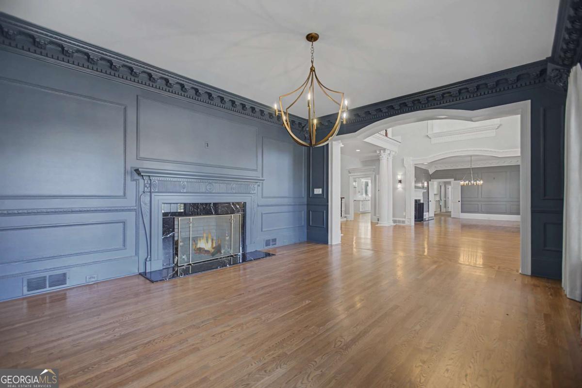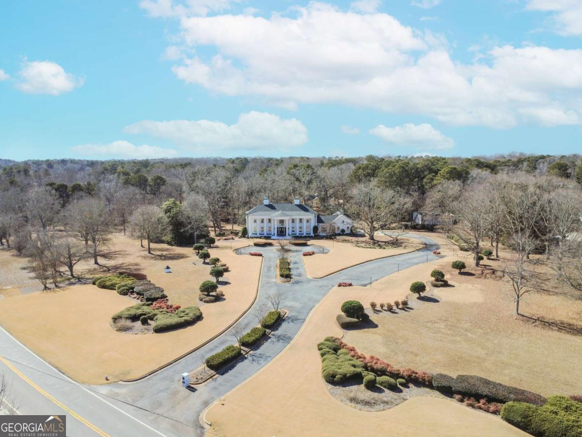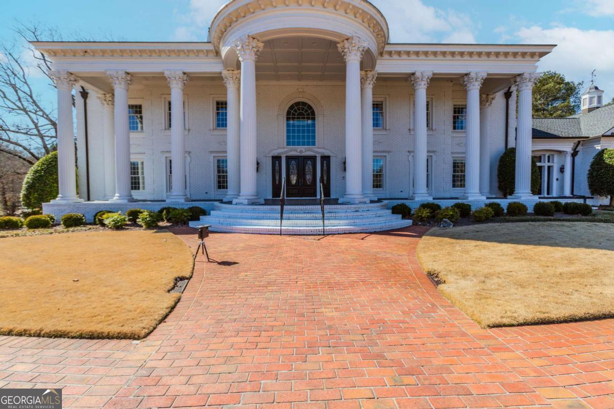 Stunning southern mansion located on 12.65 acres landscaped with beautiful trees, emerald zoysia lawn and your own personal putting green with artificial turf. As you turn into the driveway this 4-sided brick colonial with a two-story front porch with 11 columns will take your breath away. The grand entrance features a two-story foyer with a floating mahogany winding staircase, custom stained-glass skylight, custom plaster, ornate trim imported from England and there is exquisite, detailed wood trim in every room from floor to ceiling. The large study features a fireplace and elegant crown molding and there is an oversized formal dining room for entertaining. Step down to enormous two-story great room with mahogany bookshelves and beautiful stained woodwork. The Kitchen is completely remodeled white cabinetry, a large island, Cambria quartz countertops, double Wolf range with commercial vent hood, pot filler, 64 inch built-in refrigerator / freezer, Bosch dishwasher, microwave, enormous walk-in pantry with custom shelving with scullery area and the breakfast room with built-in buffet sits 12. The solarium off the breakfast room offers views of the luxury resort style pool and outdoor kitchen. For added convenience, there is an elevator off the kitchen taking you upstairs. There are 5 bedrooms including 2 primary suites, one on main one upstairs, both with fireplaces with custom mantles and custom white marble primary bathrooms with high-end finishes. There is a separate apartment with full kitchen, living room, laundry, bedroom, and oversized secondary bedrooms joined by a jack-and-jill bathroom. The upstairs loft is great for a home gym, playroom or craft room. Oversized main floor laundry room with refrigerator and pet washing station. Elegant hardwood floors throughout the home with tile in bathrooms, kitchen, laundry. The basement offers a 1/2 bath and car washing station with floor drains. The home has an attached 3 car garage and separate 60' x 40' detached building stubbed for a bath with electricity, water and can be used as a workshop or hold an additional 12 cars for the car enthusiast. Outdoors is an entertainer's dream with a resort style heated saltwater 20' x 40' pool with swim bar, waterfall, hidden stone grotto, and covered pavilion with outdoor kitchen. Home features a total of five fireplaces, elevator, all 6 HVAC units are covered.
