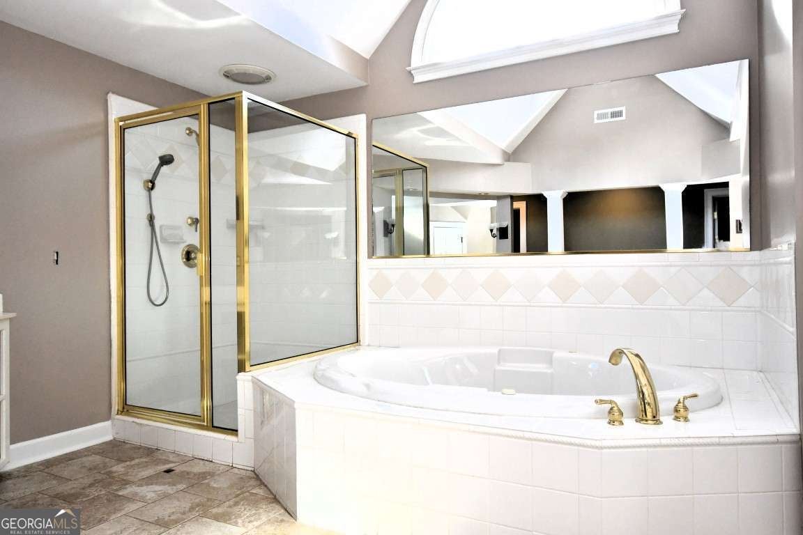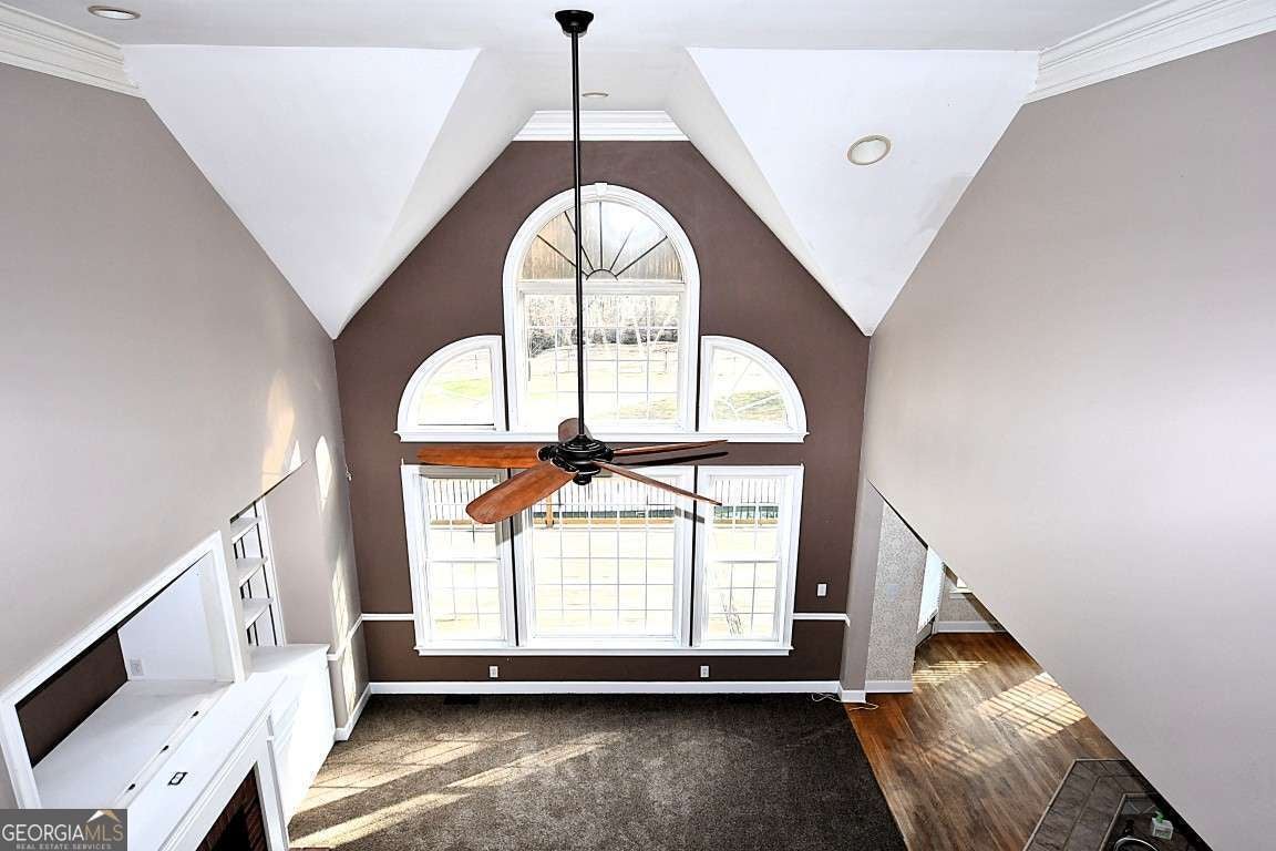 - Interior FeaturesBookcases, Double Vanity, High Ceilings, Rear Stairs, Separate Shower, Soaking Tub, Tray Ceiling(s), Vaulted Ceiling(s), Walk-In Closet(s), Whirlpool Bath