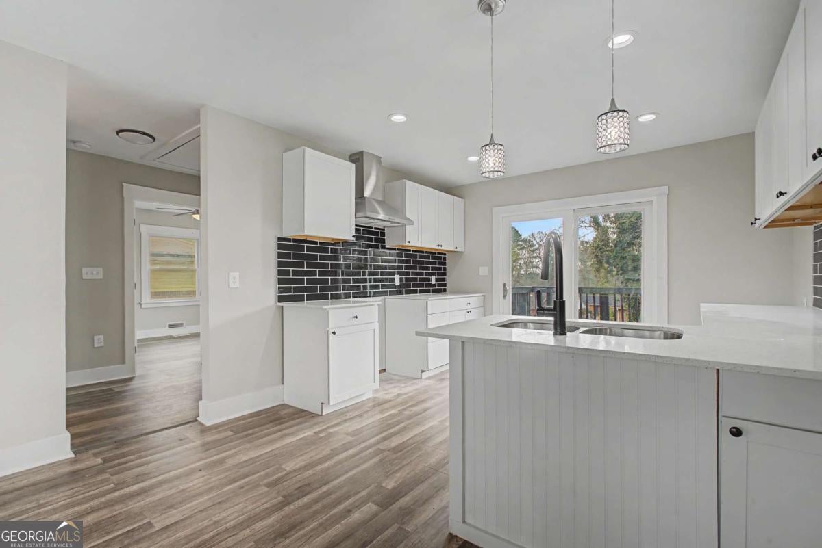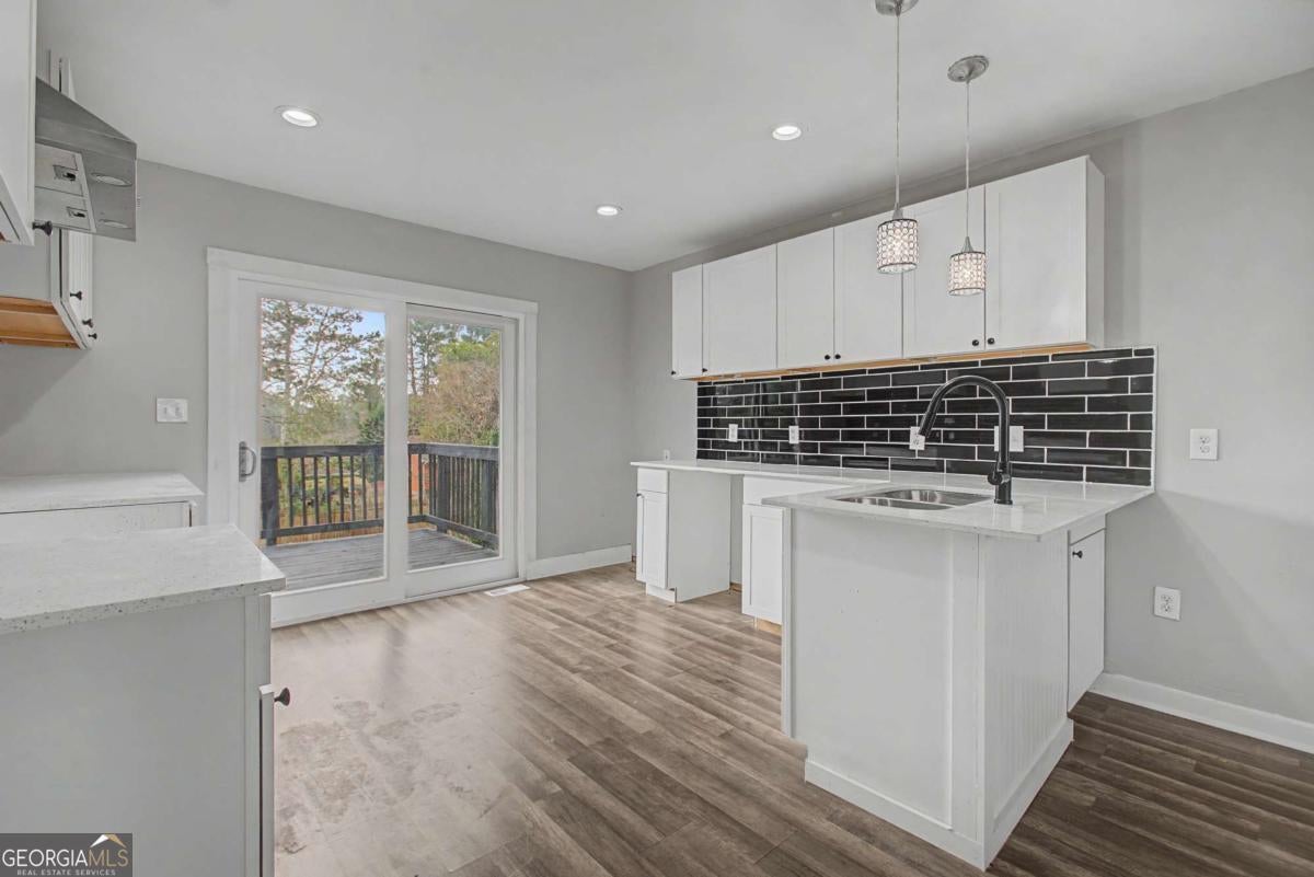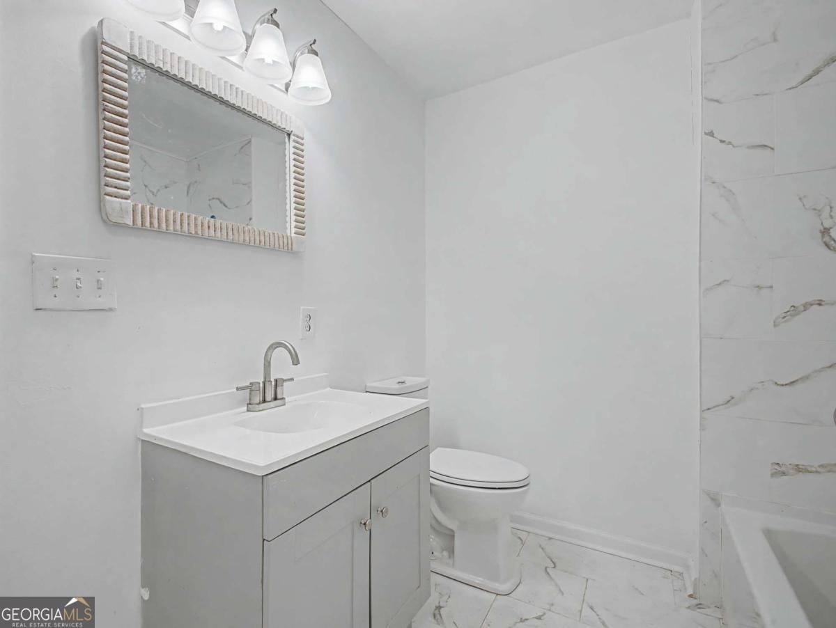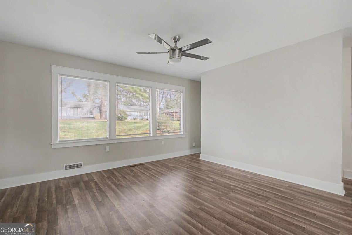 A must see 4 sided COMPLETELY RENOVATED 4 bed, 3 full bath brick ranch on a finished basement in Belvedere Park. New floors, paint, bathrooms and the roof is only 3 years old. The open floor plan offers a large family room that opens to the kitchen with solid surface counter tops, tile backsplash, counter seating; stainless steel appliances to be installed prior to closing to include refrigerator, stove and dishwasher and new water heater. The large deck off kitchen overlooks the fenced backyard, perfect space for relaxing or entertaining. The main level features a primary suite with full bathroom and 2 secondary bedrooms with a full bathroom. The fully finished basement offers an oversized entertaining area, bedroom and full bath. Ample driveway space for parking. Conveniently located and minutes to shopping, grocery stores, East Lake golf course, Piedmont College, public transit and easy access to I-20. Available for Lease Purchase and Rent - contact agent for further details.