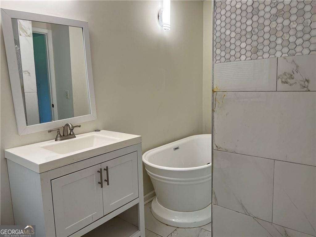 Prime location just minutes from I-285! This beautifully updated 3-bedroom, 3-bath home offers modern comfort and style throughout. The kitchen features luxurious Italian marble flooring, granite countertops, stainless steel appliances, brand-new cabinetry, and an open-concept layout with a seamless view into the family room. Bedrooms boast elegant hardwood floors, while the family room showcases durable luxury vinyl flooring. Recent upgrades include updated bathrooms, new light fixtures, ceiling fans, a newer roof, and an updated HVAC system. Enjoy outdoor living with a spacious deck overlooking a level backyard. The property also offers a long driveway for ample parking and is conveniently located near shopping, dining, and entertainment.