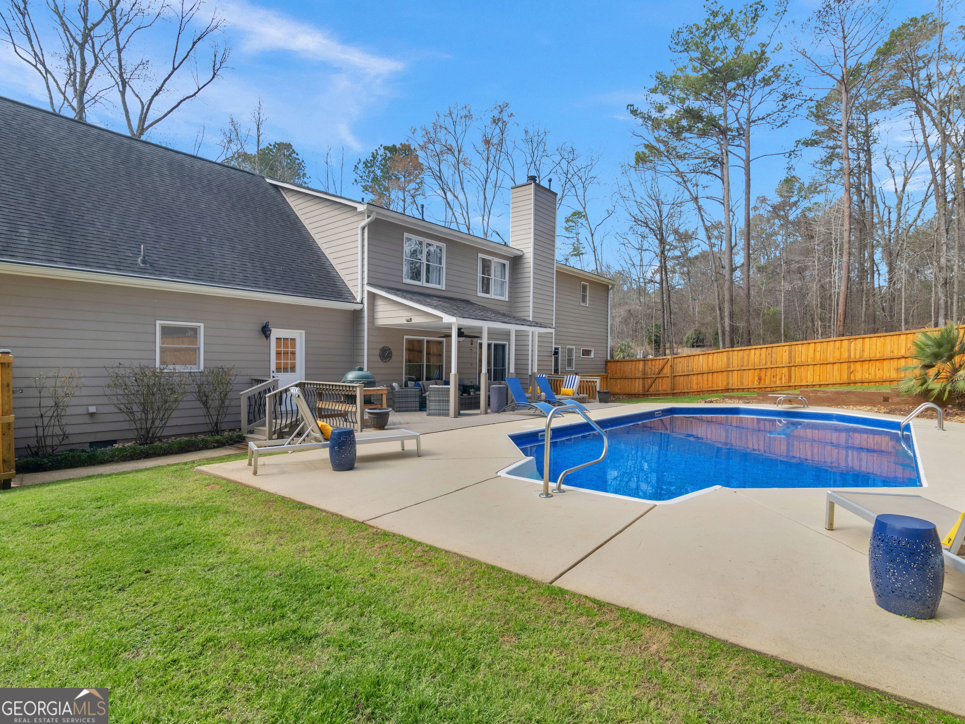Big Rooms, Backyard Oasis, No HOA! ... this is the kind of home people wait for. Tucked away on a quiet culdesac in the Lake Spivey / Eagles Landing area, this custom built home sits on 1.3 private acres. From the moment you step inside you feel at home from the two story foyer to the huge great room with a cozy fireplace that overlooks the private backyard oasis with your own private inground saltwater pool with cool deck coating. Natural light pours in, and the view of the pool makes this space feel open, relaxed, and ready for gatherings year round. The kitchen is designed for both functionality and entertaining, with abundant cabinet and countertop space, a breakfast bar, sunny breakfast area, pantry, and stainless appliances including the refrigerator. Just off the foyer, the formal dining room is ready for holidays and special occasions, while hardwood floors add warmth and character to the main level. The primary suite on the main level offers a true retreat, complete with an updated bath featuring a two person tiled shower, dual vanities, linen closet, and separate his and her walk-in closets. A convenient powder room is also located on the main level for guests. Upstairs, you will be impressed by the size of the secondary bedrooms. All three are spacious and include walk in closets. Two bedrooms share a Jack and Jill bath with dual sinks, granite countertops and linen closet, while the third enjoys a private bath, its own linen closet, and access to an unfinished bonus room with room to expand. The terrace level adds incredible flexibility with a finished office/flex space/or potential fifth bedroom with private exterior access and separate driveway. A workshop area with a full size garage door and abundant storage makes this level as practical as it is versatile. There is even more to love outside. The inground saltwater pool, covered patio, new privacy fence with lighting, and expansive backyard create a setting that feels like a private retreat. With septic lines replaced, a new pool liner, new front door, updated lighting, new flooring, and fresh paint within the last year, major updates have already been completed. Located in a small established neighborhood with no HOA and convenient access to I75, shopping, dining, and entertainment, this home offers both privacy and accessibility. Homes with this level of space, flexibility, and outdoor living rarely come available. This is one you need to experience in person.