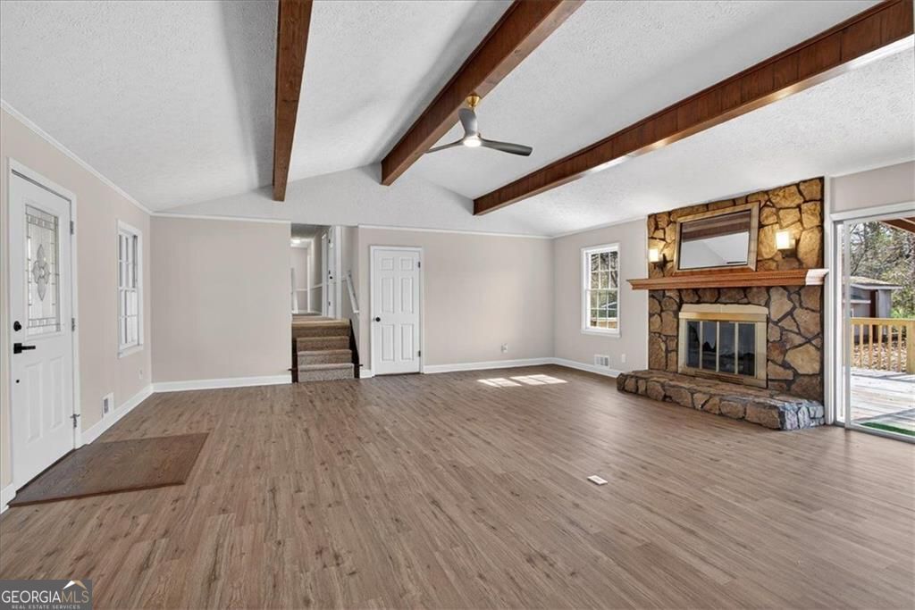 Your Dream Home Awaits: A Fully Renovated 4-Bedroom Oasis on a Private Dead-End Road. Nestled in a serene, private setting just minutes from Roswell, I-400, Downtown Woodstock, I-575 and Canton, this four-bedroom, three-and-a-half-bath home offers a thoughtfully designed living space. From brand-new systems to new finishes, every detail of this residence has been curated for comfort, style, and convenience. Renovated and Move-In Ready. This home has an oversized great room which features a rock fireplace, wood beams in the cathedral ceilings and a sliding glass door to the private back yard. 2 Brand-new HVAC systems ensures year-round comfort, while a newer roof provides peace of mind for years to come. Step inside to discover freshly updated interiors featuring new light fixtures, new exterior and interior painting and an inviting layout perfect for both daily living and entertaining. Stunning Kitchen at the heart of the home. Outfitted with all-new appliances, abundant cabinetry, and sleek granite countertops, it's designed to make meal preparation both effortless and enjoyable. Whether hosting family holidays or casual brunches, this kitchen will inspire special times. The serene Master suite has a large walk in closet and features a Luxurious Bathroom which features a large soaking bathtub, a walk in steam shower, heated towel rack, new double vanities and tile flooring. The fully renovated bathroom elevates your daily routine with spa-like finishes. Guest bedroom/2nd master suite ensures flexibility for multi-generational living or guest comfort, it has a private bathroom with new vanity, shower and tiled flooring. 2 Other quest bedrooms one with built in cabinets and a desk. A full guest bathroom with a new tub/shower, new marble vanity and, hardwood floors. Flexible Living Spaces for Work and Play. This home features a media room complete with its own efficiency kitchen, ideal for movie nights, gaming, or hosting gatherings. A dedicated office space allows you to work from home with ease, providing privacy and productivity in a comfortable setting with an exterior door to the back yard. Outdoor Living at Its Best. Enjoy the peaceful surroundings from your covered back deck or entertain friends on the open deck overlooking the property. Thoughtfully maintained outbuildings provide extra storage or hobby space, adding to the property's functionality. A oversized two-car garage offers ample parking, room and workbench and storage area. RV and boat parking. Private dead-end road ensures safety and seclusion. Every element of this residence is crafted to make life easier and more enjoyable. Prime Location. Located within a highly sought-after, award-winning school district, this home makes an ideal setting. You can enjoy the best of suburban living while remaining just minutes from shopping, dining, entertainment, and community events. No HOA. This home is turnkey, and ready for its next chapter with you. Don't miss the chance to own a fully renovated property in one of the most desirable areas. Key Features:*4 spacious bedrooms, including two master suites *3.5 fully renovated *Bathrooms with spa-like features *Steam shower and soaking tub in the main master suite *kitchen with brand-new appliances *Media room with its own efficiency kitchen *Dedicated home office *Covered and open back decks perfect for entertaining *Two-car garage and multiple outbuildings, RV and Boat Parking *Brand-new HVAC and newer roof *Private dead-end road for ultimate peace and safety *Close to Roswell, I-400, Downtown Woodstock, I-575 and Canton *Located in an award-winning school district ---