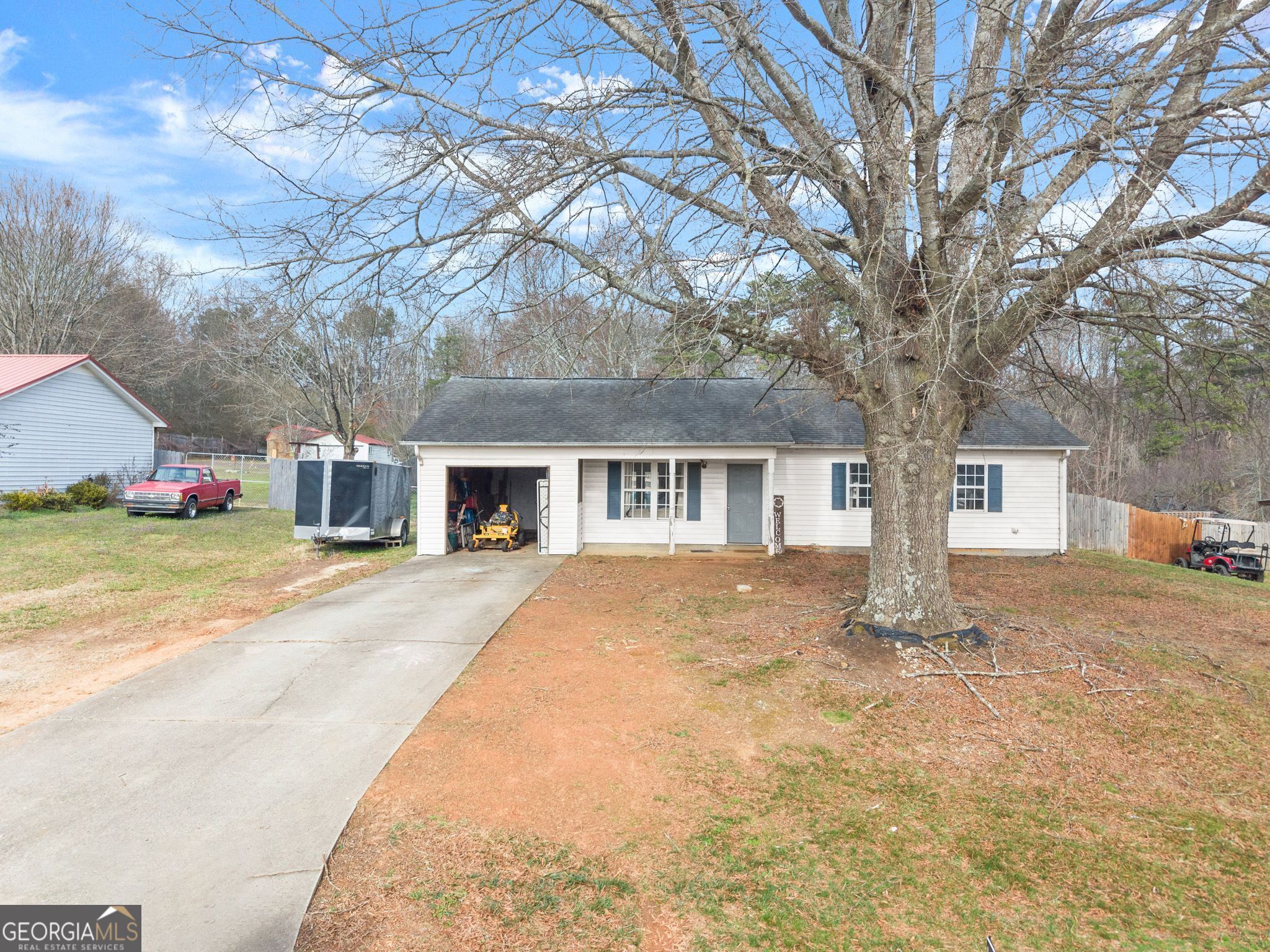 Amazing opportunity in North Hall schools! Priced below $300k. 3 beds, 2 baths and a fenced yard. NEW HVAC. Easy access to Cleveland Hwy and 985. Don't miss this charming step-less ranch home located just off Cleveland Hwy in a quiet, family friendly neighborhood with room to ride bikes and roller skate. Fenced yard for the pets, and a back patio for grilling and entertaining family and friends. Seller finishing projects currently, and willing to work with buyer. Carpets to be professionally cleaned after moveout