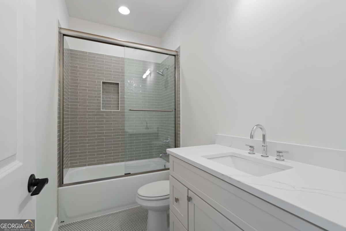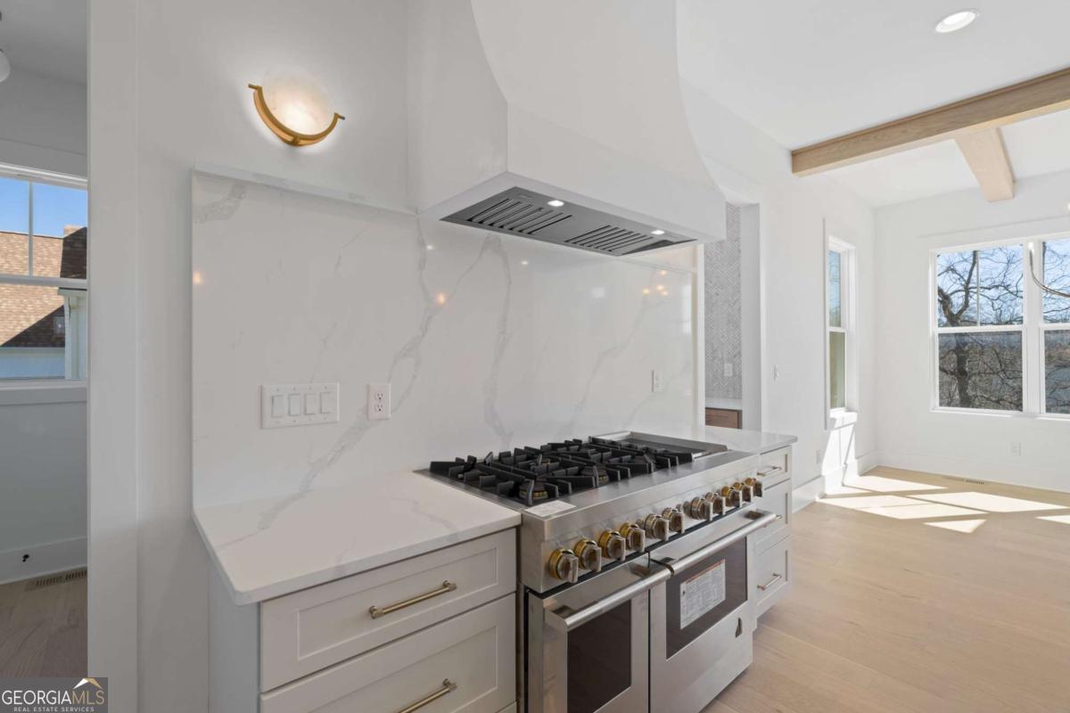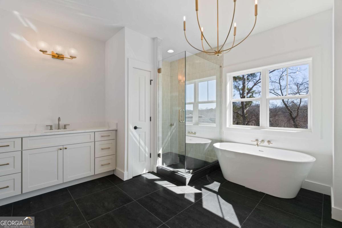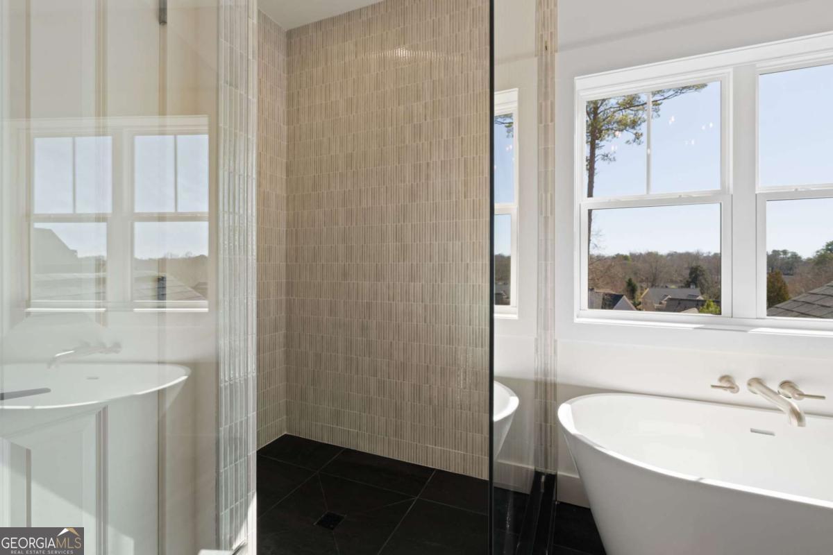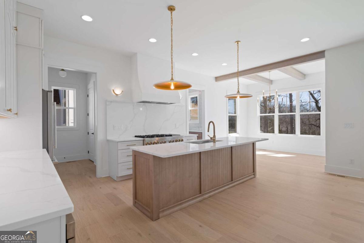 Experience elevated new construction in Smyrna. Ideally located near Smyrna Market Village, The Shops at Belmont, Tolleson Park and just a short drive to The Battery Atlanta and Truist Park (home of the Atlanta Braves), you'll enjoy year-round access to premier restaurants, boutique shopping, concerts, and game days. Grab a local brew at StillFire Brewing(Opening Soon), meet friends for dinner nearby, or enjoy quick access to major interstates for an easy commute into Atlanta. This thoughtfully designed residence pairs timeless architecture with curated, high-end finishes throughout. The striking exterior boasts bronze gutters, charcoal shingles, a stained Golden Oak 4-lite entry door, and the copper lantern sets a sophisticated tone from the start. Inside, red oak floors in a soft Nordic finish lead into a stunning designer kitchen featuring Calcatta Mora quartz countertops and full-height backsplash, a Caramel-stained island, Shaker White cabinetry, and a complete Thermador appliance package. Tucked behind the kitchen, a beautifully finished scullery with a separate a walk-in pantry provides additional prep space and storage, keeping the main kitchen pristine while maximizing function. The family room showcases custom built-ins and an Alabaster-painted fireplace surround, while a dramatic Dark Olive office creates a refined work-from-home retreat. This can also be a bedroom on the main level, with it's own ensuite bathroom. Upstairs, you'll find 3 secondary bedrooms, all with beautiful ensuite bathrooms and large closets. The primary suite offers a true sanctuary, complete with a spa-inspired bath and the rare luxury of direct access to the laundry room from the custom designed and built closet for effortless daily living. With intentional design, distinctive selections, and exceptional attention to detail throughout, this home delivers a sophisticated lifestyle just moments from Smyrna's most vibrant destinations.