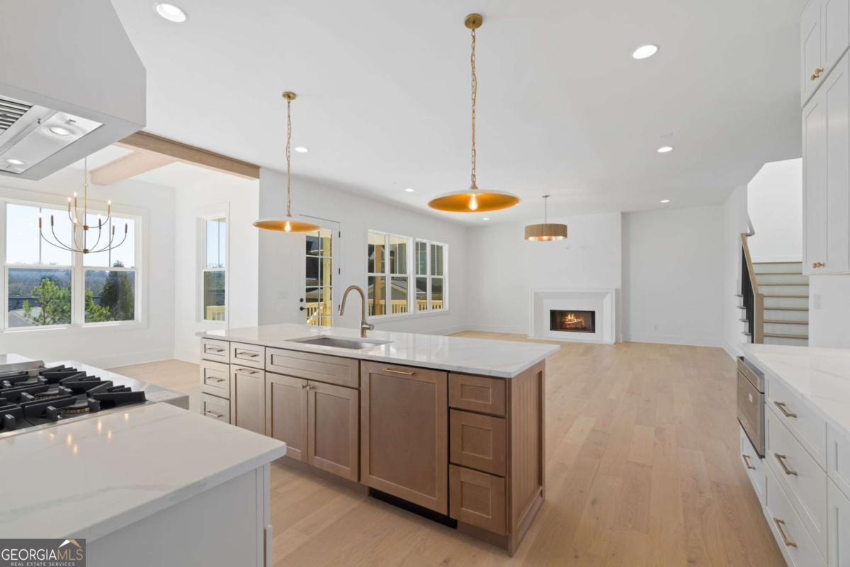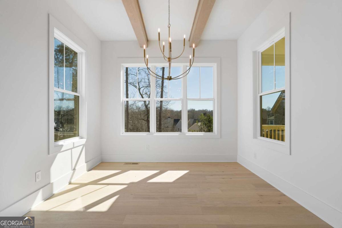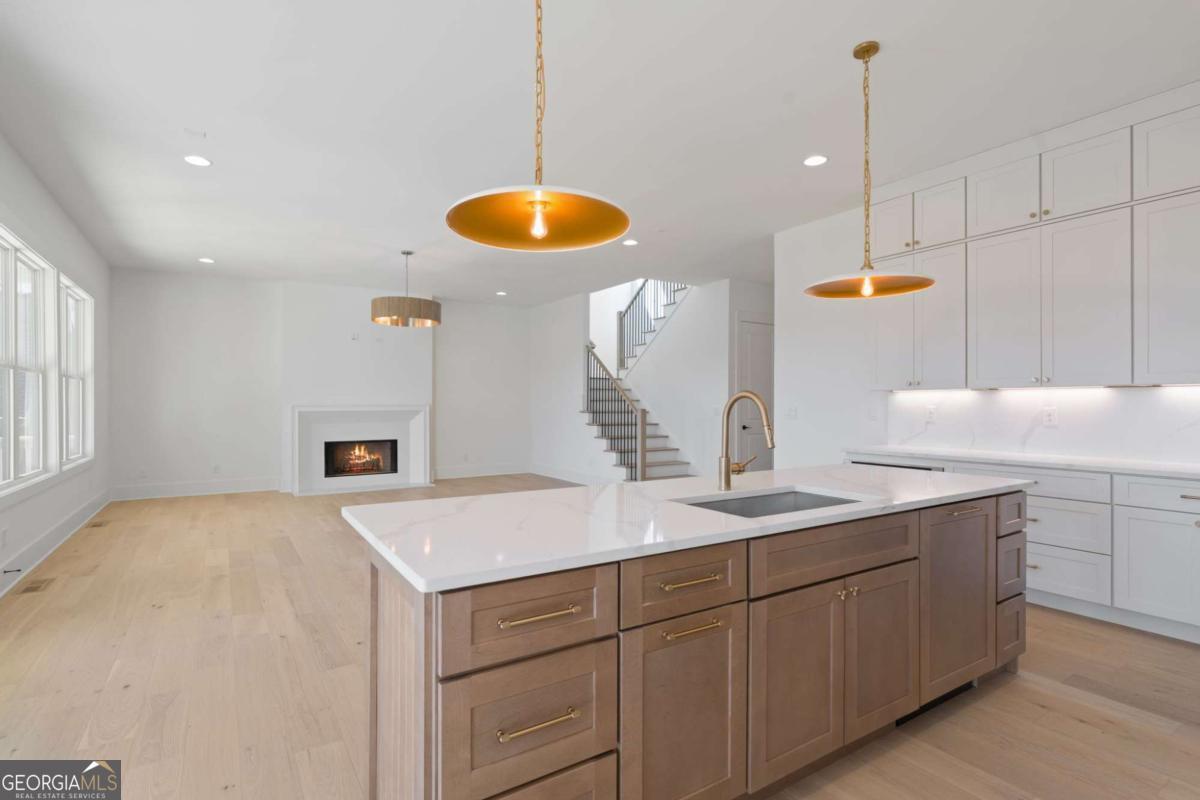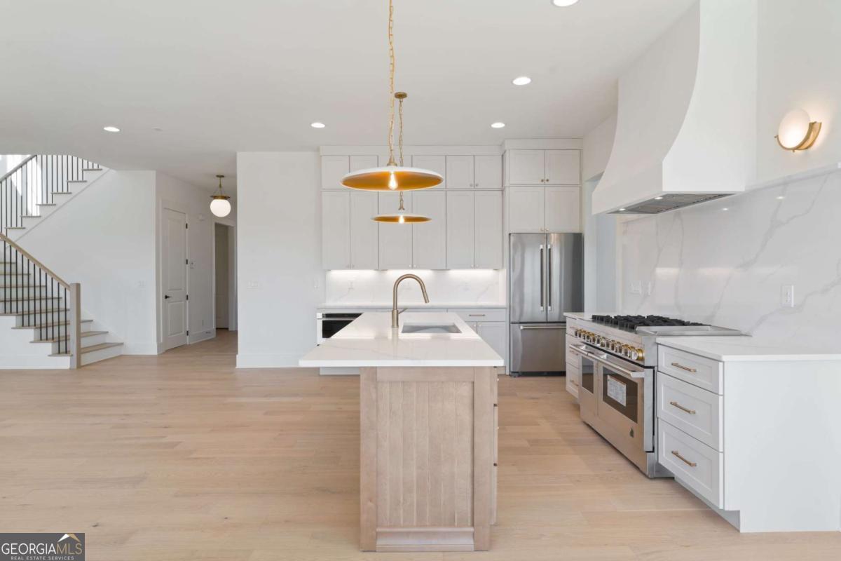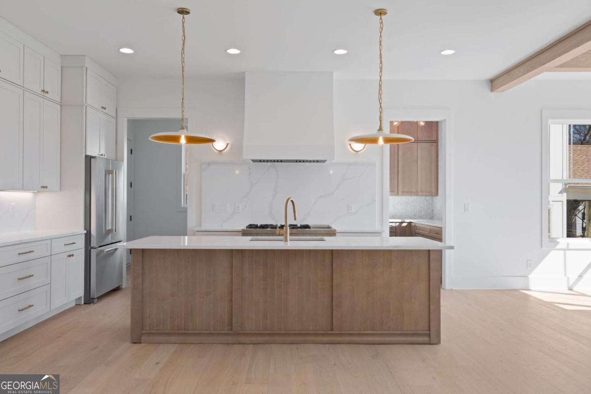 Experience elevated new construction in Smyrna. Ideally located near Smyrna Market Village, The Shops at Belmont, Tolleson Park and just a short drive to The Battery Atlanta and Truist Park (home of the Atlanta Braves), you'll enjoy year-round access to premier restaurants, boutique shopping, concerts, and game days. Grab a local brew at StillFire Brewing(Opening Soon), meet friends for dinner nearby, or enjoy quick access to major interstates for an easy commute into Atlanta. This thoughtfully designed residence pairs timeless architecture with curated, high-end finishes throughout. The striking exterior boasts bronze gutters, charcoal shingles, a stained Golden Oak 4-lite entry door, and the copper lantern sets a sophisticated tone from the start. Inside, red oak floors in a soft Nordic finish lead into a stunning designer kitchen featuring Calcatta Mora quartz countertops and full-height backsplash, a Caramel-stained island, Shaker White cabinetry, and a complete Thermador appliance package. Tucked behind the kitchen, a beautifully finished scullery with a separate a walk-in pantry provides additional prep space and storage, keeping the main kitchen pristine while maximizing function. The family room showcases custom built-ins and an Alabaster-painted fireplace surround, while a dramatic Dark Olive office creates a refined work-from-home retreat. This can also be a bedroom on the main level, with it's own ensuite bathroom. Upstairs, you'll find 3 secondary bedrooms, all with beautiful ensuite bathrooms and large closets. The primary suite offers a true sanctuary, complete with a spa-inspired bath and the rare luxury of direct access to the laundry room from the custom designed and built closet for effortless daily living. With intentional design, distinctive selections, and exceptional attention to detail throughout, this home delivers a sophisticated lifestyle just moments from Smyrna's most vibrant destinations.