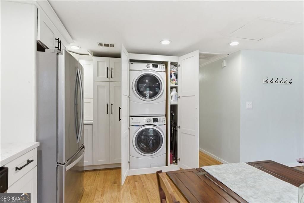 Move-in ready renovated cottage located in the established lake community of Shady Shores. This updated home features an open-concept layout with a remodeled kitchen, stainless steel appliances, and a convenient laundry area with stacking washer and dryer. Additional improvements include a tankless water heater, red oak hardwood floors throughout, an updated bathroom vanity, and fresh interior and exterior paint. New roof installed (2026). Recent property upgrades include a new drainage field (2024), sprinkler system, and French drains. The level lot offers a partially fenced backyard with functional outdoor space. Voluntary POA membership provides gated boat access to Lake Lanier. Nearby Tidwell Park offers dual boat ramps, swimming, fishing, and lake access for recreational use. Convenient access to GA-400 with proximity to shopping, dining, and additional recreation including Cumming City Center and the Cumming Aquatic Center.