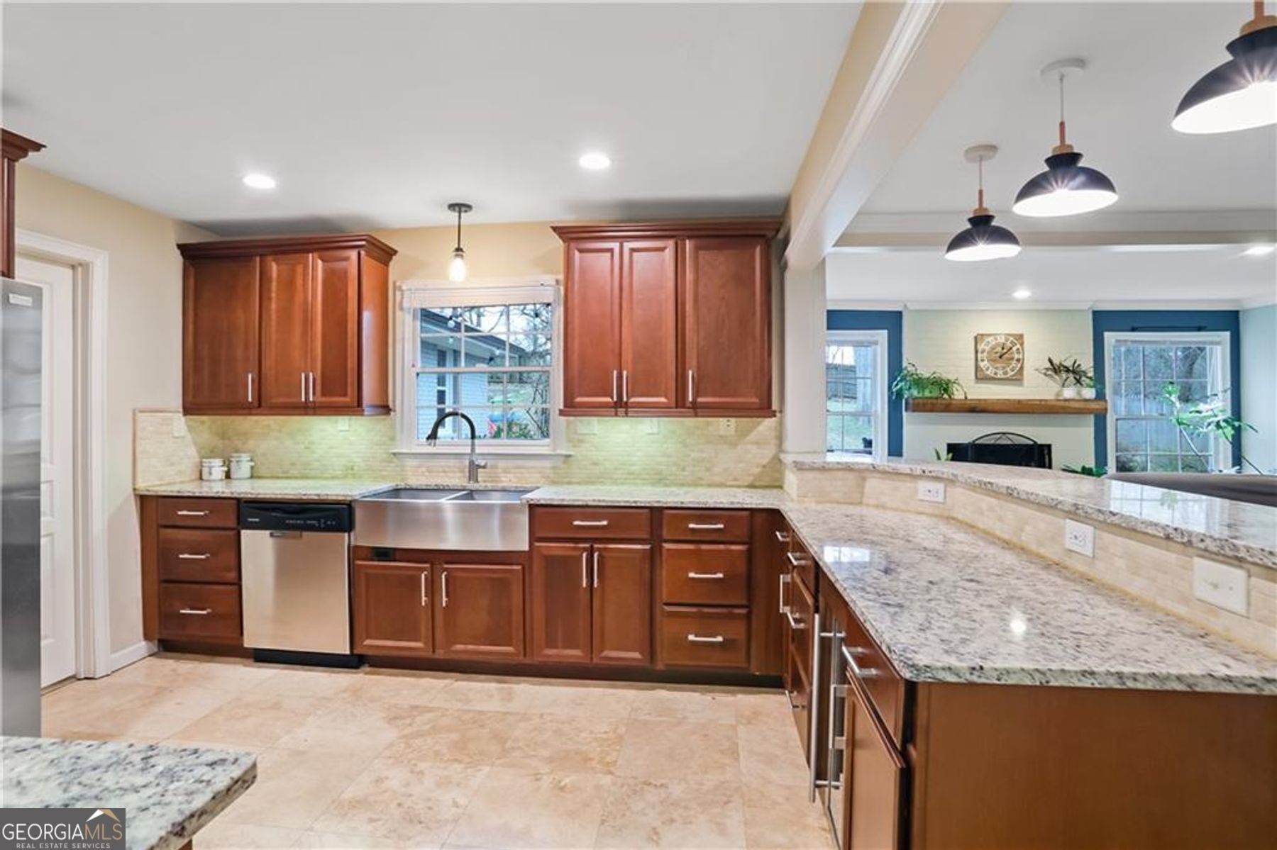 Welcome to this beautifully restored 4-sided brick ranch nestled in the heart of East Lake Terrace in Decatur. Offering significantly more square footage than most homes in the area, this property combines timeless construction with thoughtful modern updates - all situated on nearly half an acre of usable land. Fresh exterior paint enhances the classic brick facade. The spacious main living room features custom-built-in bookshelves, a masonry fireplace, and surround sound audio equipment that stays with the home. A versatile flex space provides the perfect setting for a home office, playroom, or formal dining room. An additional living area/sunroom with a second fireplace offers even more room to gather. The centrally located kitchen is complete with abundant cabinetry, granite countertops, new pendant lighting over the bar, a wine fridge, and plentiful natural light. The primary suite is generously sized and includes a large walk-in closet and a well-appointed ensuite bath featuring a double vanity, soaking tub, and walk-in shower. Two additional bedrooms are conveniently located nearby. The fourth bedroom would be perfect for a home gym or private guest bedroom! Outside, the nearly half-acre lot offers exceptional yard space for cookouts, recreation, gardening, or future outdoor enhancements. One of the standout features of this property is the detached two-car garage - large enough to accommodate vehicles plus additional space for storage, a workshop, or lounge area. Enjoy the convenience of being within walking distance to Barker Bryant Memorial Park, the new Publix shopping center, local restaurants, and everyday amenities. With its abundant square footage, modern upgrades, flexible living spaces, and prime location, this East Lake Terrace home presents a rare opportunity to own a move-in-ready property in one of Decatur's most accessible and growing neighborhoods.