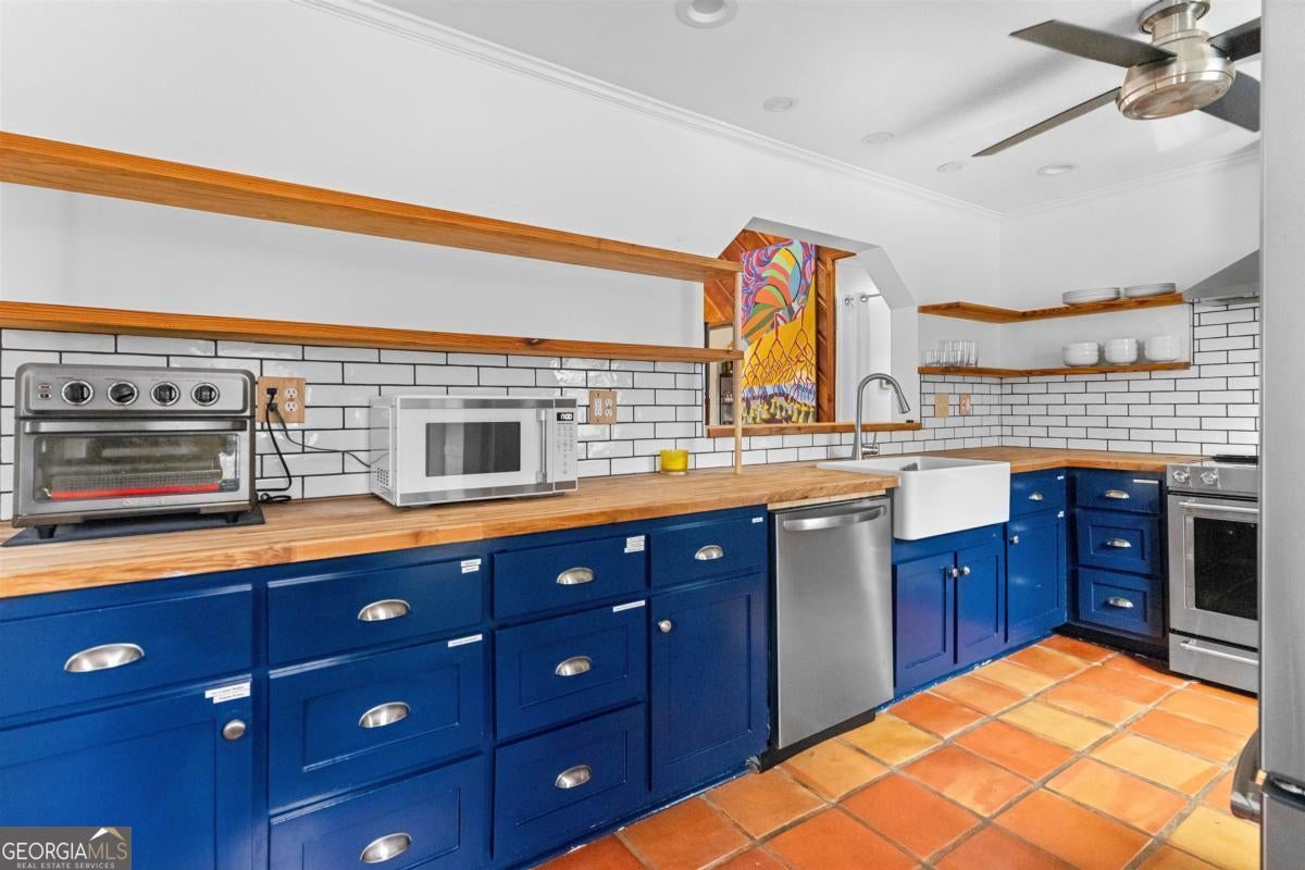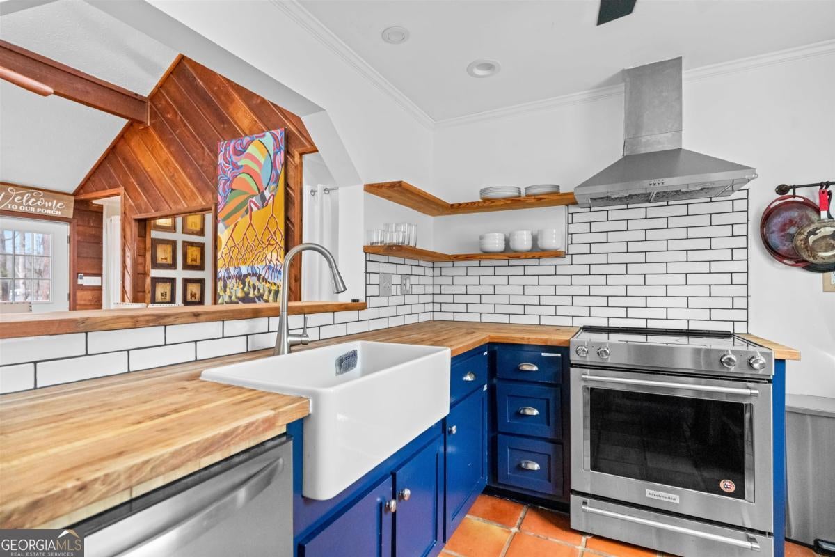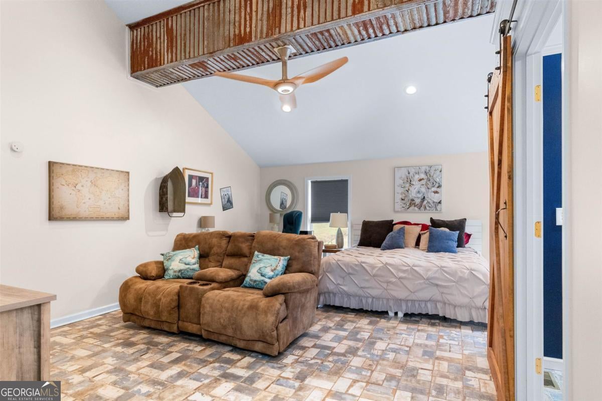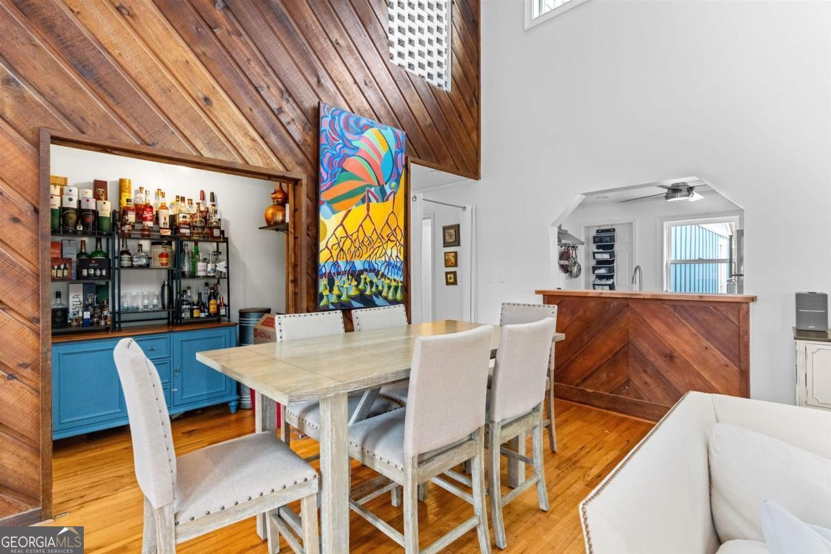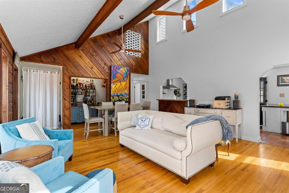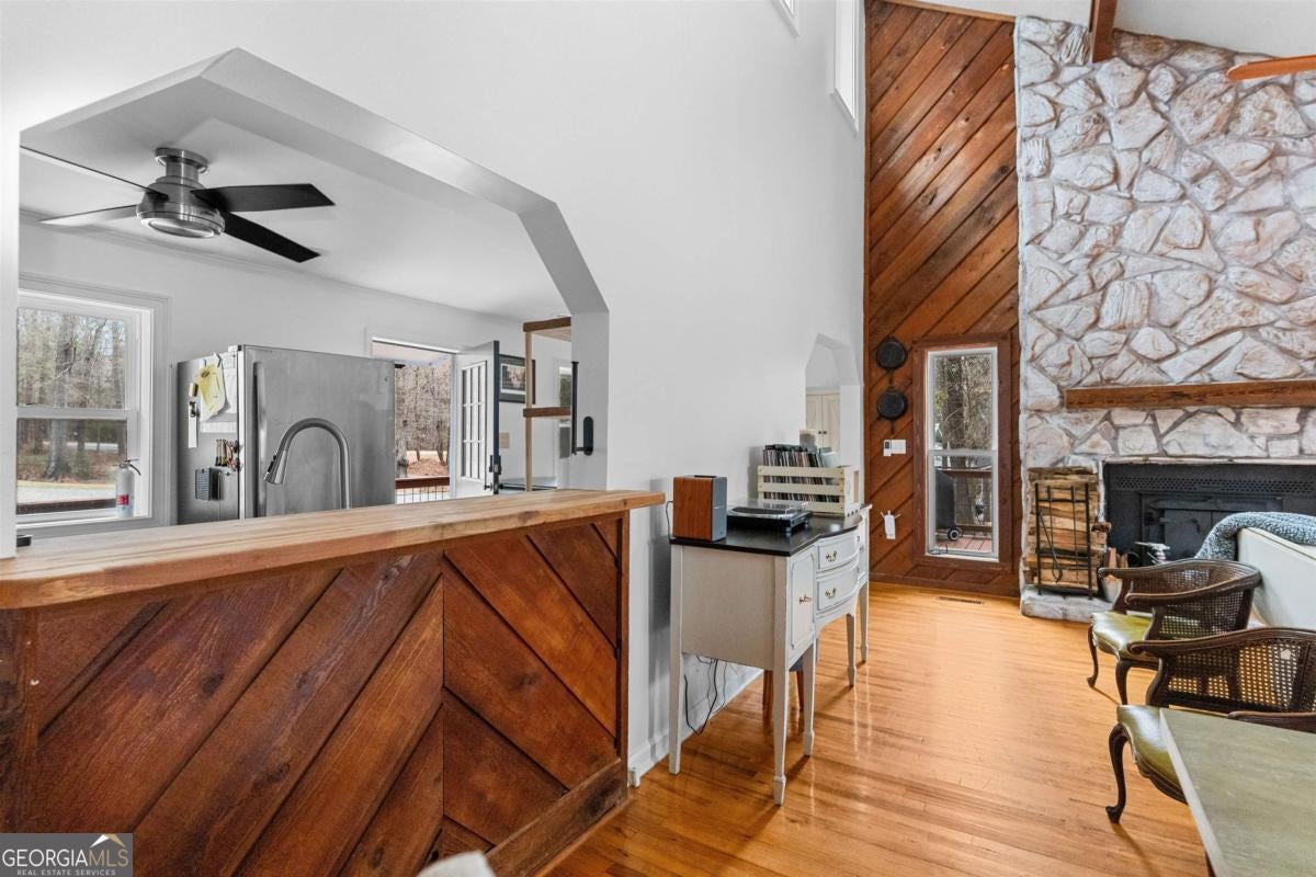 Welcome to carefree, lakefront living on beautiful Lake Sinclair. Perfectly positioned on a 1.6-acre fee simple lot in a highly desirable location, this 4-bedroom, 3-bath home offers the ideal blend of privacy, comfort, and convenience-just minutes from everything you need, yet peacefully tucked away on the water. Wake up to sparkling lake views and spend your days enjoying your private dock, with Georgia Power approval already in place for a single-stall boathouse. Whether it's boating, fishing, or sunset cruises, life here revolves around the water. Inside, the home was designed for relaxed gatherings and effortless entertaining. The vaulted great room features exposed beams, a stone fireplace, and walls of windows that bring the outdoors in. The inviting kitchen is a true heart-of-the-home space, complete with butcher block countertops and high-end stainless steel appliances-perfect for preparing meals after a long day on the lake. The oversized primary suite on the main level offers a comfortable retreat with its own mini kitchen and a spacious tiled bath. Two additional bedrooms on the main level share a bathroom. A private fourth bedroom and bath provides flexible space for guests, extended family, or weekend visitors. Step out onto the wraparound deck to enjoy morning coffee with a lake breeze, host summer cookouts, or unwind after a long day. There is also a fenced-in area off the deck, perfect for dogs, and a storage shed for all your lake toys. With an unbeatable location on Lake Sinclair, this property captures everything people love about lake life-laid-back, welcoming, and ready to enjoy.