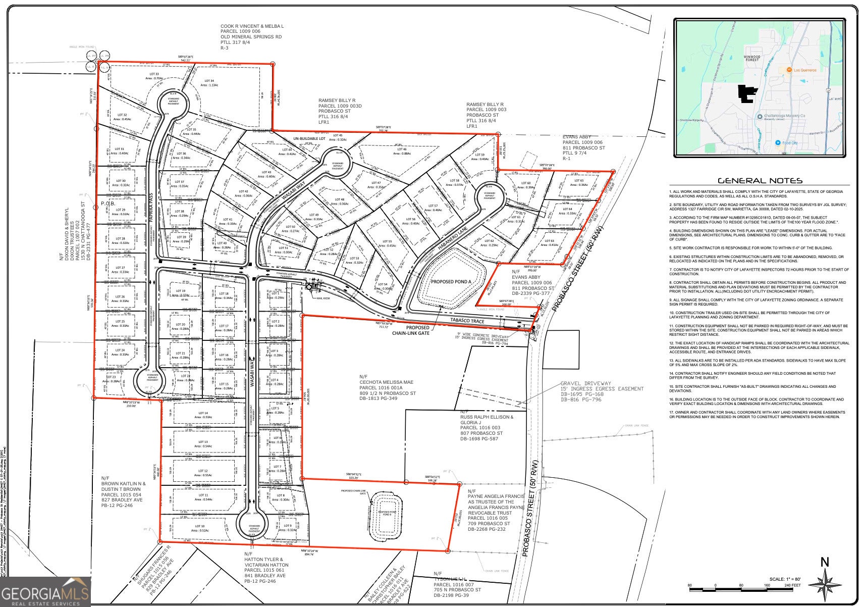64 single family units with Approved LDP. Gravity SS/ ALL Utilities). City of Lafayette, Walker County, Georgia. Zoning: R-1 (No Conditions). Average Lot size: 14,400 SQFT: 90' X 160'. Pad Design:Slab On Grade. Schools:North Lafayette ES, Lafayette MS, Lafayette HS
