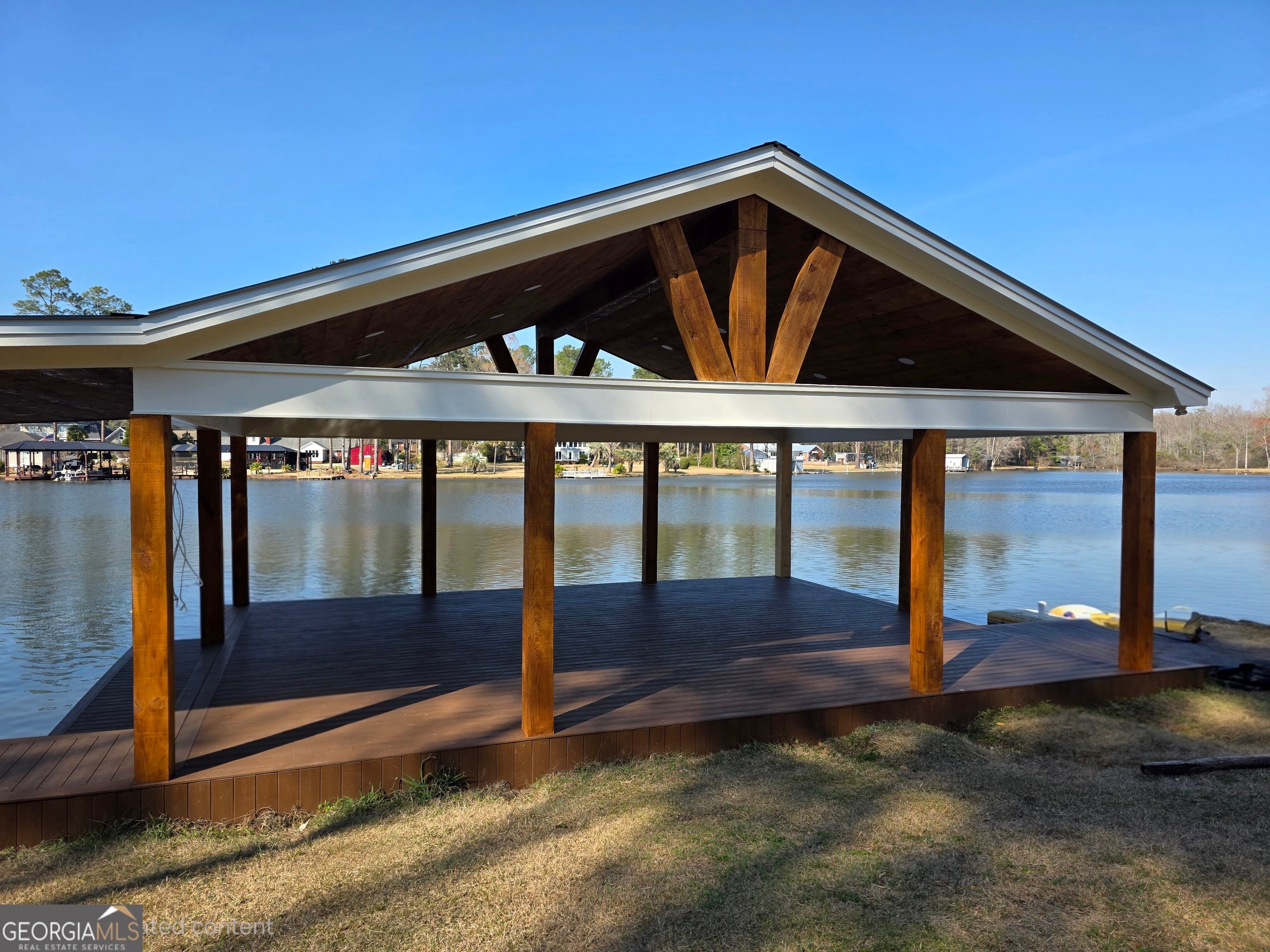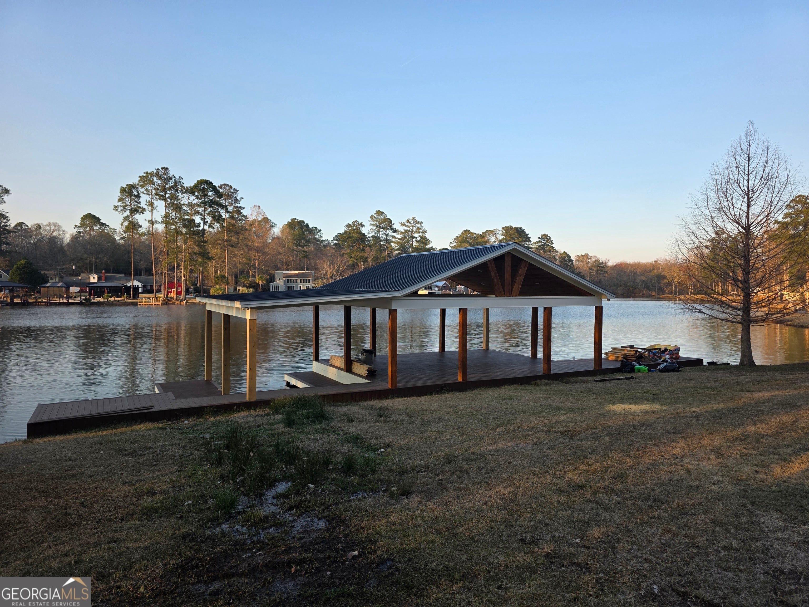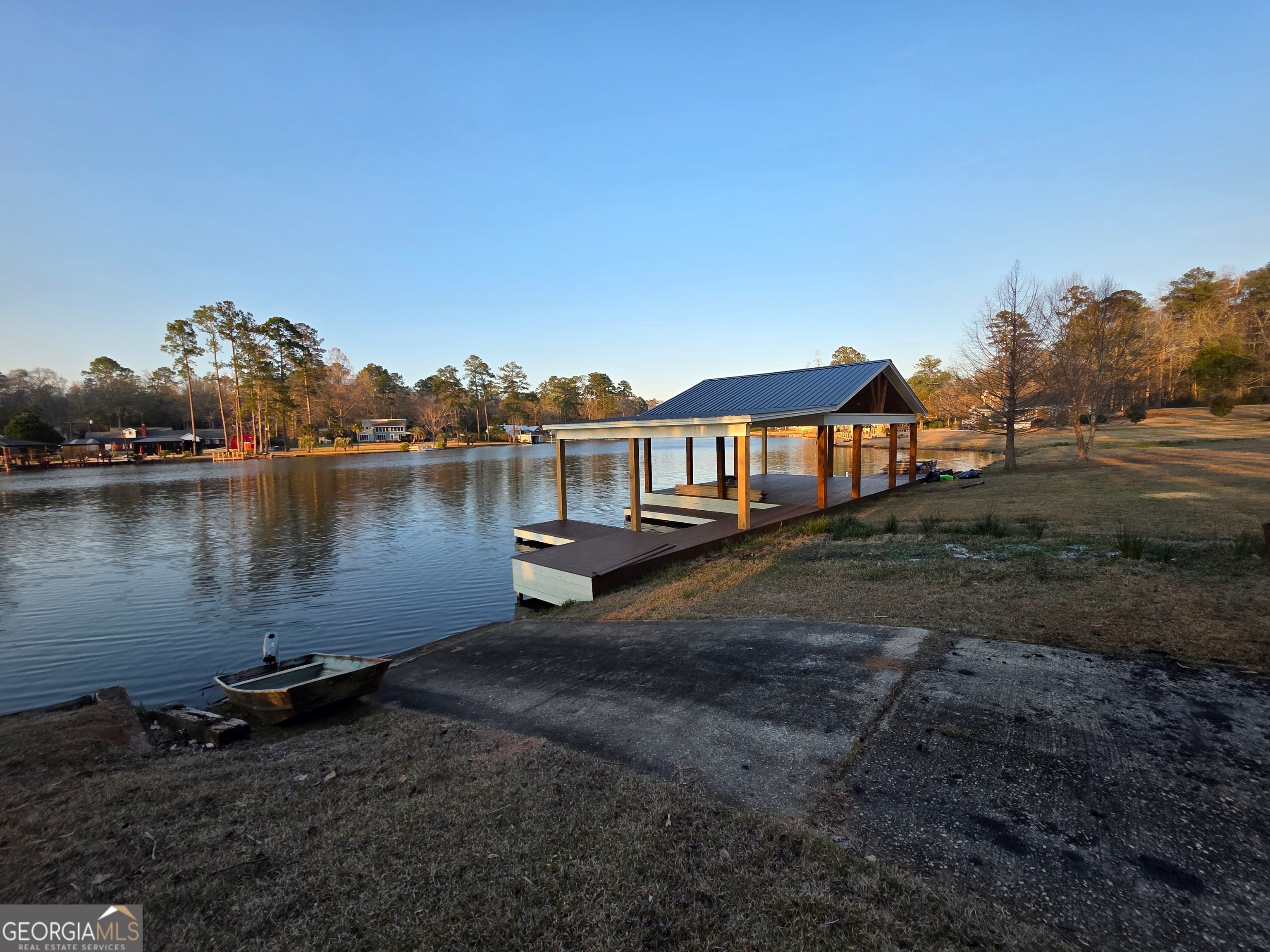 If you are looking for lakefront living at its best, this property is for you! Welcome to 240 Rawley Rd in Americus, GA, a rare lakefront property on Lake Collins offering the perfect blend of natural beauty, thoughtful upgrades, and a septic tank already installed. Enjoy peaceful water views and direct lake access, complete with a covered dock for your boat and pavilion ideal for relaxing or entertaining by the water. The pavilion showcases cedar posts and a cedar ceiling, creating a warm, rustic feel, and is enhanced with recessed lighting and installed ceiling fans for comfort and ambiance. The structure is ready to be wired, allowing the new owner to easily customize additional electrical features as desired. Whether you're looking for a private retreat, a weekend escape, or the perfect site to build your dream lakefront home, this property delivers the setting and features to make it happen. Enjoy mornings on the lake, afternoons in the shade of the pavilion, and evenings taking in the peaceful surroundings.