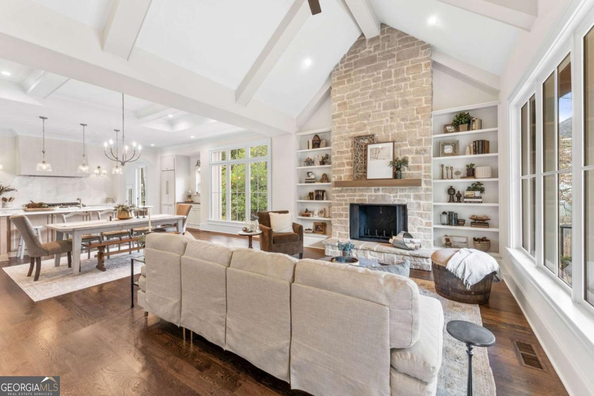 - Interior FeaturesBeamed Ceilings, Bookcases, Double Vanity, High Ceilings, In-Law Floorplan, Master On Main Level, Pulldown Attic Stairs, Vaulted Ceiling(s), Walk-In Closet(s)