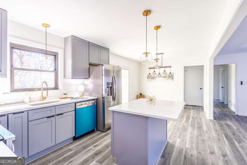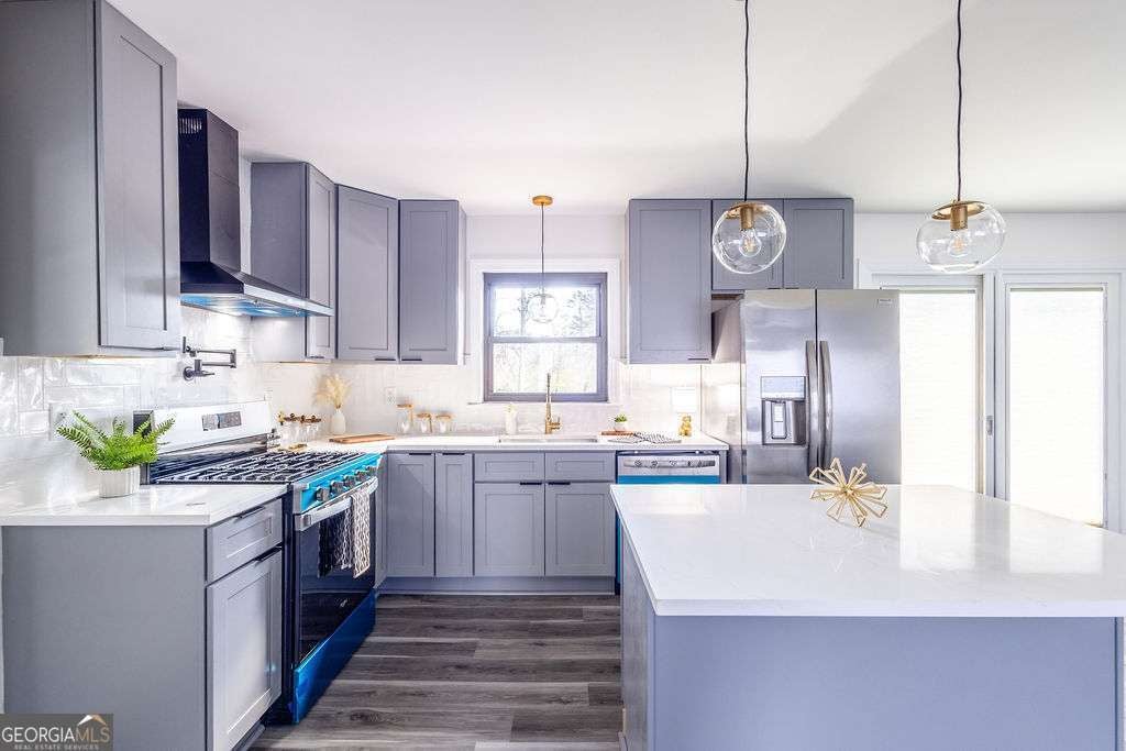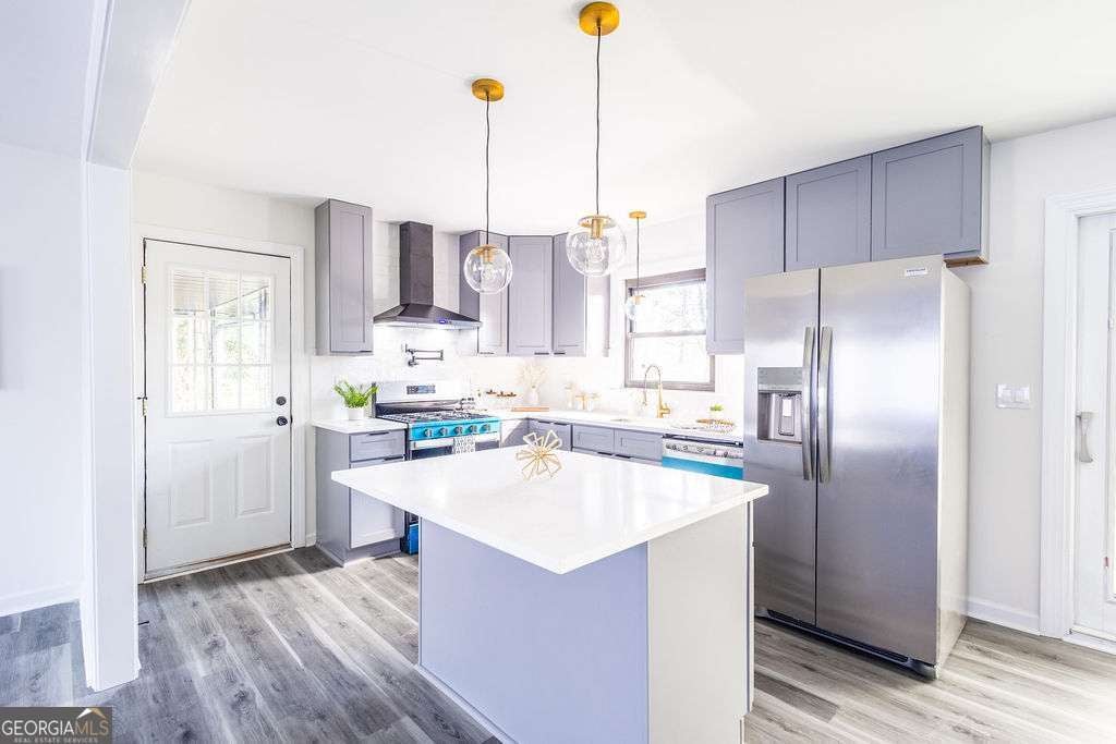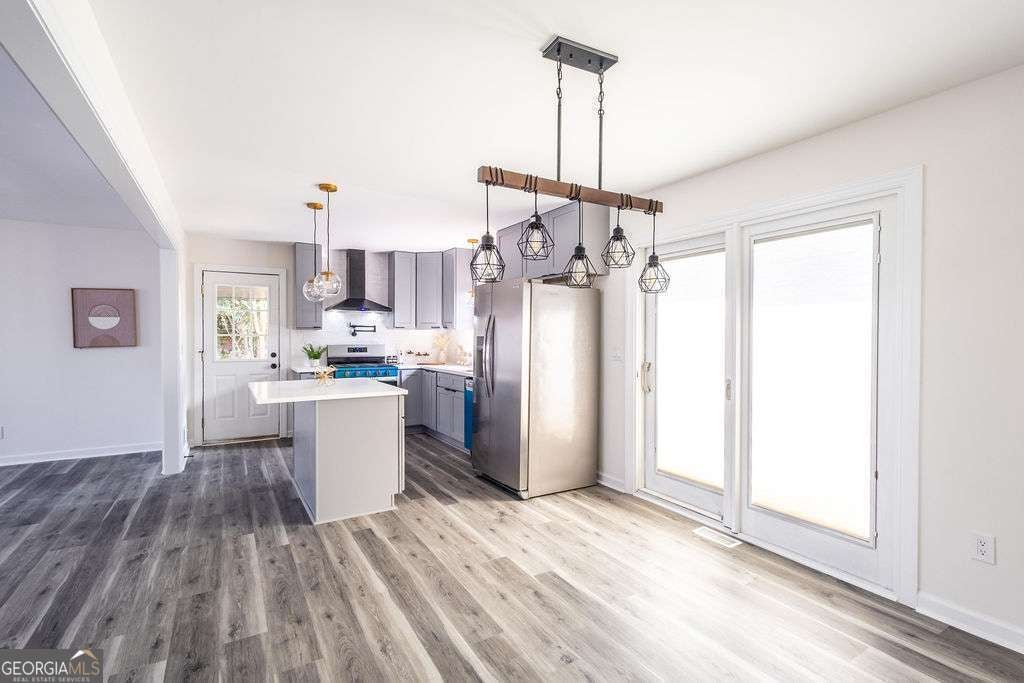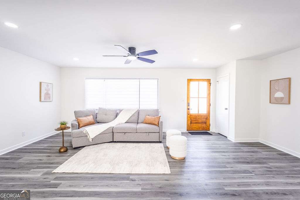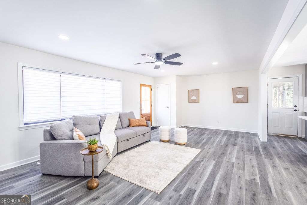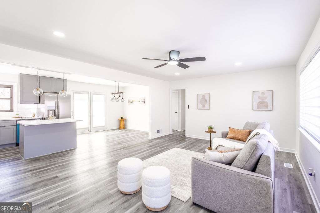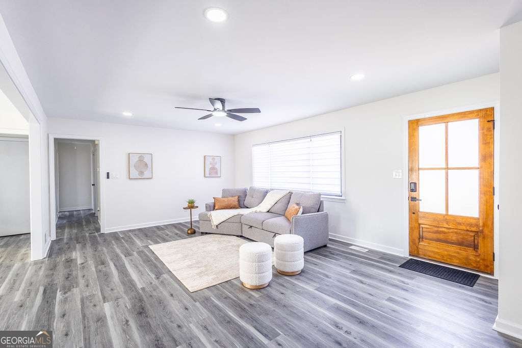 Welcome to this exquisitely renovated four-sided brick ranch nestled in a quiet neighborhood in Marietta. Thoughtfully redesigned with elevated finishes and timeless style, this home offers the perfect blend of sophistication and comfort. Inside, you'll find three spacious bedrooms and two beautifully remodeled bathrooms designed with relaxation in mind. The stunning chef's kitchen showcases shaker cabinetry, quartz countertops, stainless steel appliances, and modern finishes that flow seamlessly into the open-concept living area-ideal for entertaining. Luxury vinyl flooring extends throughout, creating warmth and continuity. Step outside to a beautifully landscaped, oversized lot featuring an updated back deck and a covered patio that leads to the finished basement-perfect for additional living, recreation, or entertaining space. Major upgrades, including a new roof and gutters, provide peace of mind and efficiency. Conveniently located near shopping, dining, parks, schools, and commuter routes, this Marietta gem offers refined living in an exceptional setting.