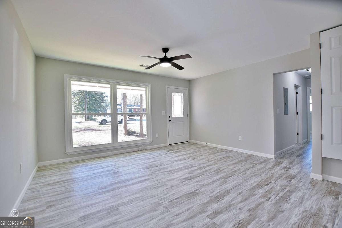 This home has been taken all the way down to the studs and completely rebuilt! Everything is new - including the roof, energy-efficient windows with safety stops, updated wiring, sheetrock, HVAC system, and water heater. Inside, you'll find beautiful LVP flooring, modern lighting, new interior doors with stylish black hinges and doorknobs, and remote-controlled ceiling fans. The kitchen features brand-new cabinetry with solid surface countertops, while the bathrooms have been fully updated with a new tub, toilet, and vanities. Additional upgrades include added insulation in both the exterior walls and attic for improved energy efficiency. Natural light pours in throughout the home, creating a bright and welcoming atmosphere. Enjoy a full dining room, a covered back porch perfect for relaxing or entertaining, and a convenient one-car carport. With everything brand new from top to bottom, you can enjoy low maintenance living for years to come! Don't miss it!