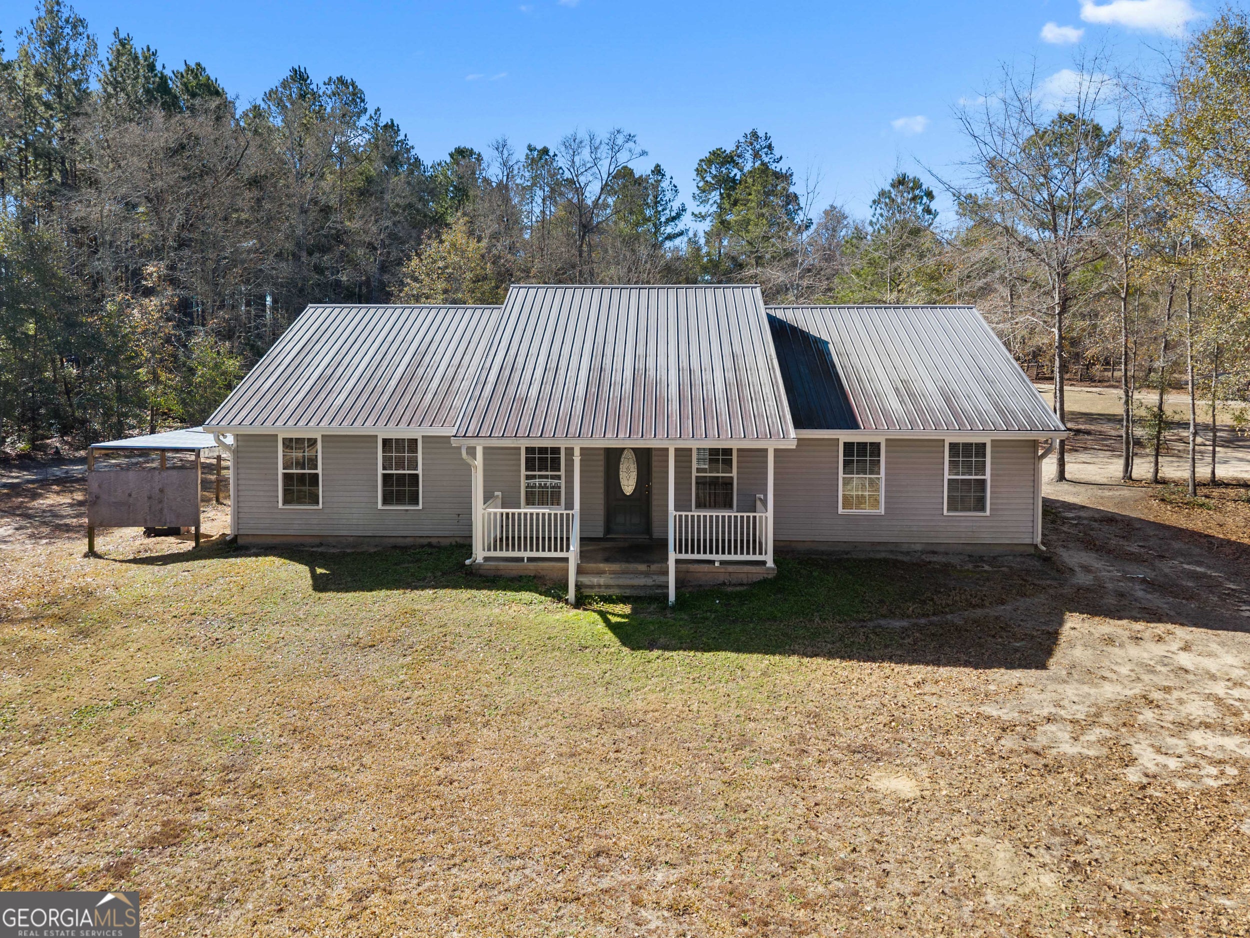 Welcome to peaceful country living with the convenience of town just minutes away! This charming 3-bedroom, 2-bath is nestled on 3 acres in a prime location with easy access to Statesboro and Downtown Sylvania. Enjoy relaxing mornings and quiet evenings on the inviting front porch! The kitchen offers ample cabinetry, including a pantry cabinet, along with a stainless steel stove and dishwasher. The breakfast area provides a bright and cozy space overlooking the living area making it great for entertaining. The split-bedroom floor plan ensures privacy, with a generously sized primary suite featuring an ensuite bath, double vanity, and his-and-hers closets. Two additional bedrooms and a second full bath are thoughtfully positioned on the opposite side of the home. A spacious laundry room with extra cabinetry adds convenience and storage. With room to roam outdoors and comfortable living inside, this property offers the perfect blend of space, function, and location. Schedule your showing today and experience the best of country living with town amenities just a short drive away!