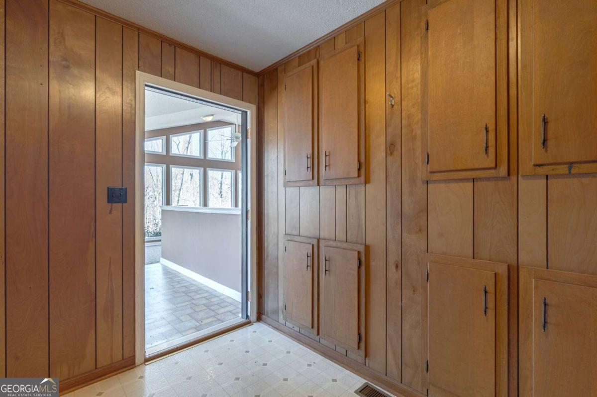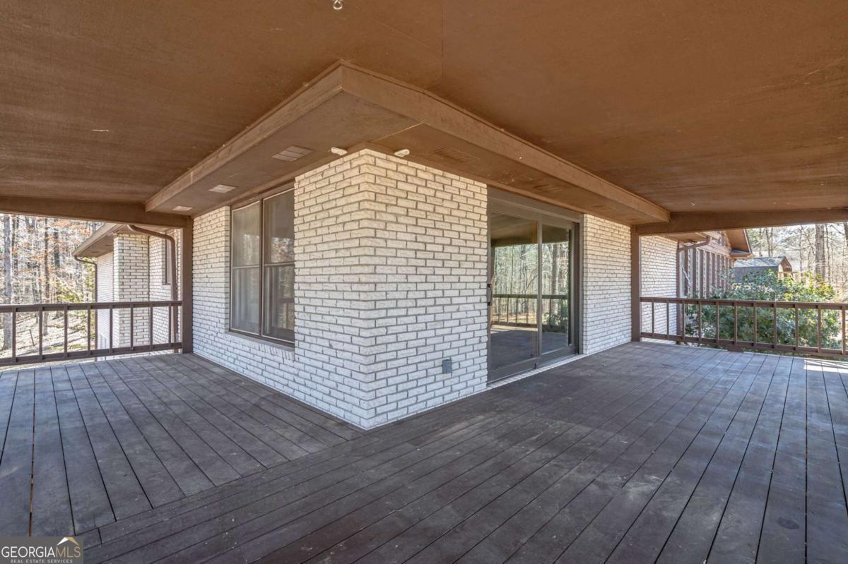 Nestled on over 10 private acres in desirable Watkinsville, this unique property overlooks the beautiful Brittain Estates lake and is surrounded by mature woods for exceptional privacy. The main level features 3 bedrooms and 2.5 bathrooms, highlighted by a massive living room with vaulted ceilings and floor-to-ceiling windows that fill the home with natural light and showcase peaceful lake and wooded views. A blend of 1970s architectural charm and updated finishes creates both character and comfort throughout. The terrace-level includes a fully equipped 1 bedroom, 1 bathroom apartment with kitchen, laundry, and private exterior entrance-ideal for guests, multigenerational living, or rental potential. Enjoy outdoor living from multiple decks and porches, along with ample space inside and out. Additional features include a two-car garage, storage buildings, new roof, smart HVAC system, 30K generator with buried 500 gallon propane tank to power it, and new water filtration system. Also qualifies for conservation use, reducing property taxes! A rare opportunity for privacy, space, and lakefront living in Oconee County.