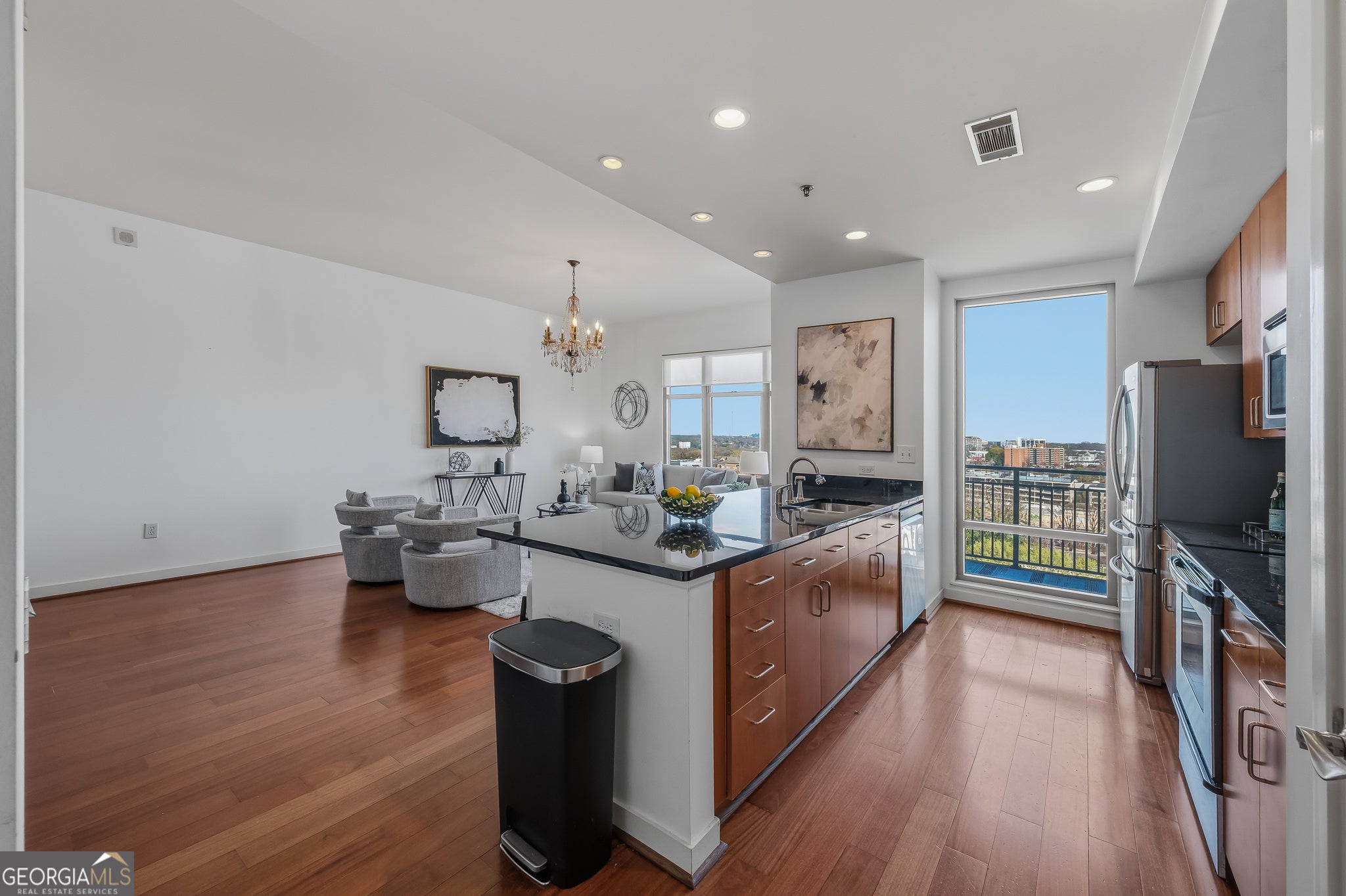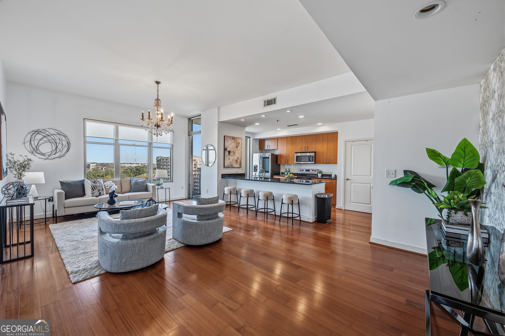 Unit 1011 at The Reynolds offers the rare combination of corner exposure, skyline views, and everyday livability in the heart of Midtown's SONO district. With Northern and Eastern exposures, this residence captures stunning city views and beautiful sunrise light, all from a floor height that feels elevated yet comfortably grounded. The updated interior features abundant natural light throughout, a thoughtfully designed kitchen with bar seating that keeps conversations flowing while you cook, and the convenience of an in-unit washer and dryer. The corner positioning enhances privacy while maximizing window lines and brightness. Located just south of North Avenue along Peachtree Street, residents enjoy immediate access to Midtown, the Fox Theatre, Ponce de Leon Avenue, and Piedmont Park. The Atlanta BeltLine sits just to the east, and Emory Midtown Hospital is across the street, making this an ideal home for medical professionals and city-centered lifestyles alike. With major events like the FIFA World Cup positioning Midtown as one of Atlanta's most dynamic destinations, this location offers both immediate enjoyment and long-term upside. Whether you're seeking a primary residence, a Midtown pied-a-terre, or a strategic investment in one of Atlanta's most walkable corridors, Unit 1011 delivers light, views, and location in equal measure.