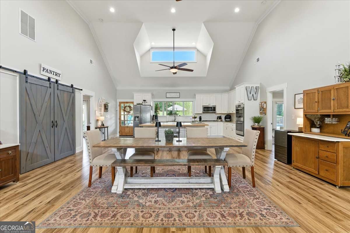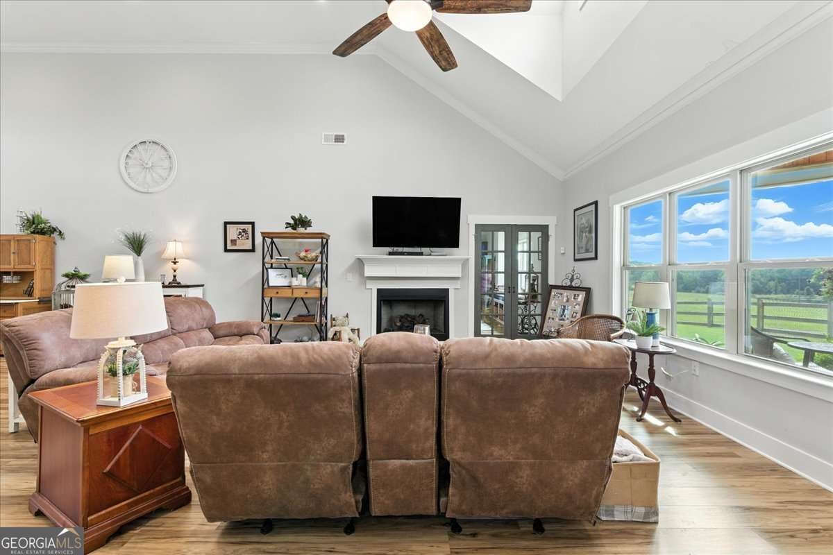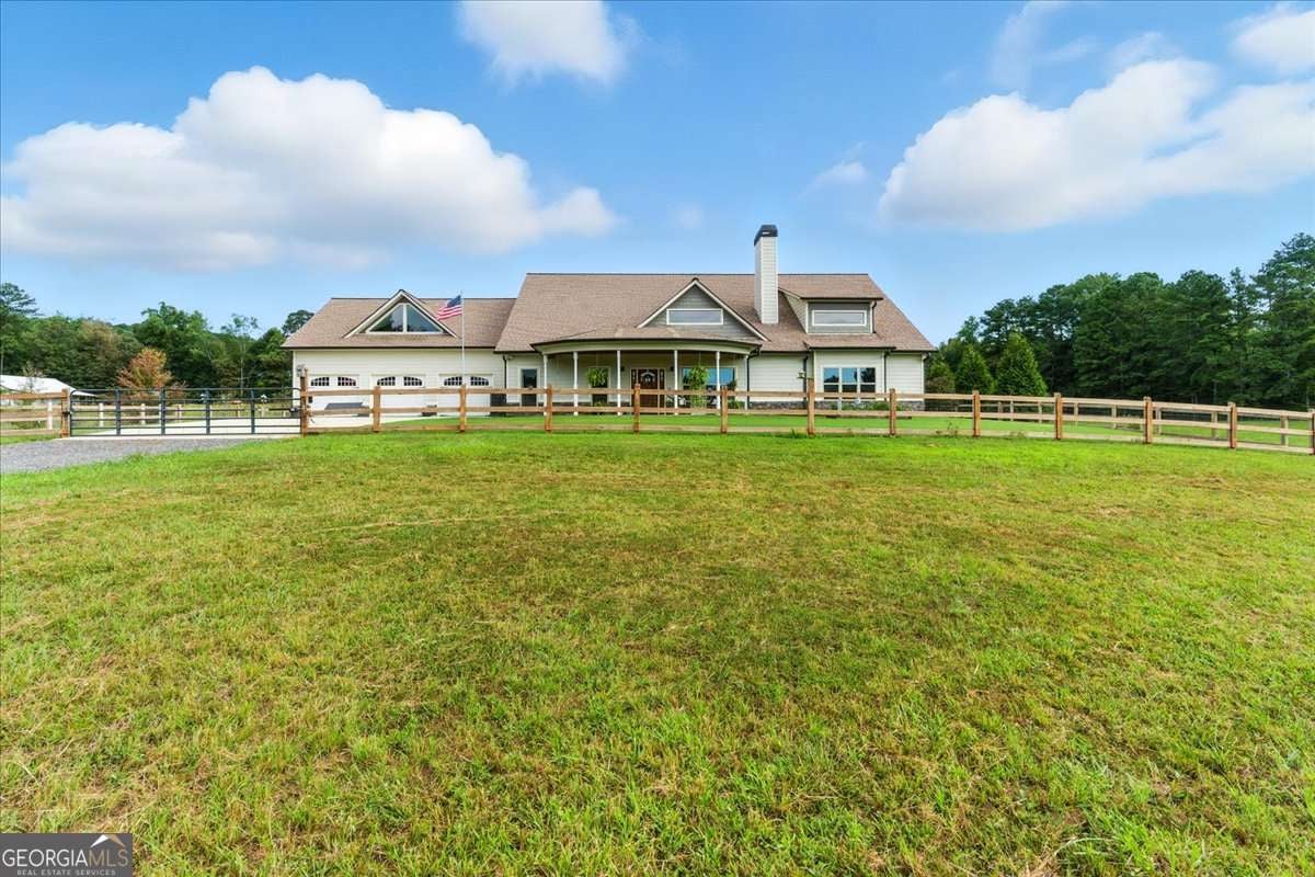 Tucked away on 18.83 breathtaking acres, this extraordinary turnkey mini farm isn't just a home, it's a lifestyle. From the moment you arrive, the fully fenced grounds, electric gated entry to the home, and serene landscape set the tone for something truly special. This custom stepless ranch features four bedrooms, four and a half baths, and an ideal blend of refined living and functional farm charm. Every corner has been thoughtfully designed to bring comfort, beauty, and practicality together in one remarkable estate. The property is completely enclosed with thick tinsel fencing and electric gates surrounding the home, pool, koi pond, and hot tub for privacy and security. A well-equipped barn boasts four stalls plus heated and cooled living quarters on a separate septic system, perfect for guests, farm staff, or even additional income opportunities. The grounds are enhanced by a mature orchard of apple and pear trees and a thriving garden, creating a peaceful, self-sustaining haven. Step inside and prepare to be impressed. Soaring 22-foot vaulted ceilings with custom skylights bathe the open floor plan in natural light. The gourmet kitchen is an entertainer's dream, featuring a large center island, prep sink, and a unique pass-through window to the back porch. A three-car pull-through garage opens to a well-planned drop zone with a laundry room, utility sink, oversized coat closet, and expansive pantry. The primary suite is a true retreat, with vaulted tray ceilings, dual large closets, and a spa-inspired bathroom offering double vanities, a jetted soaking tub, and a fully tiled rain shower. Two additional main-level bedrooms include spacious closets and private en suites, while the upstairs bonus room (or fourth bedroom) provides its own full bath, ideal for guests or recreation. Work from home in style with the expansive home office, featuring coffered ceilings, custom built-ins, and a charming window bench overlooking the pasture. Outdoor living is just as impressive, with tongue-and-groove pine ceilings on both porches, a five-year-old saltwater pool, a fully stocked koi pond, and an entertainmentready patio perfect for gatherings. Designed for ease and elegance, this property is fully prepared to accommodate horses, livestock, or personal agricultural pursuits. It's the perfect fusion of modern luxury and country charm, offering a one-of-a-kind opportunity to own a mini farm estate that truly has it all.
