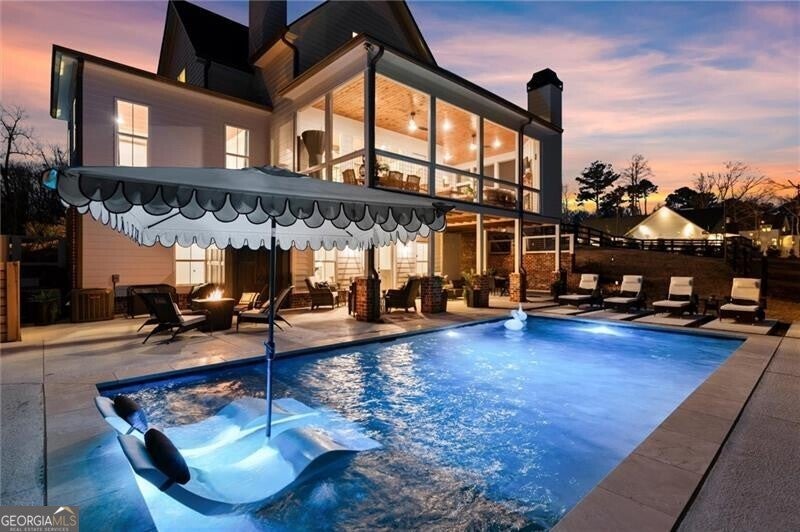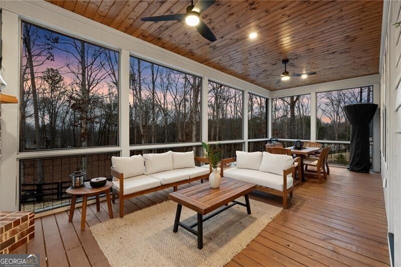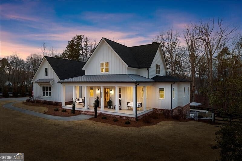 Welcome to 1675 Hornage Road, 4 Bedroom/ 4.5 Bath + Flex Room, Finished Terrace Level and POOL!! Perfect two acre rectangle offers ample space to build a workshop or barn right off the driveway on the back acreage. Welcome to this custom built beautiful farmhouse by JC Burgess in sought after Ball Ground! The rolling hills, pastoral settings and landscape on your drive home are absolutely breathtaking! Set on two acres with sitting porches all the way around, this home features the Primary Suite on Main, 2 BR/ 2 BA Upstairs + Flex Room, 1 BR/ 1 BA Terrace Level. Enjoy a large two acre lot with a 4-board and wire fenced backyard, this custom built home also features a 3-car side entry garage with grand storage about and the ability to build in a future guest suite, hardwood floors throughout the main level, gourmet Kitchen, Family Room with brick fireplace, screened in porch with fireplace overlooking the pool, grilling deck, Primary Suite on main with spa bath, and so much more. Walk upstairs to two en-suite bedrooms and an oversized flex room with closet perfect for another bedroom, playroom, or office. The newly finished Terrace level features a family room with fireplace, a bedroom, full bath, kitchenette, separate office, pool/rec room and additional storage space. This Rec room welcomes you right onto the pool deck with a stunning 15x30 heated pebbletec saltwater pool with travertine coping, custom lighting and bubblers! And the convenience of another large covered porch and plentiful pool decking with plenty of space to enjoy friends, family gatherings or a quiet afternoon reading a book by your very own pool. Where the mountains are in the distance, and the shopping and restaurants, are a short drive, 1675 Hornage Road is nearly new with impeccable maintenance and offers the best of both worlds in an already built home that is truly turn key!