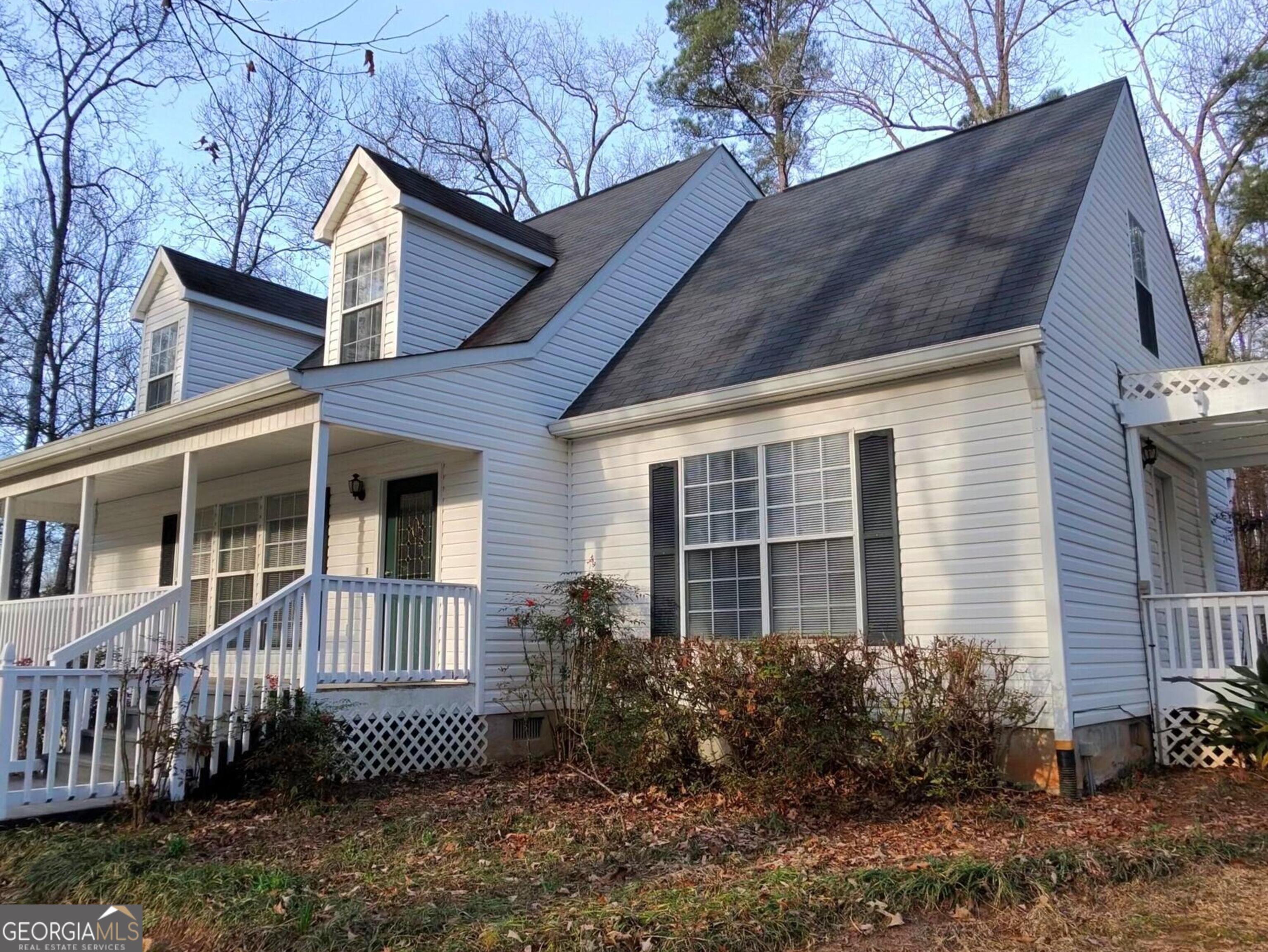 Secluded Cape Cod-style home tucked away on 7.79 acres beneath a beautiful canopy of mature oak trees, offering exceptional privacy with a long driveway and no visibility from the road-a true hidden retreat for nature lovers. This property is well suited for a small homestead, with space for chickens and farm animals, existing chicken coops, a garden area, and mature trees. A tiny rustic cabin adds charm and versatility, ideal for a studio, guest space, or creative retreat. Enjoy outdoor living from the rocking-chair front porch and screened back porch, overlooking peaceful grounds perfect for bird watching. Additional features include koi ponds, a large workshop, and a man-made shaded bird enclosure. Inside, the great room features vaulted ceilings, built-in bookshelves, and a fireplace with a gas log insert. The upstairs open loft includes built-in shelving and functions as a third bedroom, while the secondary bedroom offers two closets. The home also features fresh interior paint, enhancing its move-in-ready appeal. Major updates include a roof and HVAC approximately 4 years old and a new water heater. Move-in ready and full of character, this property offers a rare opportunity to create your own private sanctuary.