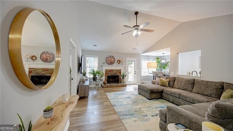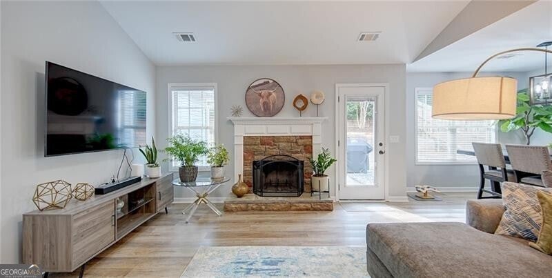 Moving to 85 Rand Way means stepping into a completely modernized retreat in the heart of Dawsonville, where contemporary style meets everyday comfort. The home features a stunning open floor plan anchored by a fireplace and a back wall of windows that floods the space with natural light. At the center of it all is a chef-inspired kitchen boasting quartz countertops, a sleek tile backsplash, and updated appliances, while the entire residence has been refreshed with new flooring, light switches, and designer fixtures. The private quarters are headlined by an oversized Primary Suite designed for relaxation, featuring a massive walk-in closet and a spa-like bathroom with a double vanity, soaking tub, and separate shower. Two additional bedrooms offer versatile space-currently showcased as a professional home office and a cozy den-and both bathrooms have been upgraded with quartz finishes and new sinks. Convenience is built-in with a dedicated laundry room equipped with a washer and dryer, plus plenty of utility storage for an organized lifestyle. Beyond the aesthetics, this property offers unmatched peace of mind with major 2024 updates, including a new roof and new garage door, alongside a newer HVAC system and ductwork. The exterior is equally impressive with a fully fenced-in backyard and patio, perfect for entertaining. Situated just minutes from the recreation at Main Street Park and the charm of Old Town Dawsonville, this move-in-ready home offers the rare benefit of no HOA fees. House is eligible for 100% finance USDA loan.