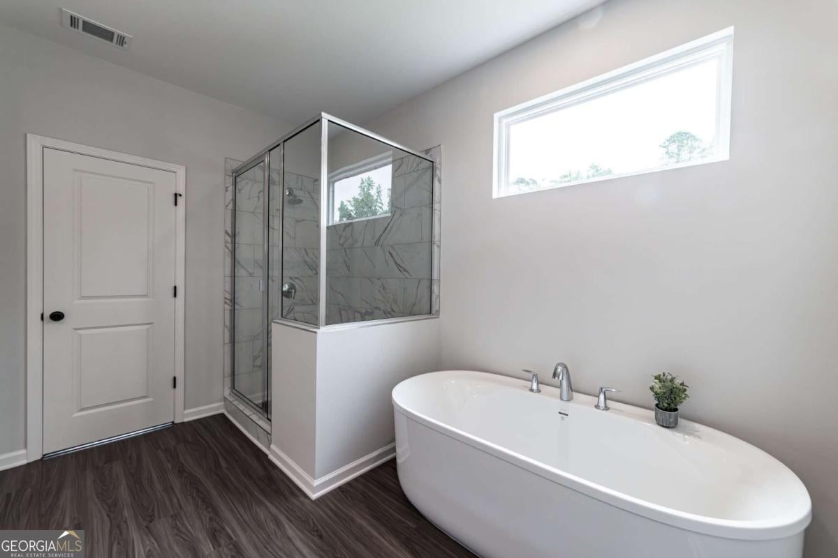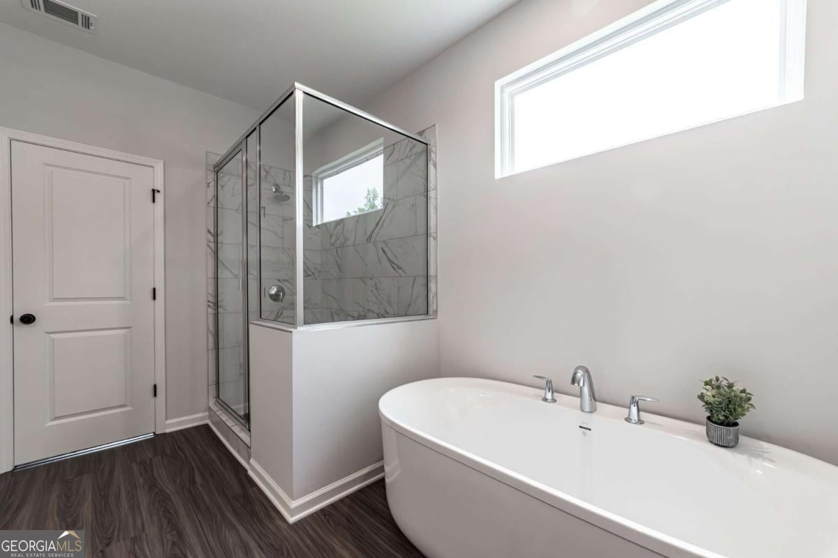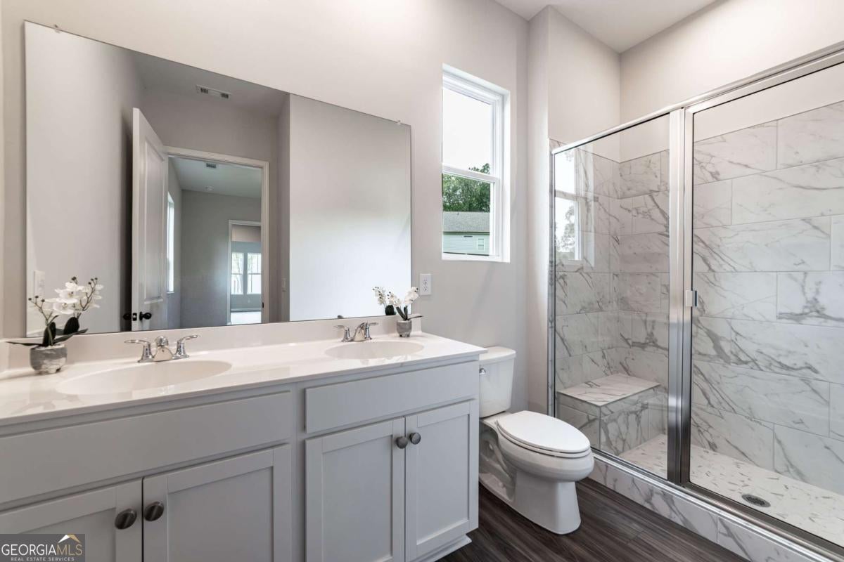 Welcome to 107 Cedar Brook Drive, Brand-new, never lived in, and utterly stunning, this two-story showpiece in Holly Springs showcases the expansive Kendall floor plan-the largest in the community-with a versatile layout offering 4 bedrooms and 3.5 baths, designed to impress from the moment you step inside. Sunlight pours through oversized windows, illuminating the open family room anchored by a sleek fireplace with remote control and a designer kitchen that is every entertainer's dream, complete with a massive quartz island accented by three striking glass pendants, crisp white cabinetry, and stainless steel appliances including the refrigerator. The main level offers a secondary owner's suite with a spa-inspired bath featuring dual vanities and a tiled shower, perfect for guests, along with a private study or office and a stylish half bath for convenience. Upstairs, a spacious loft provides endless flexibility for a media lounge, playroom, or second living space, while the oversized owner's retreat delivers the ultimate escape with a freestanding soaking tub, a separate tiled shower, dual vanities, and an oversized walk-in closet designed to impress. Two additional bedrooms share a thoughtfully designed bath with double vanities, and the laundry room is smartly placed on this level to simplify daily living. With abundant closet space, a private back patio, and a two-car garage, every detail of this home has been carefully crafted for style and functionality. Set within the sought-after Enclave at Edgewater, you'll enjoy the benefits of top-rated Cherokee County schools and an amenity-rich community. Just minutes from I-575, Downtown Woodstock, Canton Marketplace, Hickory Flat Commons, Sequoyah Park, and the exciting new Holly Springs Town Center with its upcoming amphitheater, dining, shopping, and entertainment, this address blends small-town charm with modern convenience. Sophisticated, versatile, and undeniably elegant, 107 Cedar Brook Drive is more than a home-it's a lifestyle waiting for its very first owner.