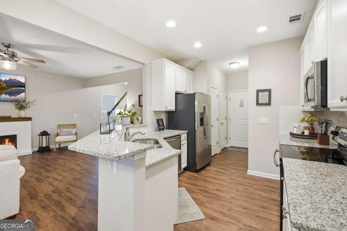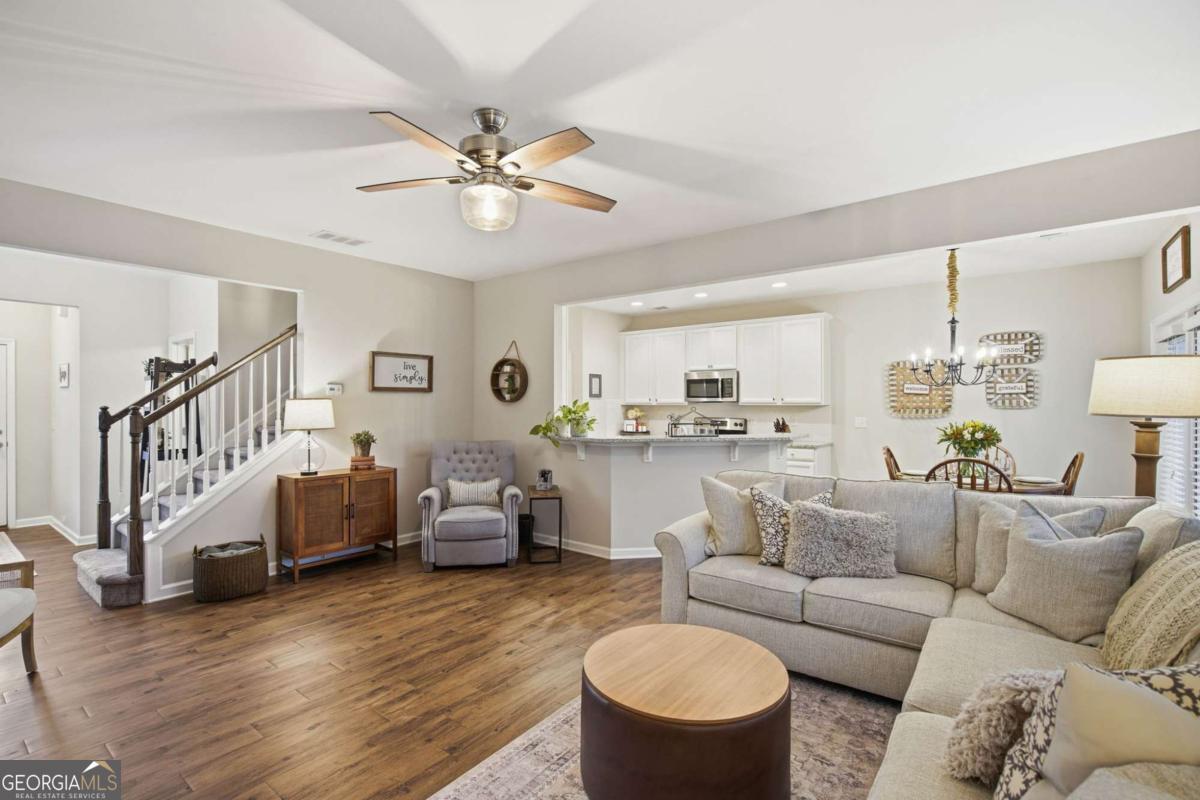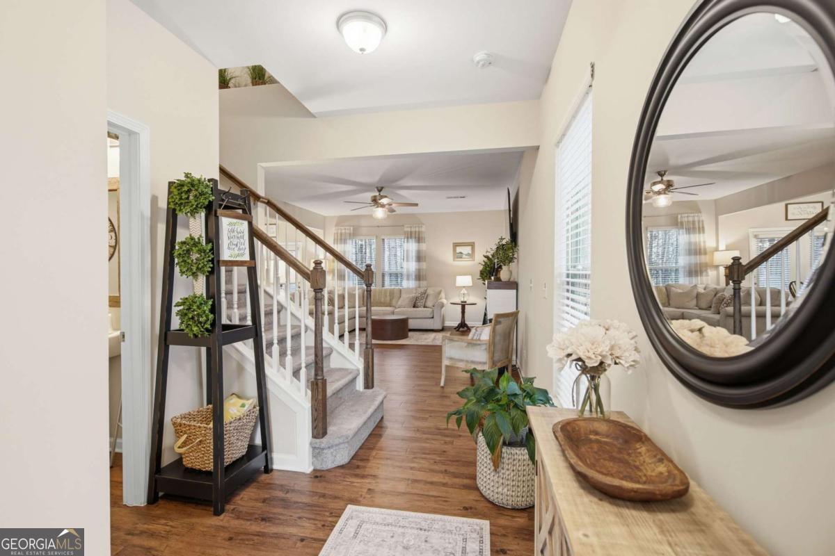 Welcome home to this beautifully maintained end-unit townhome ideally situated on a quiet cul-de-sac with a long private driveway and two-car garage - a rare find in the newest section of the neighborhood! Conveniently located with easy on-and-off access to GA 400, commuting is effortless while still enjoying the peace of a tucked-away setting. Inside, you'll find thoughtful updates throughout, including updated hardwood floors, an elegant open staircase, and upgraded light fixtures that add a fresh, modern touch. The kitchen features stainless steel appliances and flows seamlessly into the main living space, perfect for everyday living and entertaining. Upstairs bathrooms showcase ceramic tile flooring, and the primary suite features a seamless glass shower for a spa-like feel. Major systems offer peace of mind - the HVAC, roof, and water heater are only 8 years old, and the home has been meticulously cared for with HVAC inspections every six months. The location is hard to beat - just minutes to Costco, Northside Hospital, tons of shopping, dining, and everyday conveniences, all while being part of a well-established neighborhood. This home truly combines location, updates, and maintenance - making it completely move-in ready.