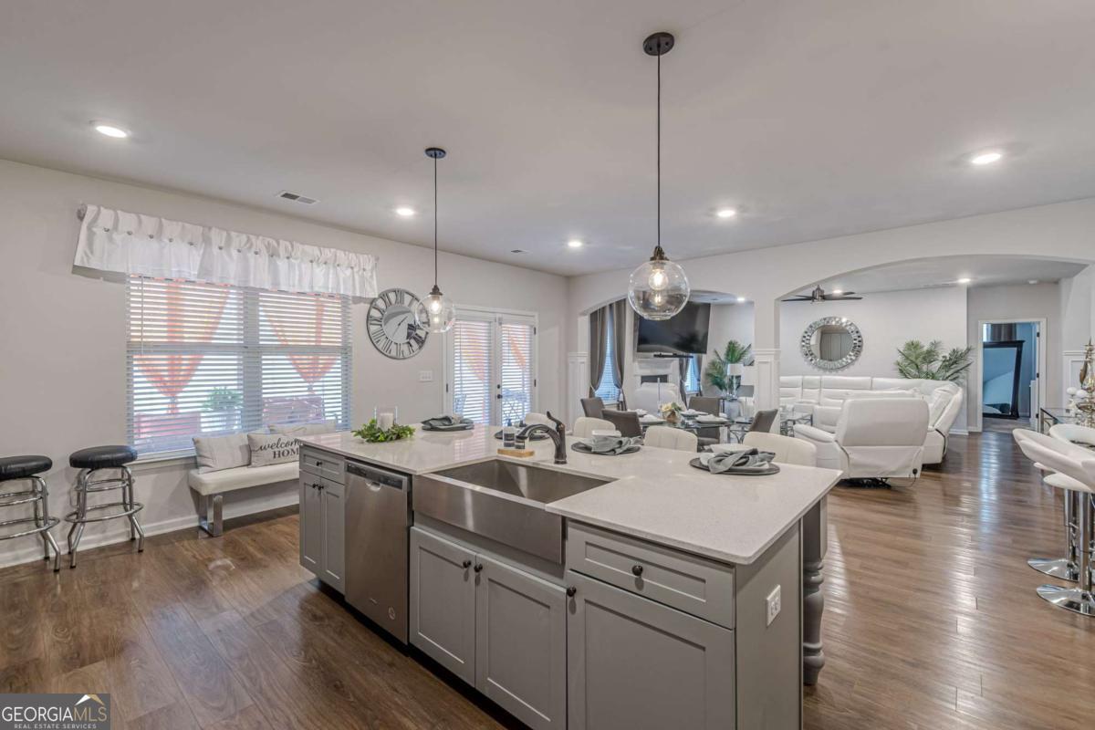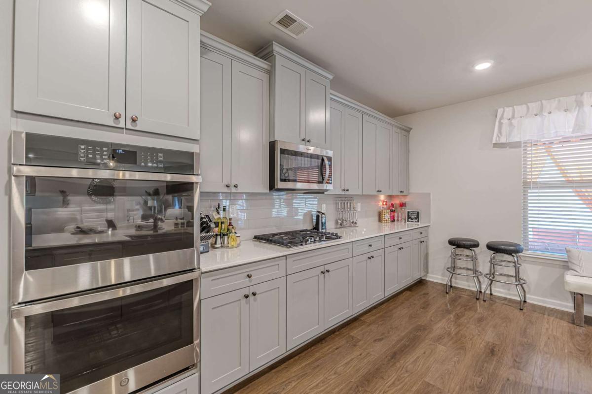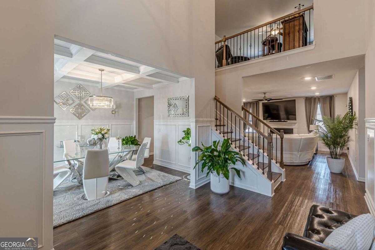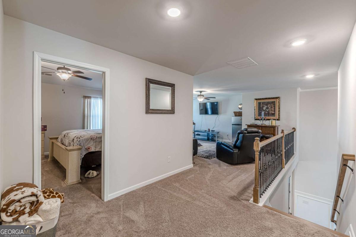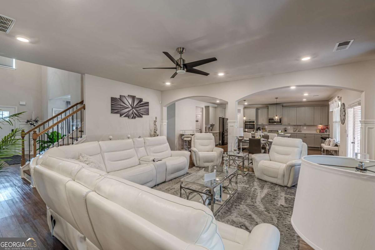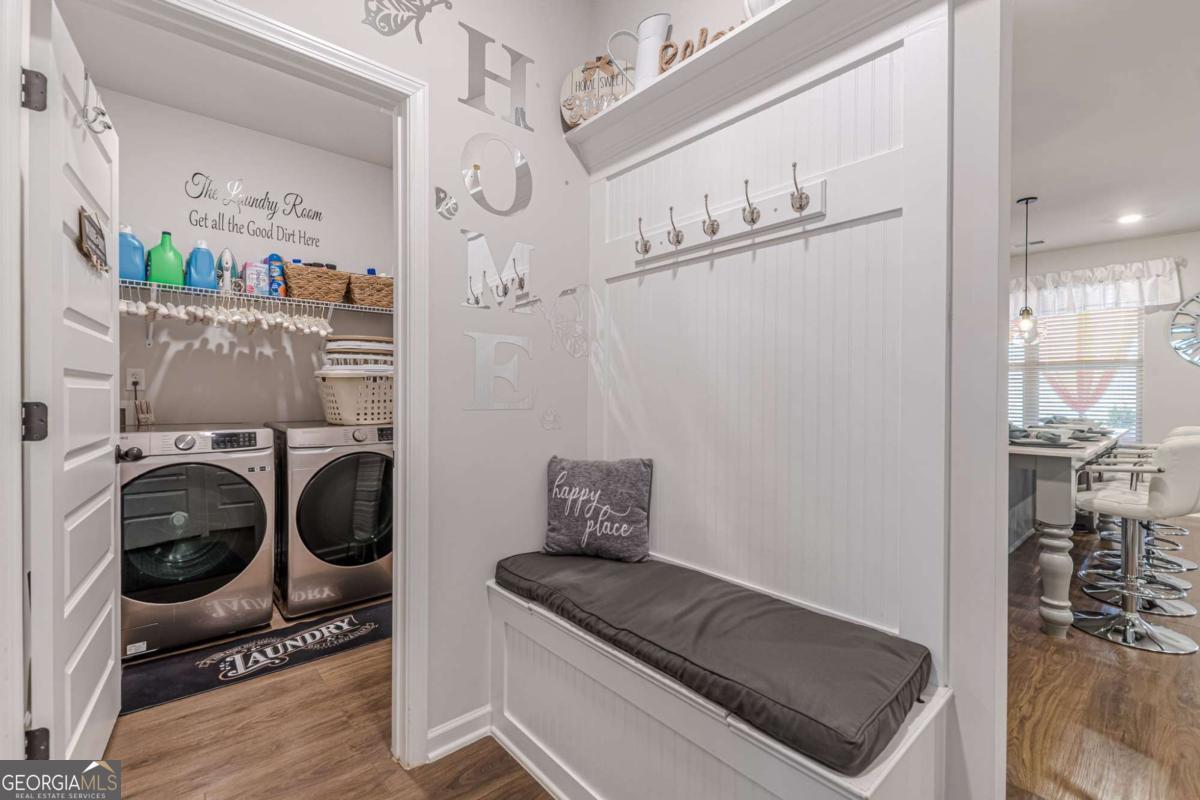 Step into refined comfort in this expansive 5-bedroom, 4-bath residence nestled within the secure gates of Rowland Place. Designed with both everyday living and effortless entertaining in mind, this thoughtfully crafted home delivers space, style, and function at every turn. From the moment you enter, you're welcomed by an elegant 2-story foyer and dining area that sets the tone for gatherings and special occasions. The heart of the home is the open-concept family room, anchored by a cozy fireplace and seamlessly connected to a chef-inspired kitchen featuring a gas cooktop, double ovens, an impressive center island, abundant cabinetry, a walk-in pantry, and a convenient mudroom drop zone. The main-level primary suite offers a private retreat, complete with a spa-style bath and a spacious walk-in closet designed for optimal organization. Upstairs, a generous loft provides the perfect flex space for movie nights, a playroom, or a secondary lounge area. Two secondary bedrooms share a well-designed Jack-and-Jill bath, offering both comfort and privacy for family or guests. This meticulously maintained home has never been occupied by smokers or pets, reflecting exceptional care and pride of ownership. Ideally situated near top-rated schools including Union Grove Middle and High, East Lake Elementary, and multiple childcare options, you'll also enjoy close proximity to shopping, dining, fitness studios, and Downtown McDonough. With convenient access to I-75 in multiple directions, commuting is simple and efficient.
