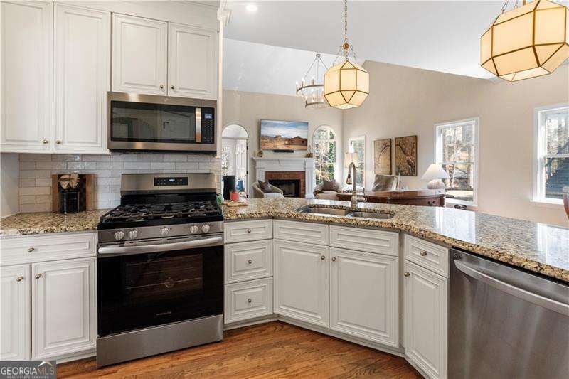 Welcome home to this beautifully updated 5-bedroom, 4-bath residence nestled in the highly sought-after golf course community of Eagle Watch in Woodstock. Built in 1994 and thoughtfully renovated, this is not your cookie-cutter home-it's filled with character, flexible living spaces, and meaningful upgrades throughout. The spacious primary suite on the main level is a true retreat, complete with a cozy fireplace and a recently renovated, luxury private bath designed for relaxation. The main level also features an additional bedroom and full bath-ideal for guests or multigenerational living-along with a bright and inviting sunroom just off the main living area, perfect for morning coffee, reading, or year-round enjoyment of the wooded views. Recent kitchen enhancements and updated lighting add fresh style and modern functionality while maintaining the home's warmth and charm. Upstairs, you'll find two generously sized bedrooms connected by a convenient Jack-and-Jill bath. The finished terrace level expands your living space with a private bedroom and full bath, a dedicated home office, and a generous bonus area perfect for a media room, playroom, or gym. Step outside to the screened porch and patio overlooking a peaceful wooded lot-your own private escape. Located in one of Woodstock's premier communities, residents of Eagle Watch enjoy access to a clubhouse, swim and tennis amenities, and an active golf lifestyle. Zoned for highly rated schools in the Cherokee County School District, this home offers not only space and updates, but also an exceptional lifestyle. If you've been searching for something with personality, space, and versatility in a prime location-this is it.