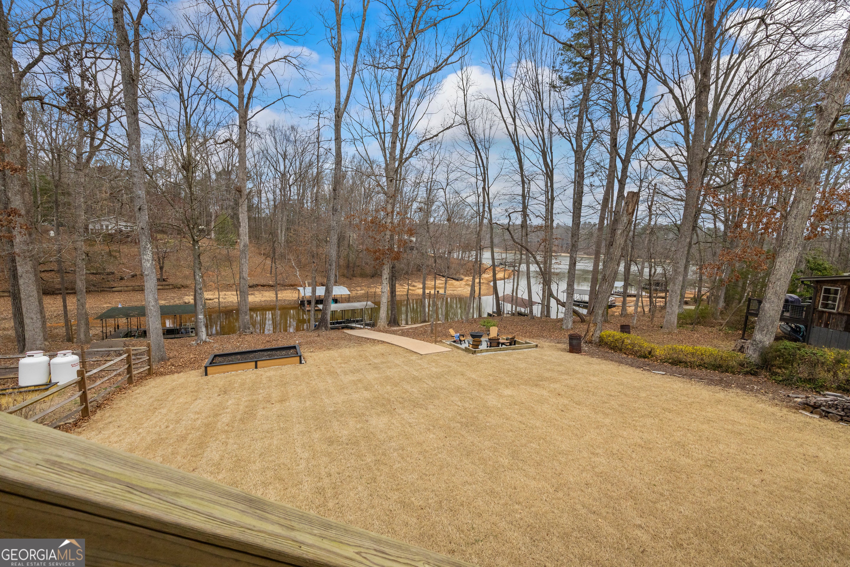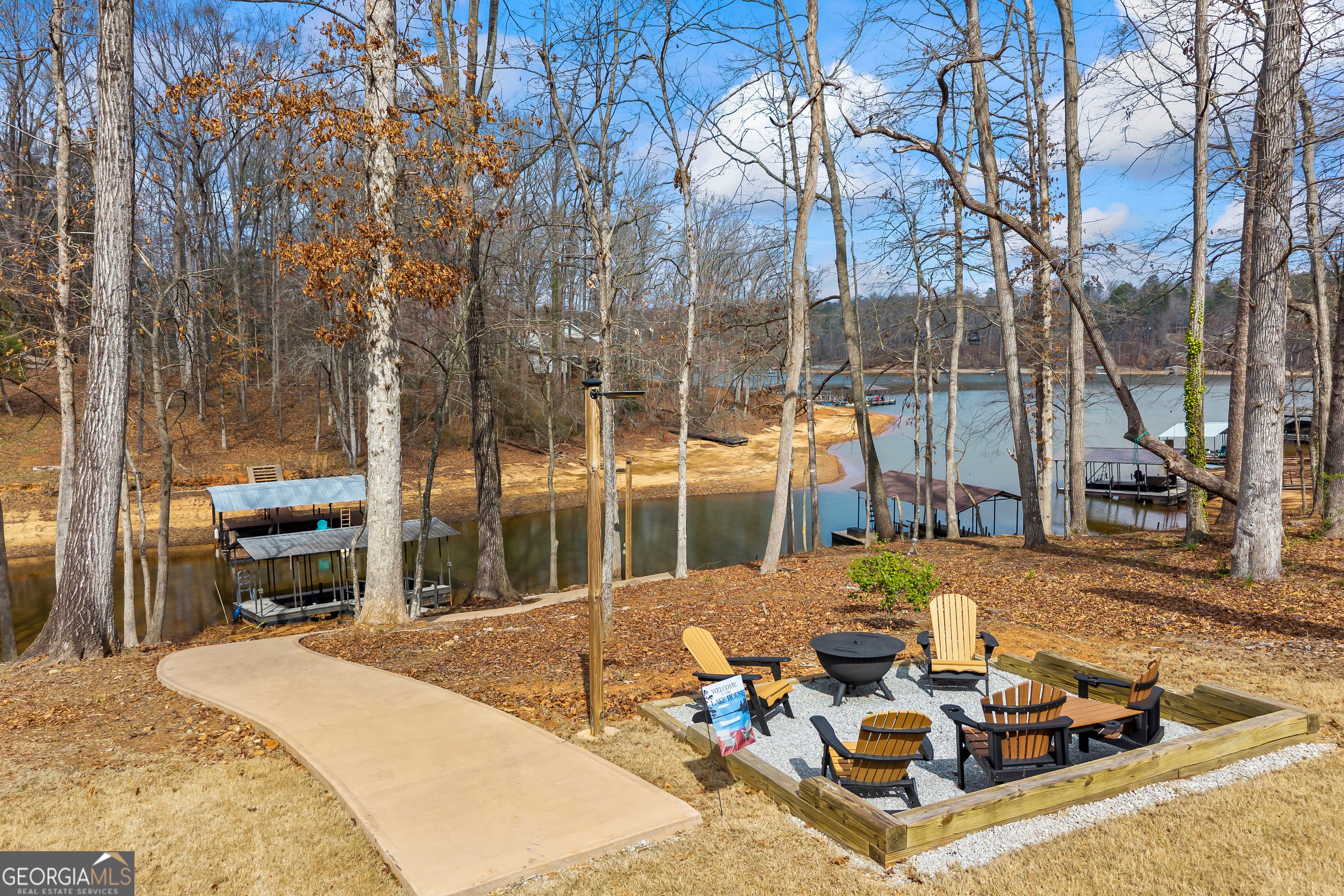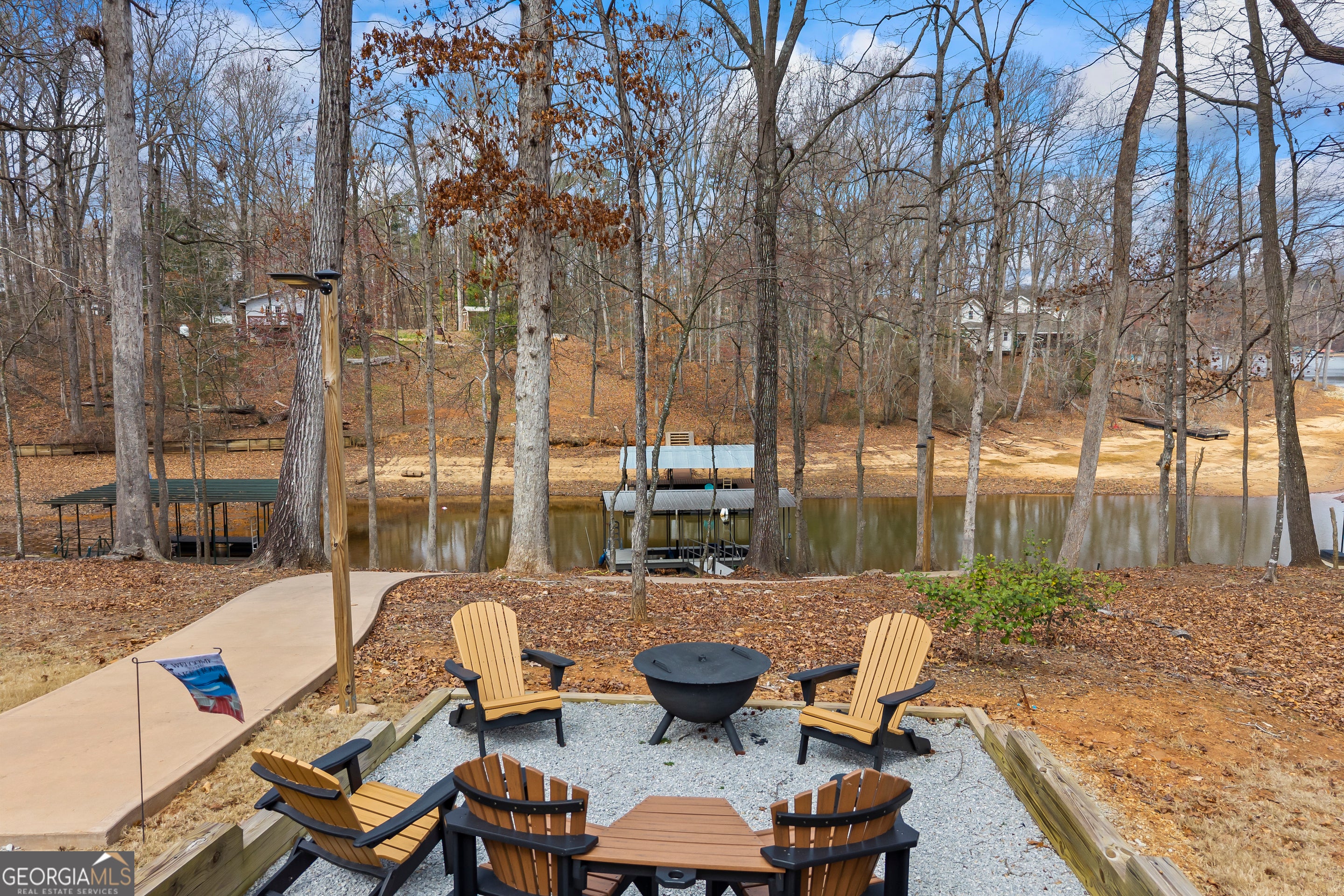 - Exterior FeaturesDock, Fire Pit, Garden, Lighting