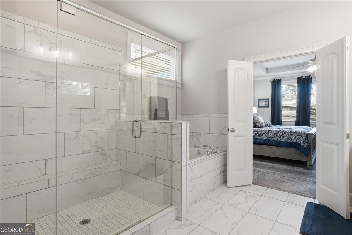 - Interior FeaturesDouble Vanity, Master On Main Level, Pulldown Attic Stairs, Separate Shower, Soaking Tub, Tile Bath, Tray Ceiling(s), Walk-In Closet(s)