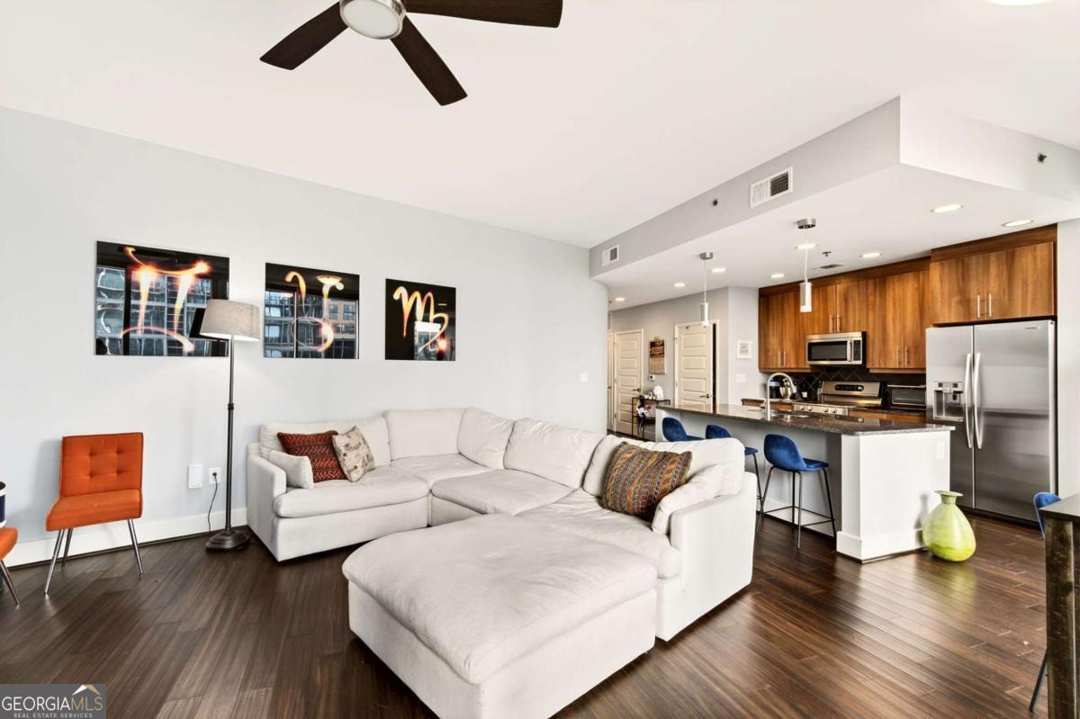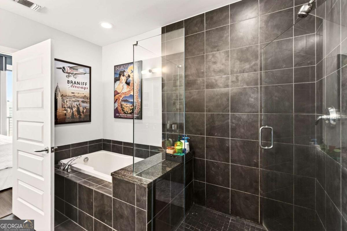 Welcome to refined city living at 1010 Midtown, one of the most sought-after addresses in Atlanta. Perched on the 9th floor, this beautifully updated 2-bedroom, 2-bath residence offers sweeping views over Peachtree Street, where Midtown's vibrant energy meets elevated privacy. Floor-to-ceiling windows flood the space with natural light by day and frame the city skyline at night, creating a dynamic backdrop for everyday living. The open-concept layout is designed for both comfort and entertaining, featuring a sleek, modern kitchen with premium appliances and a generous island that anchors the space. A split-bedroom floor plan provides ideal privacy, with a spacious primary suite offering a spa-inspired bath and ample closet space, while the second bedroom easily serves as a guest retreat or refined home office. Beyond the residence, 1010 Midtown delivers a full-service lifestyle with 24-hour concierge, secure access-controlled entry, gated parking, a rooftop saltwater pool with expansive lounge deck, grilling areas, a state-of-the-art fitness center, and stylish clubroom spaces for gathering. Step outside and you're immersed in the best of Midtown - moments from Piedmont Park, acclaimed dining, cultural institutions, and convenient transit access. With other units available in the building, this home stands apart for its tasteful updates, ideal 9th-floor positioning, and captivating Peachtree views - offering a polished, lock-and-leave lifestyle in the heart of the city.