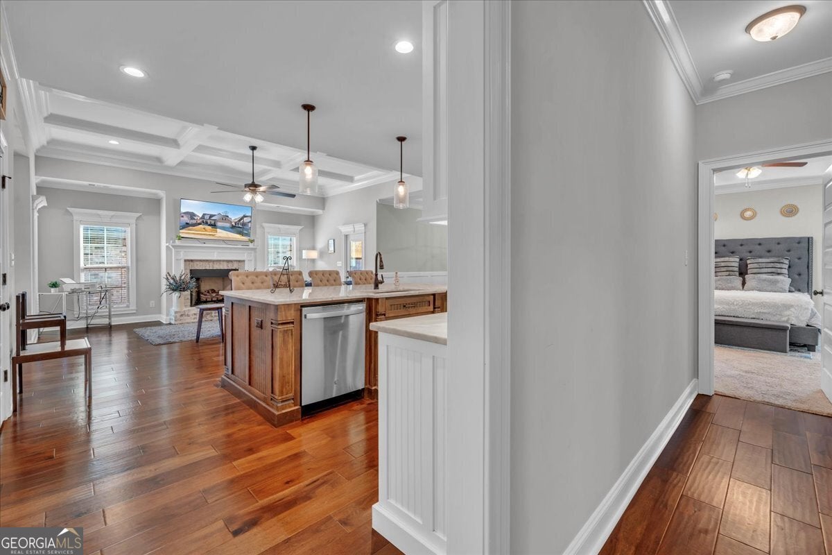 Welcome to this stunning 4BR/3BA, 2,621 sq. ft. home in Landings Pointe. At the heart of the home is a gorgeous, open-concept kitchen with a breakfast area, a gas oven and range combination, stainless steel appliances, natural stone countertops, an island that offers additional workspace and casual seating, and a pantry. In the main living area, a coffered ceiling adds an elegant touch to the open and inviting space. Step outside to the screened-in patio, perfect for cozy relaxation or entertainment. The owner's suite is designed for comfort and luxury, featuring dual vanities, a walk-in closet for all your storage needs, a tiled shower, and a separate bathtub for enhanced relaxation. Located just steps from golf courses and minutes from Robins Air Force Base. This home offers both convenience and lifestyle. Property is being sold AS- IS. Schedule your tour today!