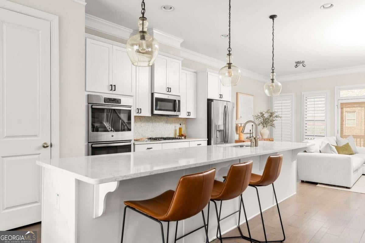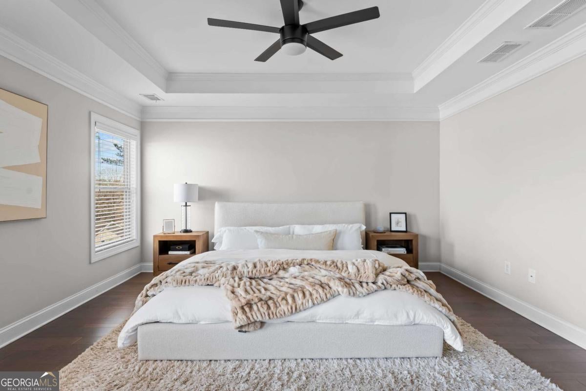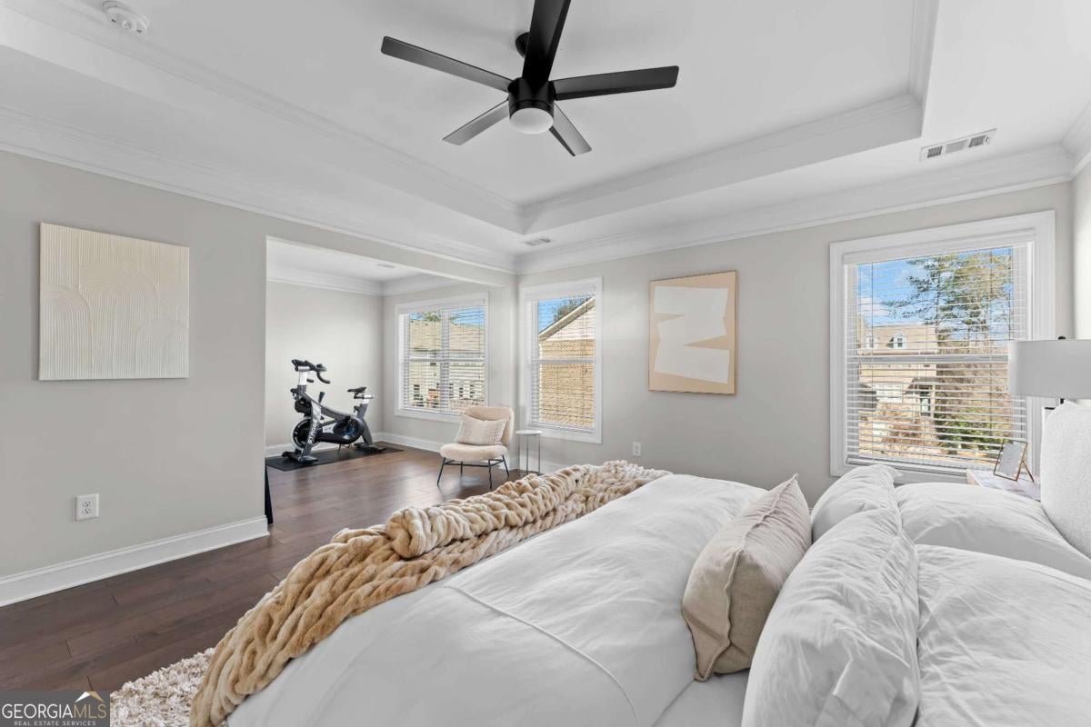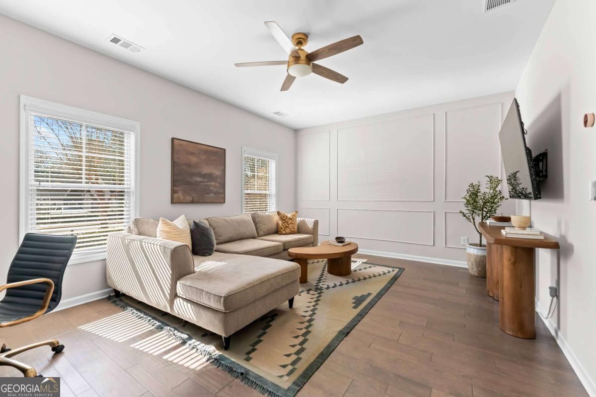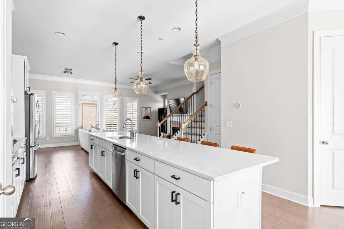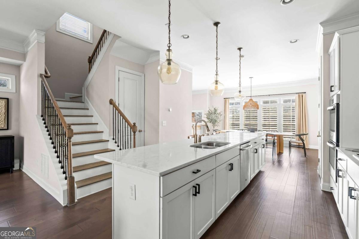 Welcome to a residence that feels straight out of the pages of Architectural Digest, where beautifully curated modern organic interiors meet timeless architecture and every detail reflects exceptional care and intentional design. This stunning end-unit townhome is perfectly positioned within a gated community, yet just moments from everything the city has to offer. Showcasing a classic brick exterior and elevated presence, the home offers a refined blend of classic architecture and contemporary comfort in the heart of Chamblee. Built in 2017 and meticulously maintained, it feels nearly new, with a level of organization and upkeep evident from the moment you enter. Hardwood floors flow seamlessly throughout, complemented by clean, airy spaces layered with warmth and a light-filled transitional design accented by natural textures. Designed for effortless entertaining and elevated everyday living, the main level features an open concept connecting the dining area, kitchen, and family room. Windows framed with bamboo shades and custom shutters create a warm yet polished atmosphere, enhancing the home's relaxed, California-influenced aesthetic. A bespoke kitchen showcases quartz countertops, abundant storage, an oversized island, stainless steel appliances, and a gas range, while the spacious family room, anchored by a fireplace, opens to a large back deck ideal for indoor-outdoor living. Upstairs, the primary suite is a true retreat with trey ceilings and a sitting area perfect for an office, reading lounge or wellness space. Relax in the spa-inspired bathroom featuring a double vanity, oversized shower with dual shower heads and an expansive walk-in closet with a custom California Closet system. A secondary bedroom with its own private bathroom, elegant picture frame molding and custom California Closet system, and a conveniently located laundry room, complete the upper level. On the terrace level, a third bedroom with full bath offers flexibility as a guest suite, media lounge or sophisticated home office. Thoughtful upgrades throughout include Pottery Barn kitchen pendants and dining chandelier, new ceiling fans, updated kitchen hardware and exceptional storage. A two-car garage with built-in storage and a mud bench complete the home. Enjoy an unbeatable lifestyle less than a mile from Downtown Chamblee's vibrant shops, dining and local favorites, with easy access to the Rail Trail, multiple parks and dog parks, Brookhaven, Buckhead, Dunwoody and major interstates. Community amenities include a pool, green space, dog run, a fire pit area and guest parking. With timeless, designer-inspired finishes and a soft modern organic aesthetic, this residence offers a rare blend of style, function and connection in one of the area's most desirable locations.