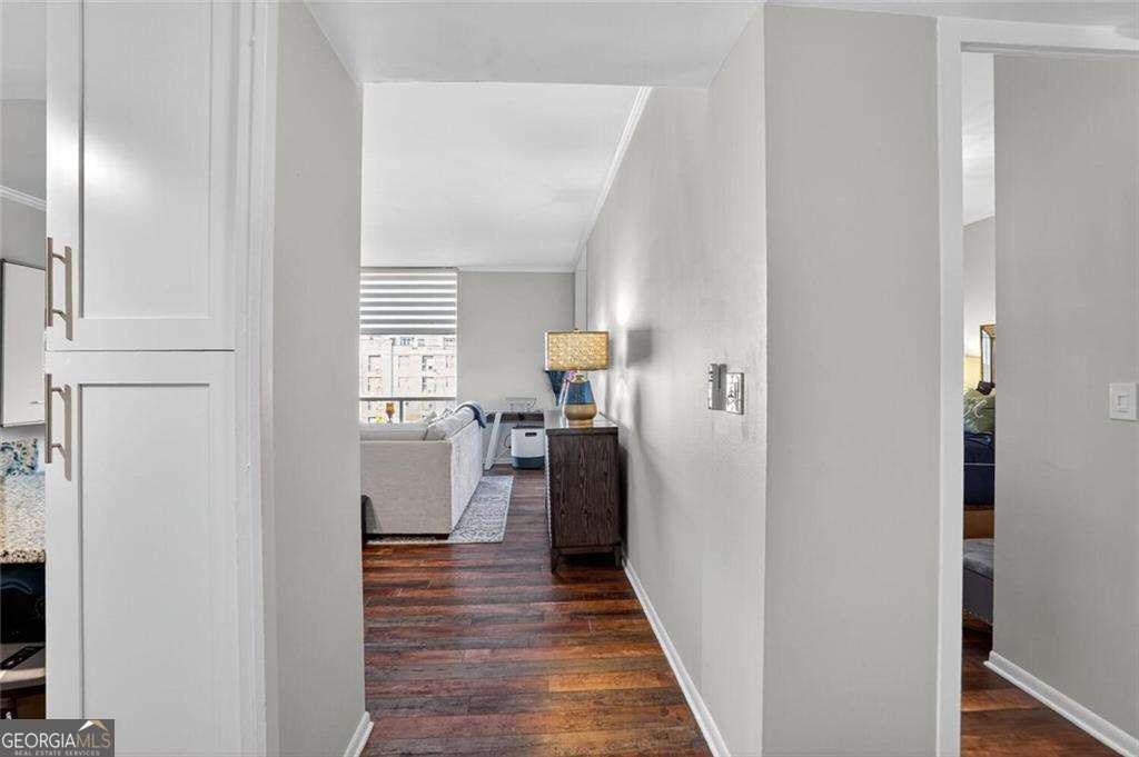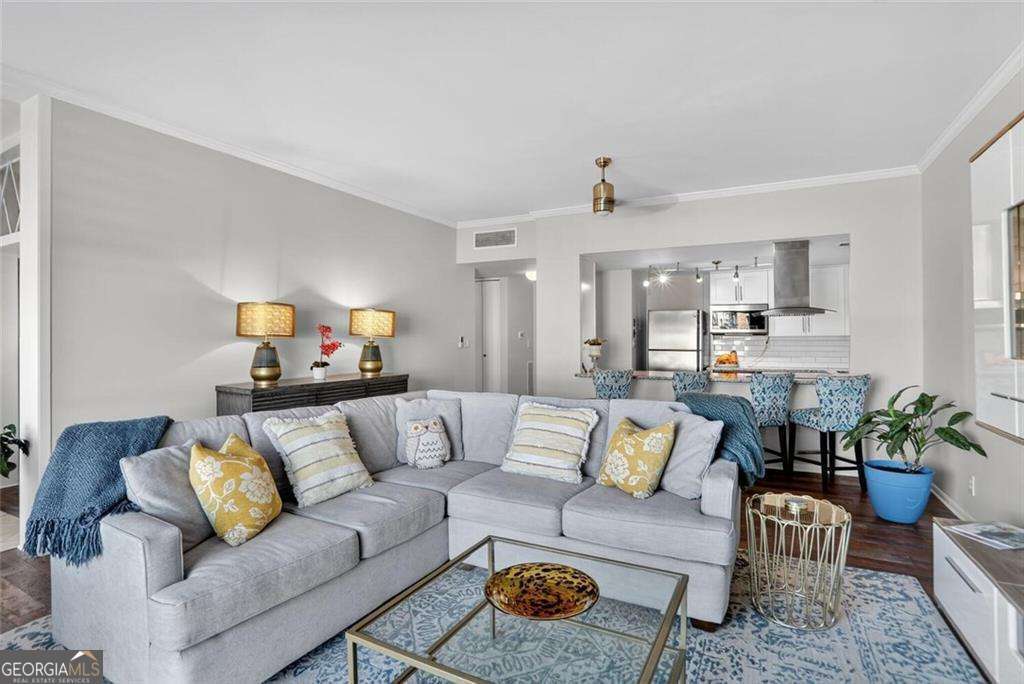 Welcome to Brookwood Park Condominium, a true Midcentury treasure nestled discreetly between Historic Ardmore Park and Collier Hills- one of Atlanta's most walkable and peaceful in-town neighborhoods. Built in 1962, this eight-acre community embodies authentic Midcentury Modern design with timeless details: original hand-poured terrazzo floors, brushed aluminum accents, and a tranquil koi pond greeting you at the entrance. Step inside this spacious, light-filled one-bedroom home, where floor-to-ceiling windows frame calming views of lush green space, creating a quiet retreat in the heart of the city. The open-concept living and dining area features vinyl plank hardwood floors, updated modern lighting, and a soothing, neutral palette. The renovated kitchen showcases sleek granite countertops, white shaker cabinetry, and stainless steel appliances, blending style and function for everyday living. The sunroom, enclosed with glass and drenched in natural light, offers a versatile bonus space-ideal for a home office, reading nook, or yoga area. The completely updated bathroom features a walk-in tile shower, modern vanity, and fixtures. Every detail has been thoughtfully refreshed, from new lighting and hardware to fresh paint throughout, making this home truly move-in ready. Love the look? The designer furnishings are available for purchase, making this a true turn-key opportunity. Move right in with no fuss and no setup required, everything has been curated for comfort, style, and convenience. Simply bring your suitcase and start living. Set on one of the largest residential parcels in Atlanta, Brookwood Park offers a rare balance of green space and urban convenience. Enjoy a full suite of amenities: a circular pool, for dog lovers the tennis courts have been converted to dog run, landscaped courtyard with grilling patio, and ample guest parking. The community also includes on-site management, additional laundry facilities, and secure gated access for peace of mind. Location, location, location - just one block to the Atlanta BeltLine and Tanyard Creek Park, with quick access to Bell Street Burritos, Mellow Mushroom, Tuk Tuk Thai, Osha Sushi, Egg Harbor Cafe, Starbucks, and more. Centrally positioned between Midtown and Buckhead, you'll enjoy effortless access to I-75/I-85, Georgia Tech, Georgia State, Emory, and the CDC. The HOA covers all utilities except plug-in electric vehicles and internet, and the community is pet- friendly, with lease permits available after one year of ownership (rental cap not yet met). Parking for this unit is unassigned and uncovered, with plenty of guest parking available. Experience the timeless charm of authentic Midcentury design paired with modern updates and unbeatable convenience-a peaceful oasis in the heart of Atlanta.