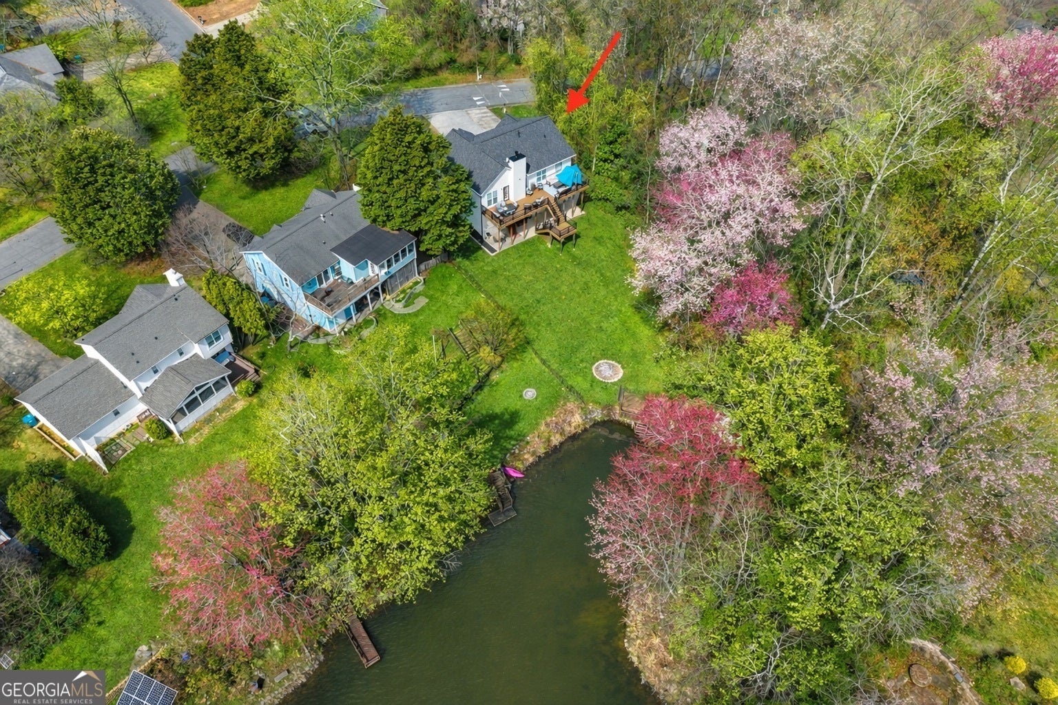 **Grass & Trees have been digitally enhanced to illustrate potential springtime landscaping*** LOCATION, LOCATION, LOCATION! Just in time for Spring! Ever dream of waking up each morning to still water views and end your evenings with sunset scenery on the lake? This is THE one. A rare opportunity to enjoy lakefront living in the heart of DULUTH, where convenience and peaceful privacy is all in one exceptional setting. Tucked along the water's edge, this nearly 2,700 sq ft, multi-split level home offers 4 bedrooms and 3 full bathrooms, designed for MULTIGENERATIONAL and flexible living. For those who value long-term ownership and major upgrades already completed, this home delivers: Exterior paint (2022), an expanded and widened driveway accommodating 6-7 vehicles (2022), new landscaping, exterior and driveway pressure washed, NEW roof and boots (2026), EXPANSIVE low maintenance composite deck (2022), Water heaters (2024 & 2025), HVAC systems (2019 & 2021), bedroom carpets (2022), 2 smart garage door openers with cameras (2022), 3 smart deadbolt locks (2022), fresh interior paint (2026), and lower-level dishwasher (2026). The lake floating dock is ready to be rebuilt. The main level features vaulted ceilings and an open-concept that overlooks the expansive deck which is the ideal setting for weekend gatherings, celebrations, and morning coffee. With a spacious 2-car garage plus an extended, wide driveway easily accommodates a growing household, gatherings, and entertaining. Downstairs, the home truly shines for multigenerational living. The fully finished lower level features a private entrance and exit with a dedicated walkway, a complete in-law or teen suite with its own kitchenette and living area, ideal for extended family, long-term guests, or college-aged kids while offering independence and privacy. Convenience is just minutes from your front door, 5-7 minutes to Duluth shopping (Pleasant Hill Rd), restaurants, Costco, and easy access to I-85, 7mins to downtown Duluth, 7mins to Berkley Lake and 10-12mins to The Forum Peachtree Corners giving you the ideal accessibility. Don't wait - Schedule your private showing today!