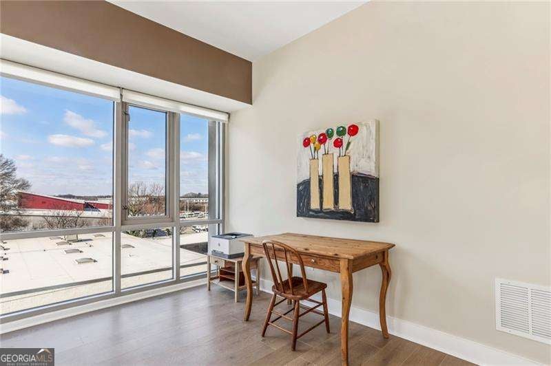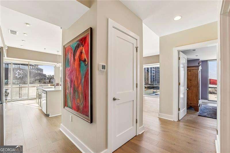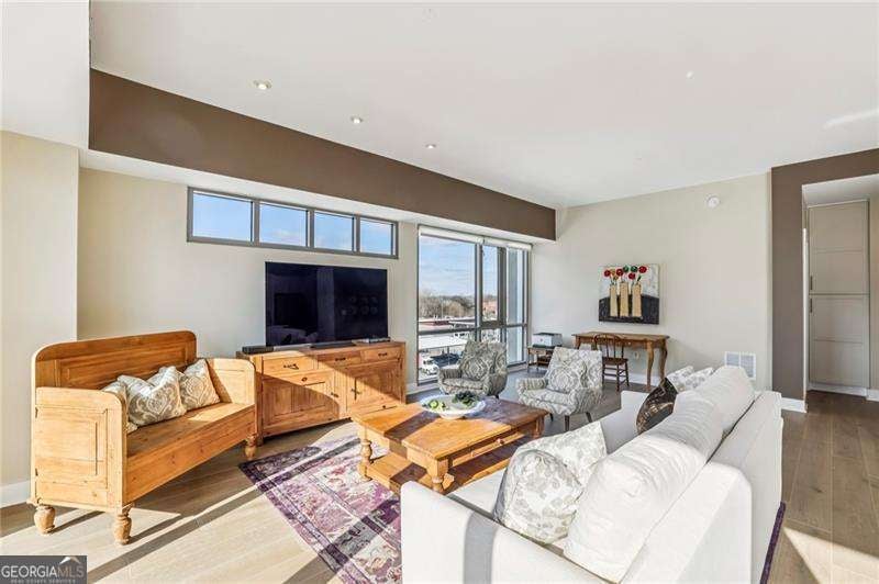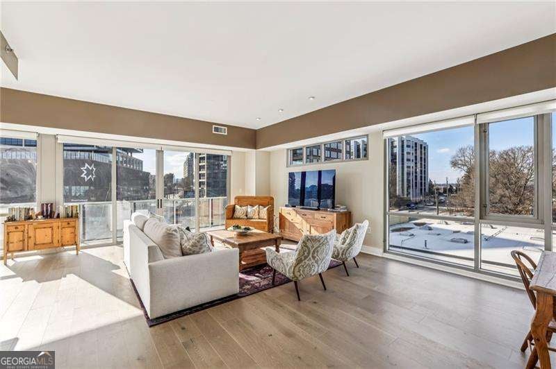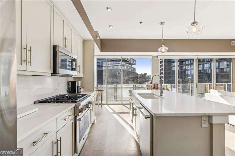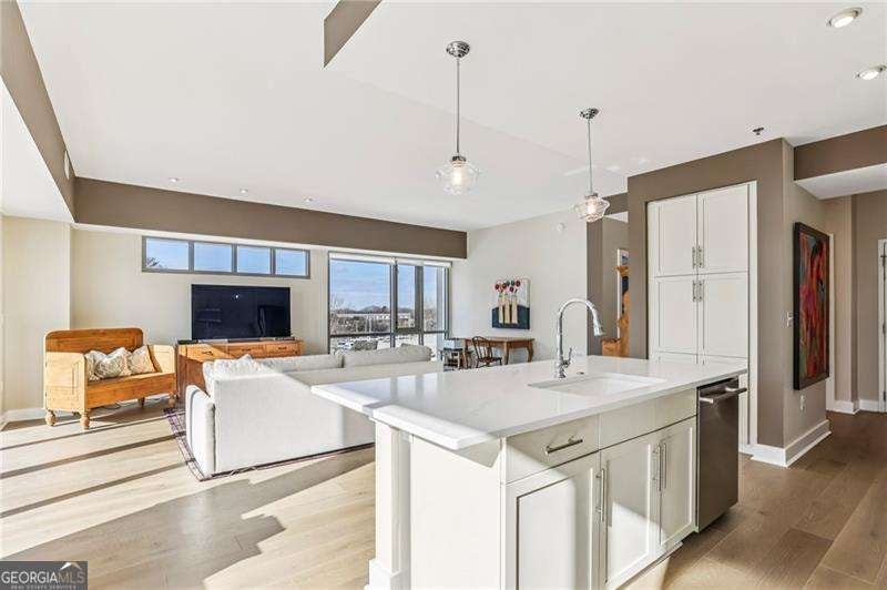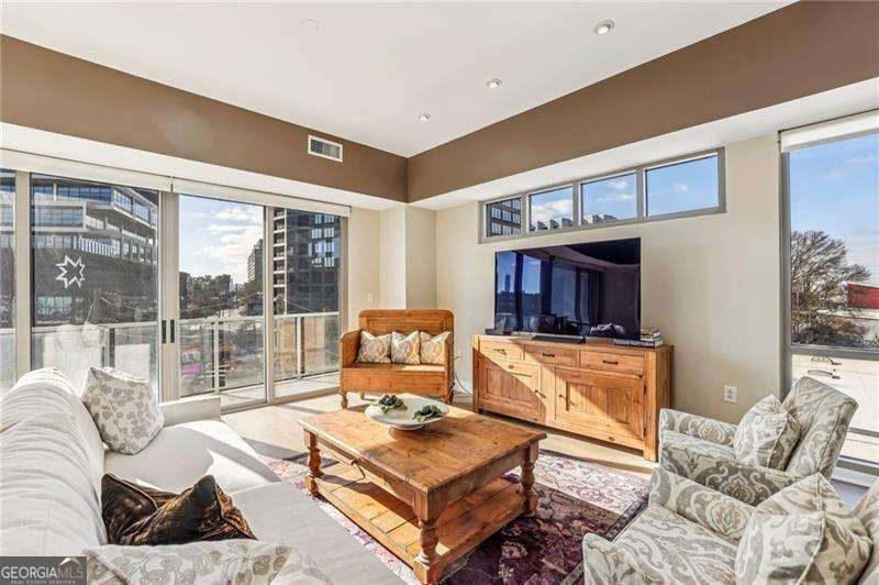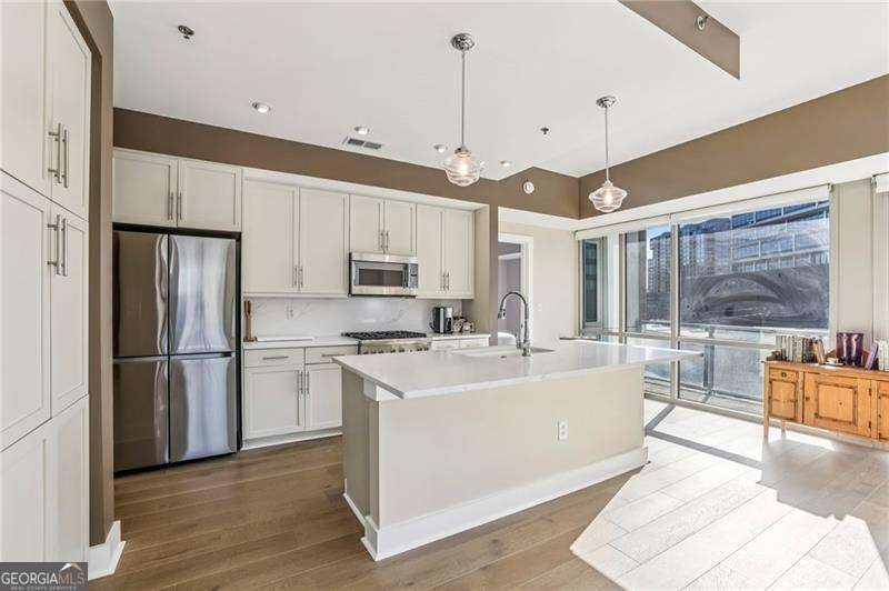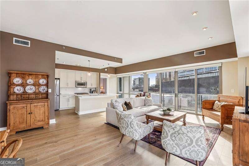 Welcome to a corner residence at White Provision where natural light, thoughtful upgrades, and everyday convenience come together. Wrapped in windows, this spacious and renovated two bedroom, two bathroom home is filled with sunlight throughout the day, enhancing the open layout and creating an open, airy feel. New LVP flooring installed in 2019 grounds the main living area and bedrooms. A full suite of brand new appliances installed in 2025 and a 2020 HVAC replacement reflect the care and investment put into the home. Both bathrooms were completely renovated in 2025 with clean, modern finishes, making this home truly move in ready. A large private balcony extends the living space outdoors and offers the perfect spot for morning coffee or winding down in the evening in the heart of West Midtown. Two deeded parking spaces are located on the same level as the unit, offering convenient access without the need to change floors. The home also includes access to a dedicated storage room on the fifth floor, providing substantial additional space for seasonal items, luggage, or recreational gear. In condo living, having both same level parking and extra storage is a significant advantage. White Provision is a secure building with full time front desk reception, a fitness center, pool, and water included in the HOA dues. Just outside your door are some of Atlanta's most celebrated dining and retail destinations including Marcel, The Optimist, Yalda, Miller Union, O-Ku, Puttshack, Cooks & Soldiers and The Interlock, along with boutiques and specialty shops throughout West Midtown. Enjoy easy access to I-75, I-85, Midtown, Atlantic Station, and Georgia Tech.