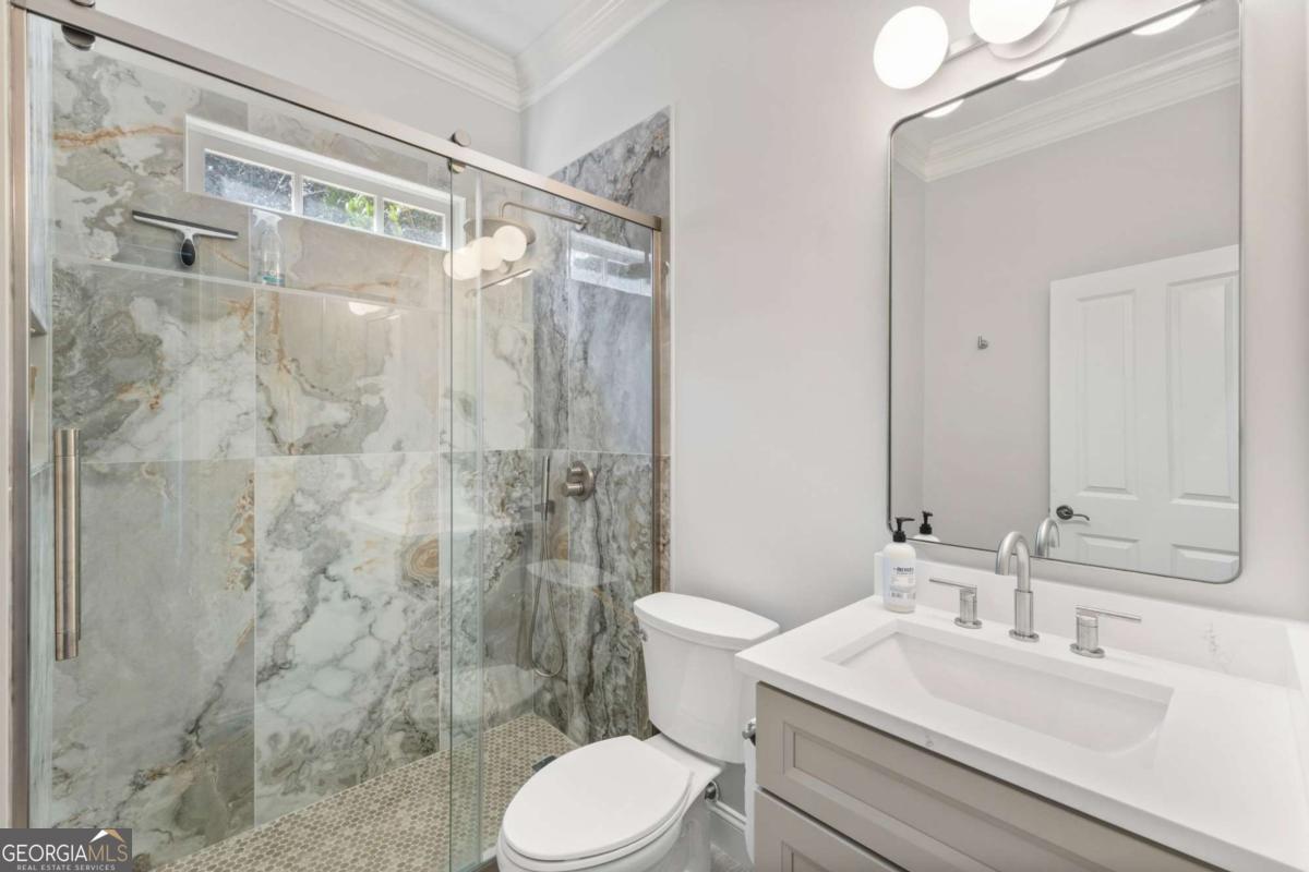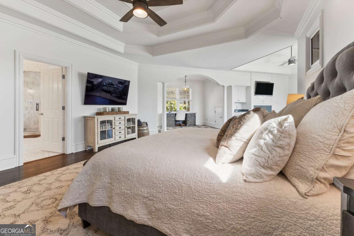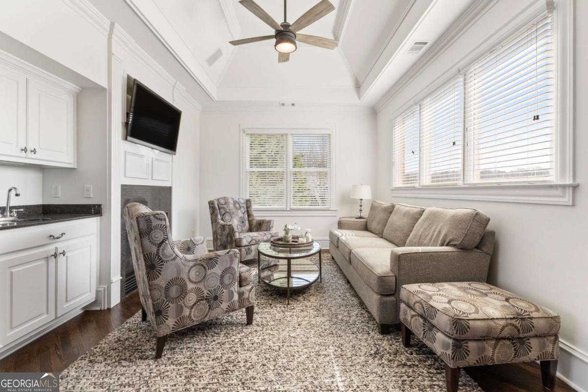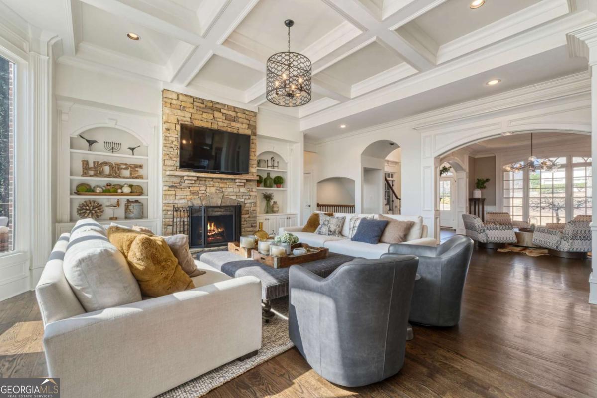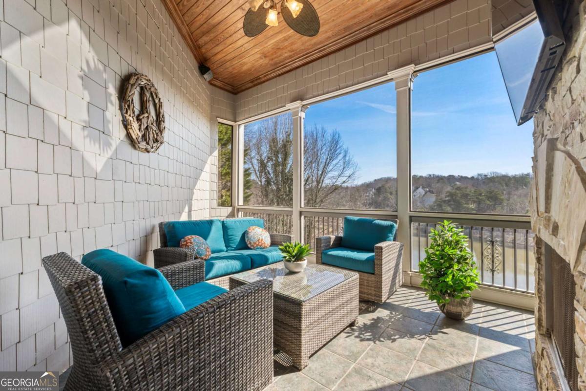 Welcome to this extraordinary luxury retreat tucked inside the prestigious, gated golf community of Laurel Springs. Set on one of the largest and most private one-acre homesites in the neighborhood, this fully renovated estate offers over 7,700+ square feet of elevated living, thoughtfully curated for both refined everyday living and unforgettable entertaining. Meticulously transformed with timeless finishes and intentional design throughout, this home presents a truly rare turnkey opportunity in one of Laurel Springs' most coveted and private settings. From the moment you arrive, the four-car garage, beautifully updated exterior, and expansive setting create a sense of arrival that is truly exceptional. The outdoor living is nothing short of spectacular. Spend your evenings watching the sunset over the golf course and your private pond, where you can fish, relax, and unwind in total privacy with no homes looking in. This entertainer's dream backyard features a full outdoor kitchen, cozy fireplace, hot tub, and multiple gathering spaces perfect for hosting friends, family, or quiet nights under the stars while kids play and explore below. Inside, every inch of the home has been thoughtfully and extensively renovated. The main level blends sophistication with warmth, featuring a private office, a beautifully updated dining space with built-in wine and beverage refrigeration, and a guest bedroom with full bath. The chef's kitchen showcases over $70,000 in top-of-the-line appliances, stunning finishes, and seamless flow to the screened porch and expansive deck-ideal for indoor-outdoor living year-round. Upstairs, the oversized owner's retreat is a true sanctuary with a sitting area, spa-inspired bath with soaking tub and steam shower, dual vanities, and a massive walk-in closet. Three additional bedrooms with newly renovated bathrooms and a versatile loft space offer flexibility for family, guests, or work-from-home lifestyles. The finished terrace level was designed for fun and relaxation, complete with a media room, full bar, billiards area, private gym, additional bedroom, and full bath, creating the ultimate entertainment experience right at home. This is a rare opportunity to own a completely updated luxury estate on a premier lot in one of North Atlanta's most sought-after gated golf communities.