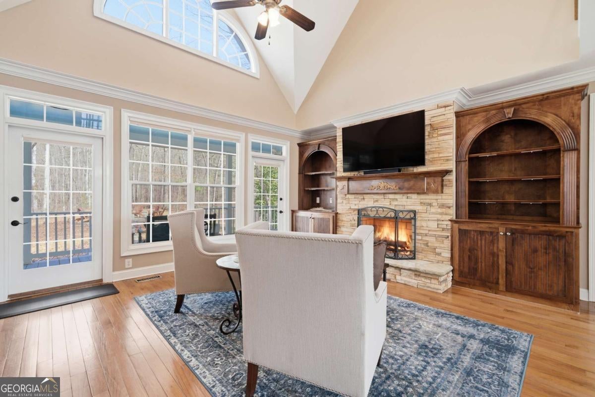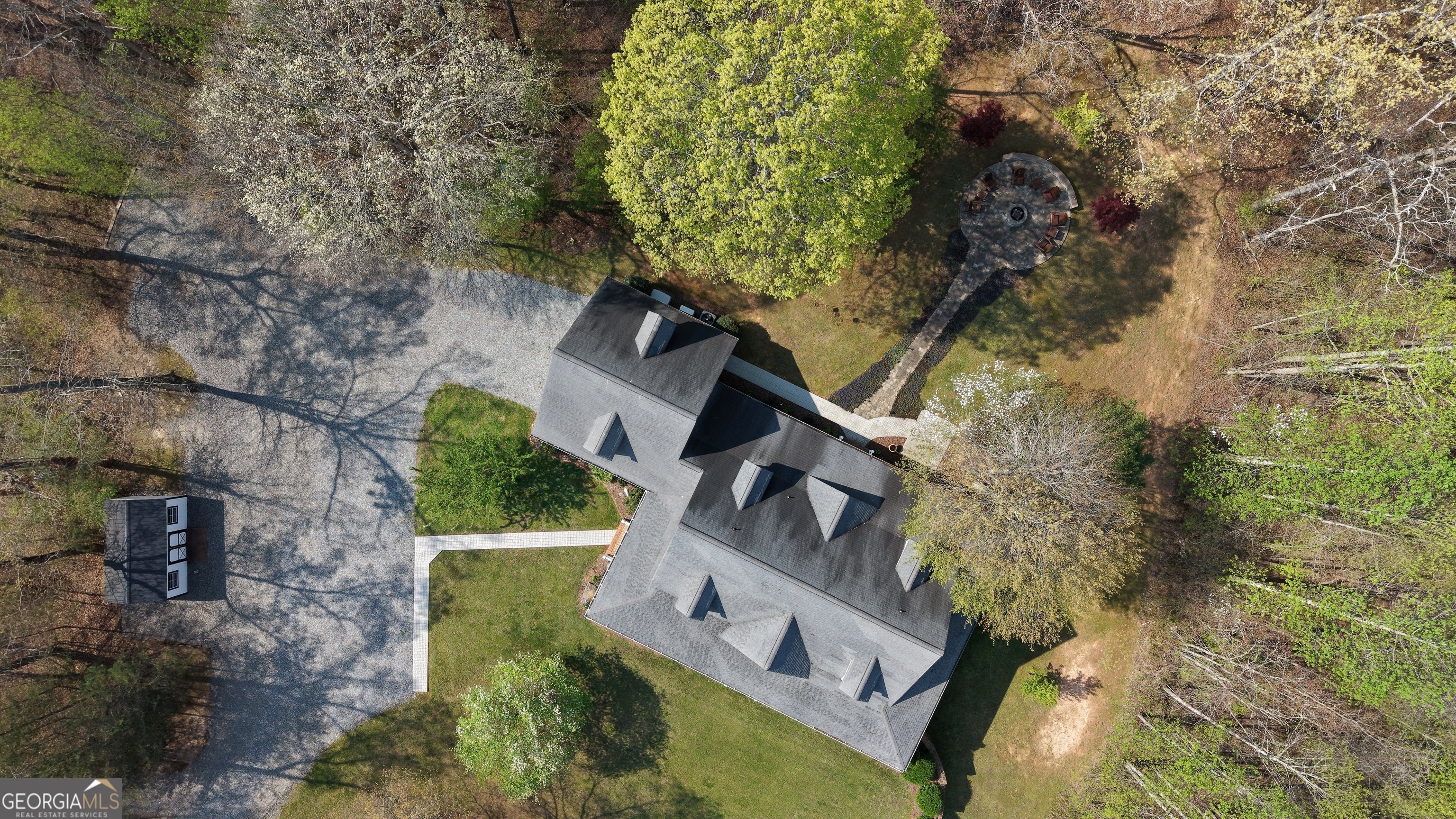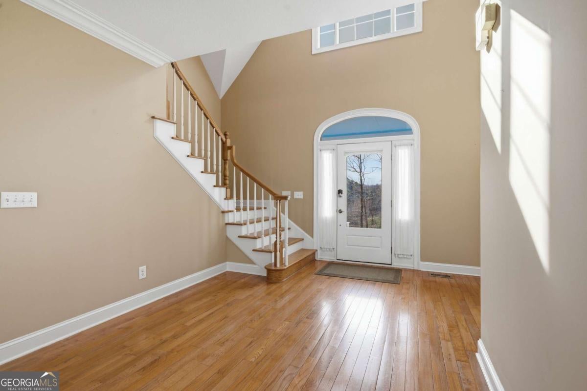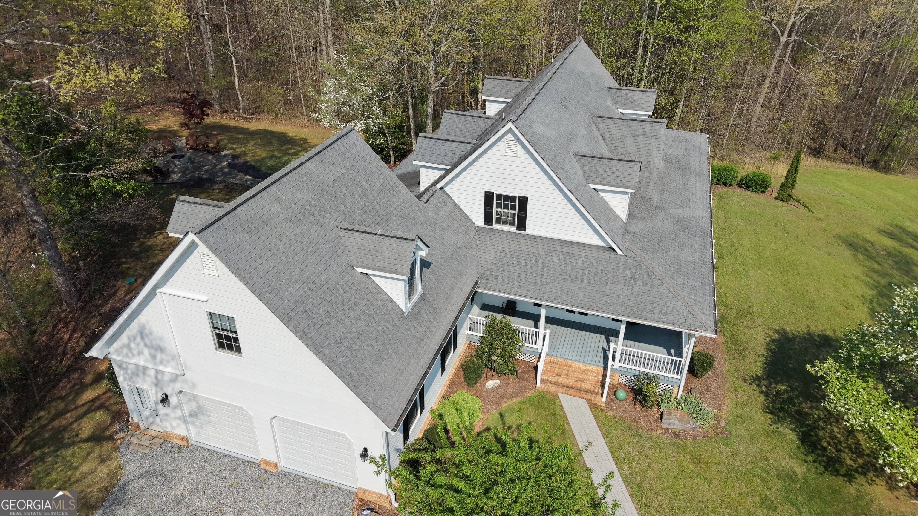 Welcome to 552 Dalrymple Circle - a farmhouse-style estate on over 21 acres in the North Georgia mountains, less than 10 minutes from downtown Ellijay. The winding paved driveway takes you up through the property, transitioning to gravel near the top, and by the time you reach the house, you feel like you've left everything behind. No other homes in sight. Just rolling meadows, mature woods, and mountain views. The first thing that stops you is the front porch. It runs the entire length of the house with a blue-painted ceiling and a porch swing, and it continues around to the back - giving you more outdoor sitting space than most homes have indoor living space. Rocking chairs, sweet tea, mountain air. This is why people move to Ellijay. Inside, the main level features a semi-open floor plan with hardwood floors, transom windows over the doorways, and a stone fireplace flanked by custom wood built-ins. The kitchen has granite countertops, a large center island with seating, stainless steel appliances, rich wood cabinetry, and a butler's pantry for additional storage and prep space. A breakfast nook with bay windows offers a bright, casual spot for morning coffee, and a separate formal dining room handles the bigger gatherings. The primary suite is on the main level, which is a big deal for a home this size. It includes a sitting area, an oversized walk-in closet with built-in organization, and a spa-inspired ensuite with heated floors and a soaking tub. When the tile is warm under your feet on a cold mountain morning, you'll understand why that matters. Upstairs, two guest bedrooms each have their own full ensuite bathrooms, connected by a catwalk. There's also a large 21x23 finished bonus room that's accessible from the garage - making it an ideal home office, studio, or creative space that feels separate from the rest of the house. If you work from home and want a real boundary between work and life, this layout delivers. The fully finished daylight terrace level adds even more versatility. It includes a full bedroom and bathroom, a large living area, and a kitchenette space with French doors opening to the backyard. This could be an in-law suite, a teen retreat, a rental unit, or guest quarters - it functions as its own apartment. Outside, the property is as impressive as the home. Over 21 acres of meadows and woods - usable land that's ready for whatever you envision. There's a custom shed, a carport, a 2-car garage, a garden area, a stone fire pit with custom pavers, and a spot for RV parking. A whole-home generator and underground propane tank round out the list of features that make this property ready for full-time mountain living. 552 Dalrymple Circle works as a primary residence, a mountain retreat, or an income-producing family compound. It's private enough to feel like you're miles from everything, but you're pulling into downtown Ellijay in under 10 minutes. This is the one.