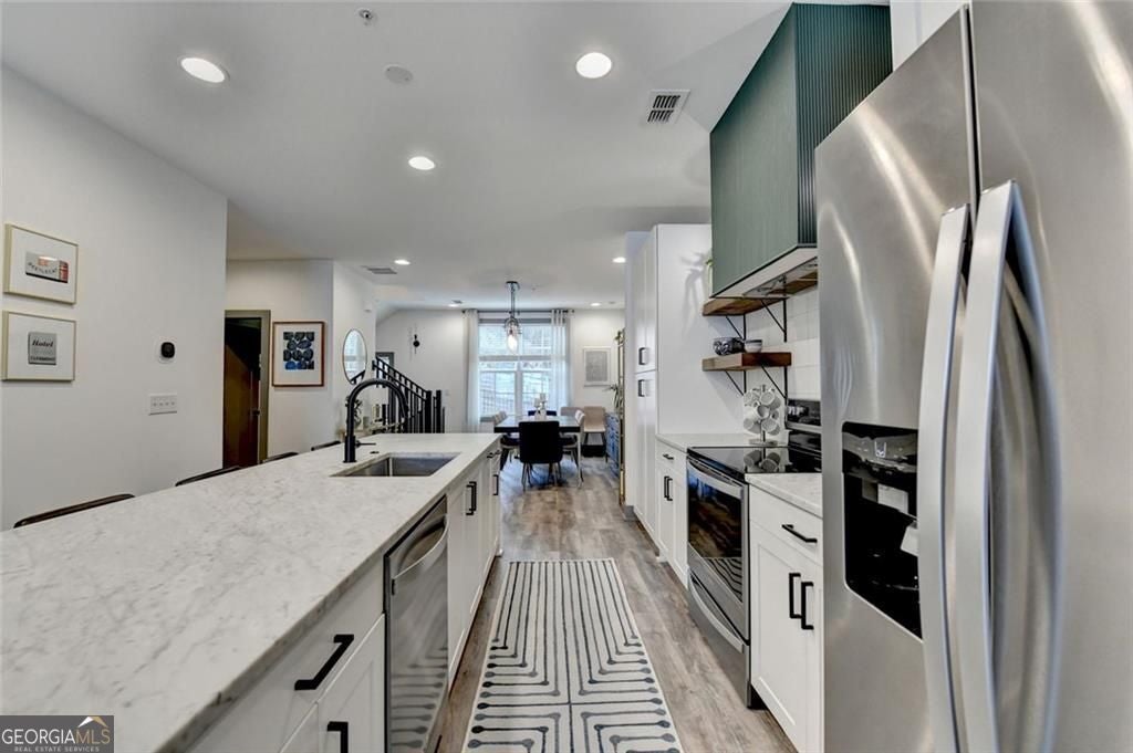 At 6 Becker Place offers amazing value in Edgewood. Incredible price, Incredible space and Incredibly low HOA! Enjoy being in the heart of the City and steps from Edgewood Retail District. Oxley Edgewood is the areas best kept secret for family community. The heart of this residence is undoubtedly its meticulously designed kitchen, featuring a generous kitchen bar , and a substantial large kitchen island, that can easily seat 6, both offering expansive surfaces for amazing storage, culinary creativity and engaging social interactions. Exquisite stone countertops beautifully complement the refined shaker cabinets, that adds a layer of sophisticated detail. A prominent wall chimney range hood completes this culinary space, ensuring both optimal ventilation and a striking visual presence. This thoughtfully arranged property was built for today's lifestyle with a dedicated office/flex space on the main floor. In addition, a very large dining room easily accommodating multi family gatherings and a sun filled family room on the main. Three large bedrooms on the upper level with an oversized master suite and master closet, leading to a very generous master bath with dual vanities and huge master shower. An additional 2 large bedrooms for family or guests. An inviting balcony extends the living possibilities, offering an elevated setting for personal enjoyment and tranquil moments. The lower level has amazing, unheard of additional storage! To complete this true find, are top rated schools, a Community grill Pavillion and Firepit for hosting friends and family. This is truly a one of kind neighborhood and home, offering the best of both worlds, city living at its best and neighborhood community! This meticulously crafted residential property, built in 2021, offers a refined living experience, ready to inspire an elevated Atlanta lifestyle.