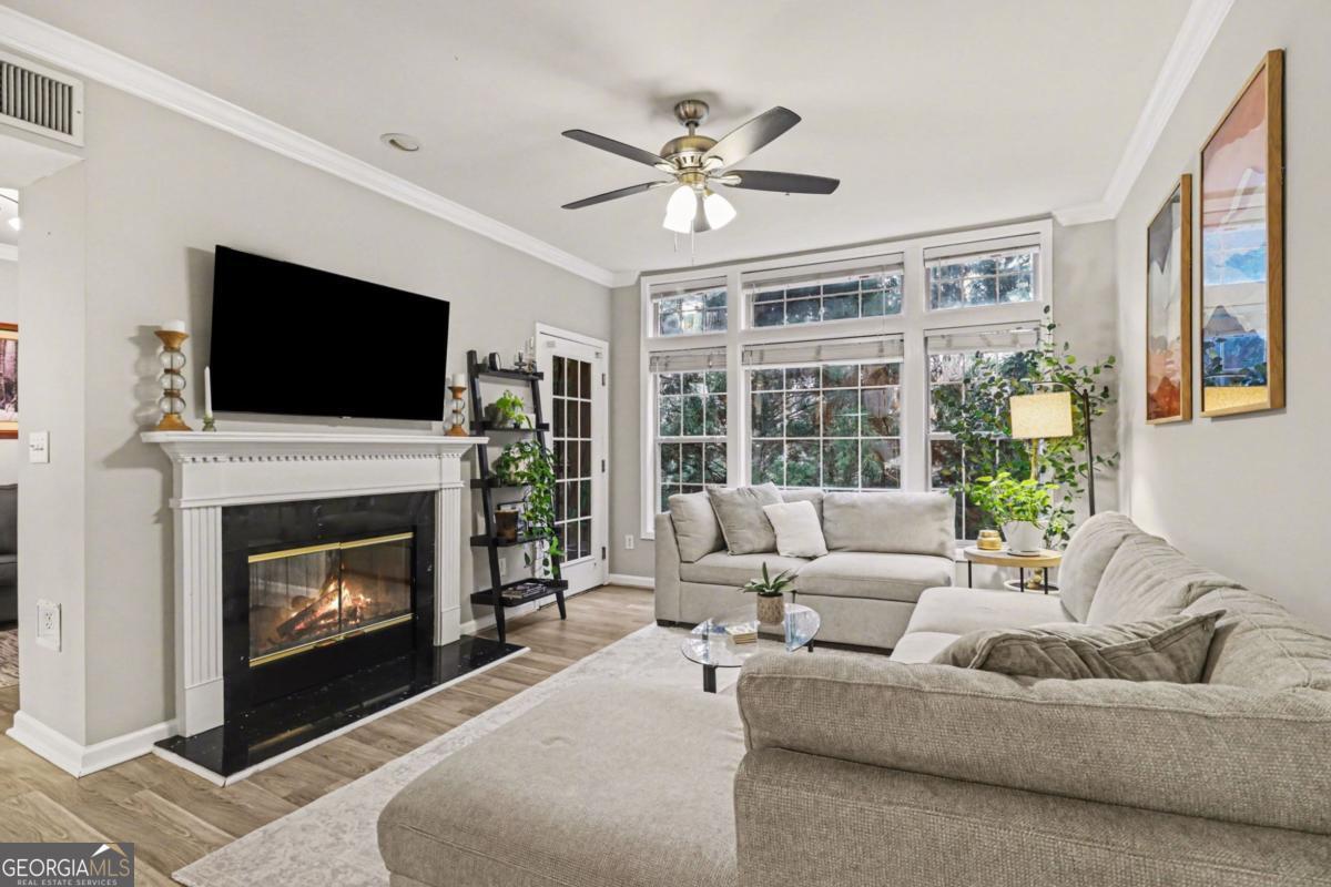 Welcome to easy Buckhead living in this spacious 1-bedroom + dedicated office condo located just minutes from Chastain Park, top restaurants, and premier shopping, with convenient access to GA-400, I-75, and I-285. This well-designed second-floor home offers an open and functional layout featuring a separate dining area, a bright living room with a double-sided gas fireplace, and a private covered balcony overlooking peaceful, mature greenery-perfect for relaxing or working from home. The kitchen features granite countertops, stainless steel appliances, and freshly painted white cabinetry, providing both style and functionality. A versatile bonus room makes the perfect home office, guest space, or flex room, ideal for today's work-from-home lifestyle. The oversized primary suite offers double closets and a large en-suite bathroom complete with a soaking tub, separate shower, and updated fixtures including a new sink and toilet. Additional highlights include abundant natural light, excellent storage, and one covered parking space. Located in the gated Habersham Oaks community, residents enjoy resort-style amenities including a swimming pool, fitness center, clubhouse, and dog park. Experience the perfect blend of comfort, convenience, and Buckhead lifestyle in one of the city's most desirable locations.