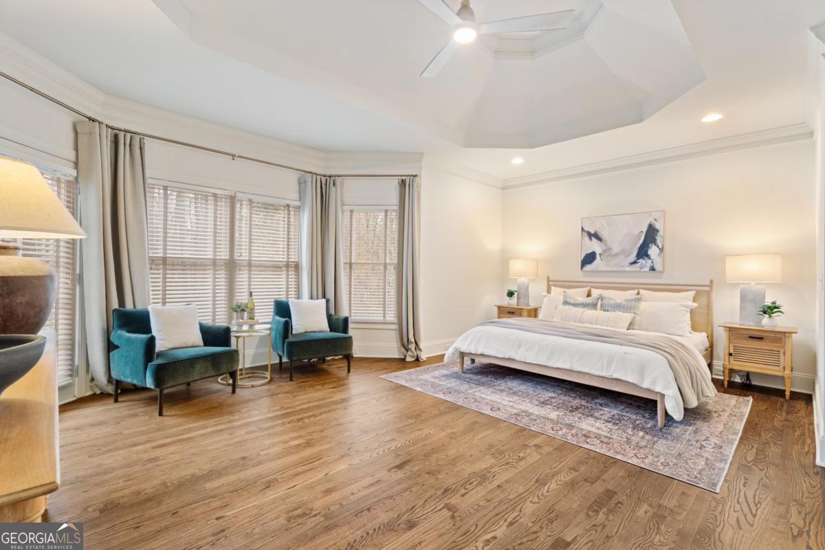 Welcome to this exceptional 5-bedroom, 5-bathroom home located in sought-after Alpharetta in Forsyth County. This home perfectly blends elegance, comfort and modern functionality. Situated on a stunning lot of over half an acre, this beautifully maintained property offers space, privacy, and timeless curb appeal. Step inside to a grand two-story entry and living room, featuring custom ceilings that create an immediate sense of sophistication. The open floor plan is designed for today's lifestyle - ideal for both everyday living and effortless entertaining. The newly renovated kitchen is a true show piece, showcasing custom inset cabinetry, dual matching dishwashers, marble countertops and backsplash, and thoughtful design details that elevate both form and function. Whether hosting gatherings or enjoying a quiet evening at home, this space is built to impress. Upstairs, the spacious secondary bedrooms feature brand new carpet and paint, while on the main-level, the completely renovated primary bath delivers spa-like luxury with all the right high-end finishes and touches. The finished lower level offers incredible versatility - perfect for accommodating guests, hosting parties, creating a kids' play area, or designing the ultimate man cave. Outback, you'll find a beautifully fenced yard and an expansive deck made for barbecues, entertaining and relaxing outdoors. From the moment you walk through the front door, you'll notice how meticulously this home has been maintained inside and out. Compare it to the rest - this is the one you've been waiting for!