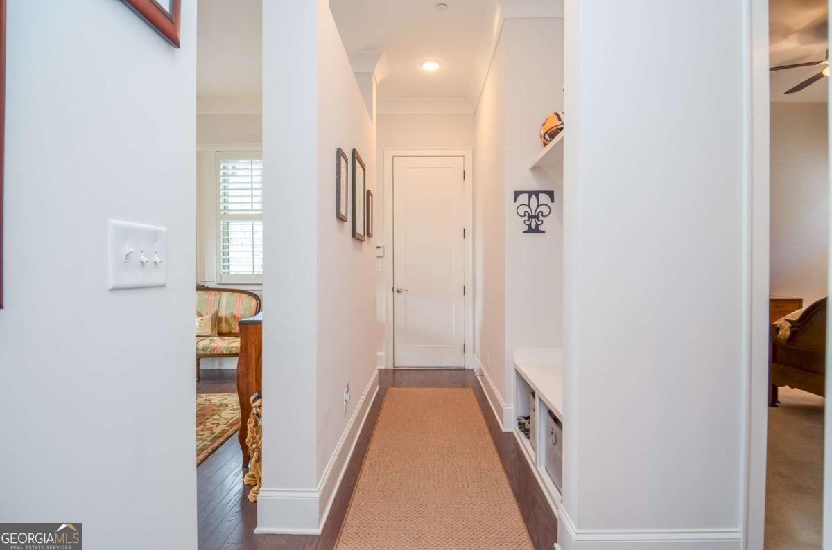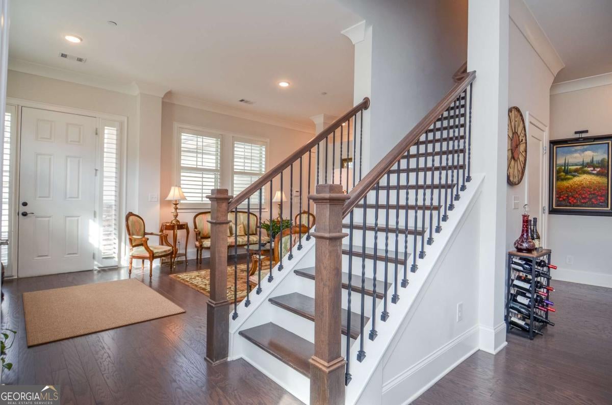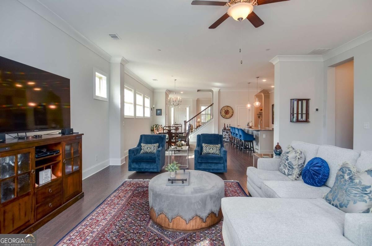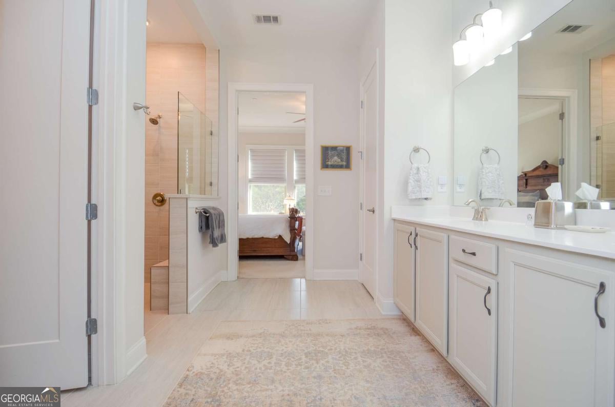 Welcome to a home that doesn't simply check boxes - it elevates everyday living. Nestled in a sought-after 55+ community just one mile from the Marietta Square, this immaculately maintained Craftsman has intentional design, warmth, and refined comfort. From the moment you enter, you feel it. Ten-foot ceilings. Spectacular hardwood floors. Cove molding throughout. Custom plantation shutters and Roman shades that filter the light just so. Every detail speaks to thoughtful design and quiet luxury. Where memories are made, the designer kitchen boasts an expansive island perfect for conversation, a gas cooktop for the chef at heart, and a walk-in pantry that keeps everything beautifully organized. It flows seamlessly into the opoen concept floor plan made for connection and celebration. The spacious Owner's Suite is a retreat in every sense. Wake to peaceful views of the professionally landscaped yard, where seasonal blooms frame a tranquil waterfall. The spa-like bath features a stunning Italian shower, double vanity, and a custom walk-in closet with additional storage - because luxury should also be practical. A guest suite on the main level offers privacy and comfort, complete with a full bath that also serves visitors with elegance. The laundry room is anything but ordinary, with built-in cabinetry, a folding table, and hanging space designed to simplify life. Upstairs, a versatile third bedroom with its own ensuite bath opens the door to possibility - a private guest retreat, home office, media room, fitness studio - whatever your next chapter requires. Behind the walls, comfort continues with three-zone heating/cooling and an instant-hot, recirculating gas water heater for endless efficiency. Step outside and the story becomes unforgettable. Covered and uncovered living spaces create the perfect backdrop for quiet mornings and lively evenings. Enjoy the soothing waterfall, an extensive rose collection, a dedicated grilling area, privacy fencing, and a raised deck with fire pit - all thoughtfully designed for both serenity and entertaining. An irrigation system and rain barrel make maintaining this oasis effortless. This home offers the rare combination of low-maintenance living and high-impact beauty - all within minutes of historic charm, restaurants, concerts, and social events. The community clubhouse is your bonus gathering space! Join the Book Club, the Poker Club or the Bunco Club: or plant and share in the Community Garden. This isn't just a house near the Square and Tumlin Park, it's a place to exhale. To entertain. To savor. To begin your next chapter beautifully.
