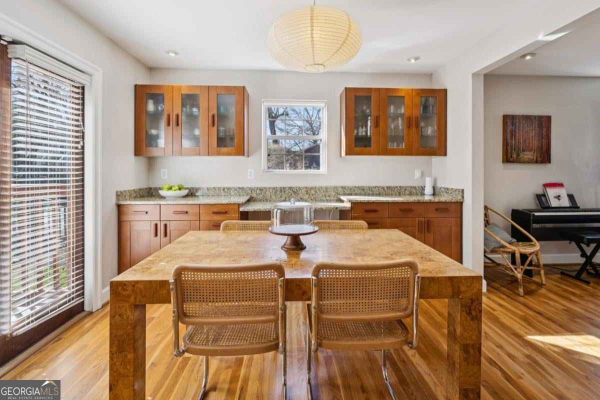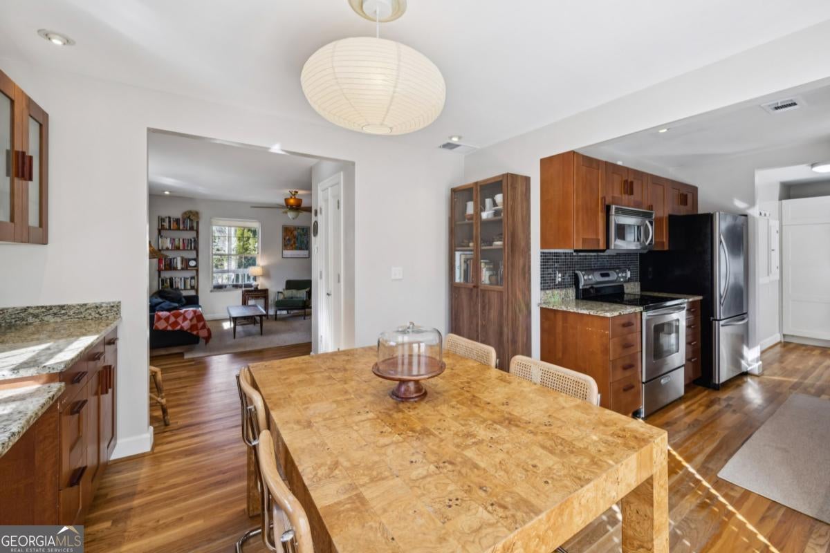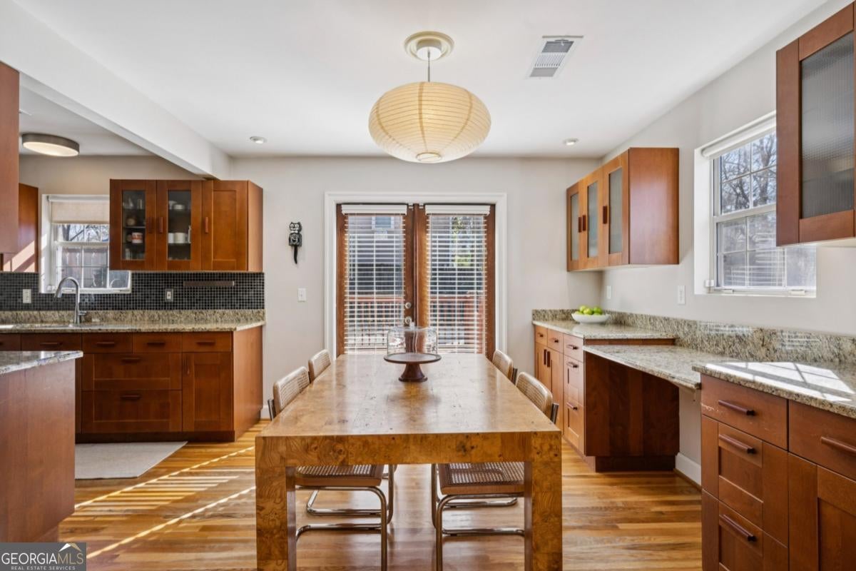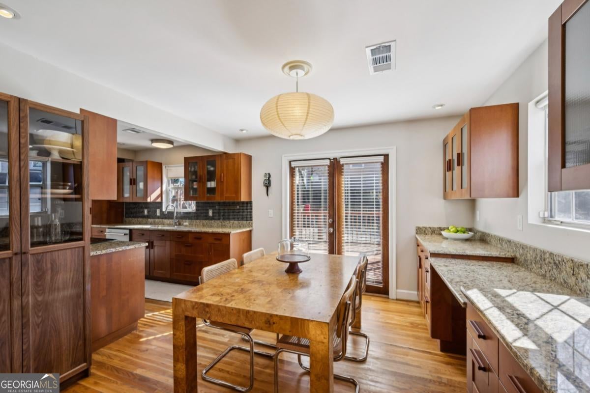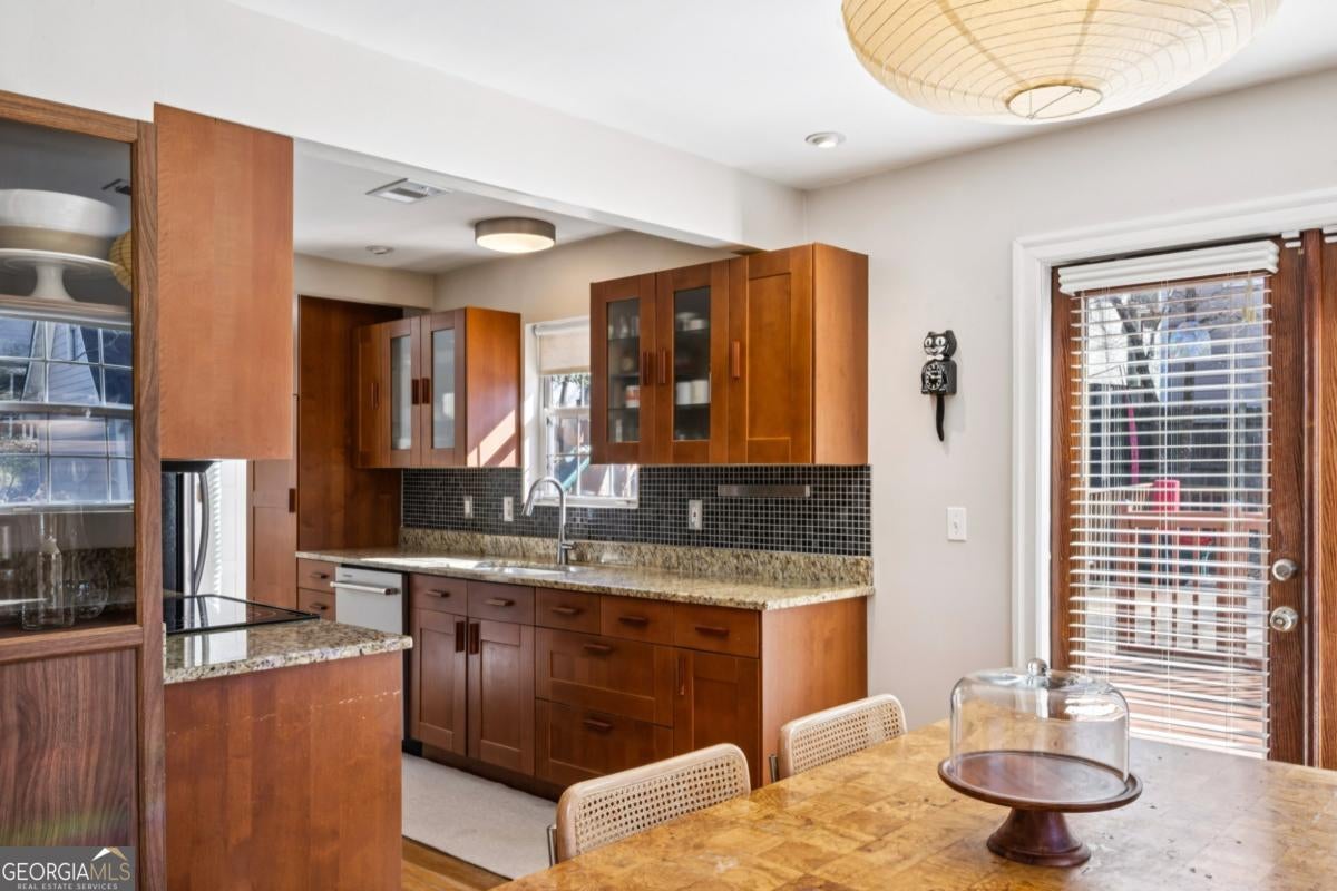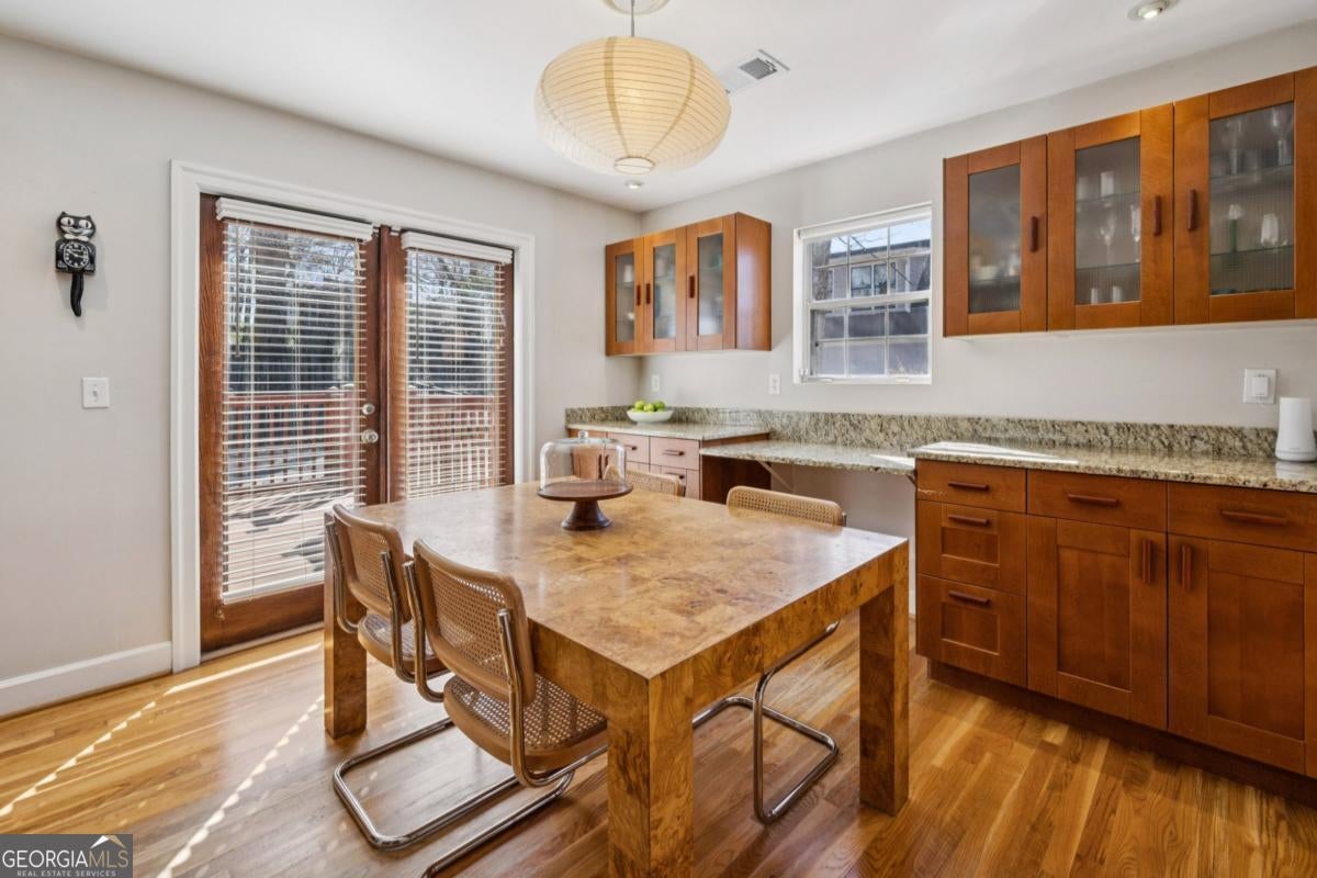 Oakhurst-City of Decatur Schools-A GREAT combo!!!! Imagine starting your mornings on the welcoming front porch, coffee in hand, waving to neighbors as the day begins. Perfectly placed on a private, fully fenced lot, this thoughtfully updated home offers both peaceful retreat and vibrant intown living. Step inside and you'll immediately notice how effortlessly the home lives. Every space has been designed with intention - abundant storage, smart built-ins, and a natural flow that makes daily life feel easy. The dining area is a true standout, featuring custom built-ins with glass-front cabinetry - perfect for displaying collected pieces, or adding that touch of character that makes a house feel like home. The main-level primary suite offers a comfortable space to unwind at the end of the day. Generous in size, it features a well-designed walk-in closet system and an ensuite bath with double vanity, stunning stone floors, and a classic shower/tub combination - perfectly functional for everyday living. Upstairs, two secondary bedrooms and a full bath provide flexibility for guests, family, or the ideal work-from-home setup. Just off the beautifully updated kitchen, a functionally designed mudroom with built-in storage creates that everyday drop zone you didn't know you needed - keeping life tidy and organized without sacrificing style. Evenings are made for the expansive rear deck, whether you're grilling with friends or enjoying quiet dinners. And when you're ready to explore, you're just a short stroll to the City Schools of Decatur, parks, and beloved restaurants of Kirkwood, East Lake and Oakhurst - where community and convenience meet. This isn't just a place to live - it's the kind of home where memories are made and a lifestyle you'll truly love.