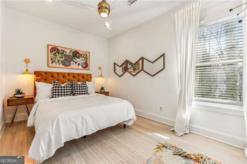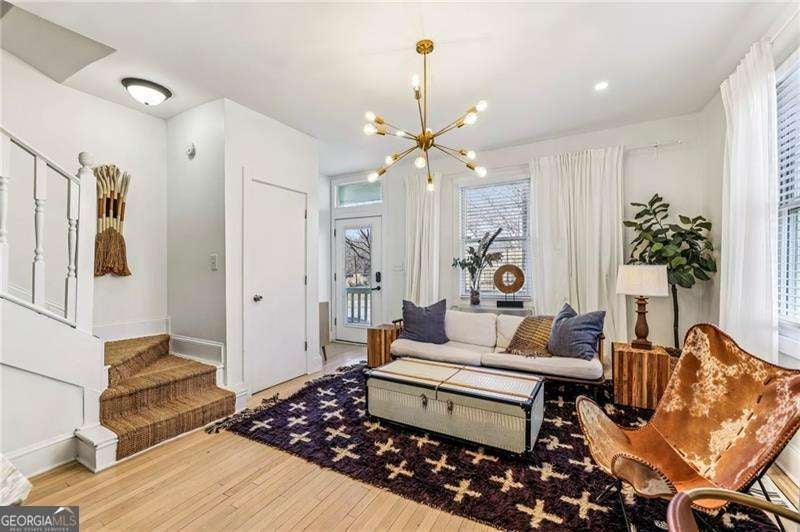 Charming Charleston-style two story historic townhouse Cabbagetown with off-street parking! This fee simple home has no rent restrictions and no HOA and is set on a quiet street right in the heart of historic Cabbagetown. The home blends original early 19th century character with thoughtful updates throughout. The main level features an open kitchen that flows easily into the dining and living areas. Hardwood floors and tall ceilings make the space feel bright and welcoming. Double porches at the front bring in natural light, while a spacious shady back deck creates the perfect spot for relaxing or entertaining. Inside, you'll find generous storage throughout, a renovated full bathroom plus half bathroom, and two sunny bedrooms upstairs - including one with its own walk-out balcony with city views. Amazing price for this location where you're an easy stroll to shops and restaurants on Carroll Street, the Beltline, Grant Park, and Krog Street Market. Perfect for an owner occupant or, for someone looking to invest, short term rentals consistently bring in $3,000-$4,000 per month. Home can be sold furnished.